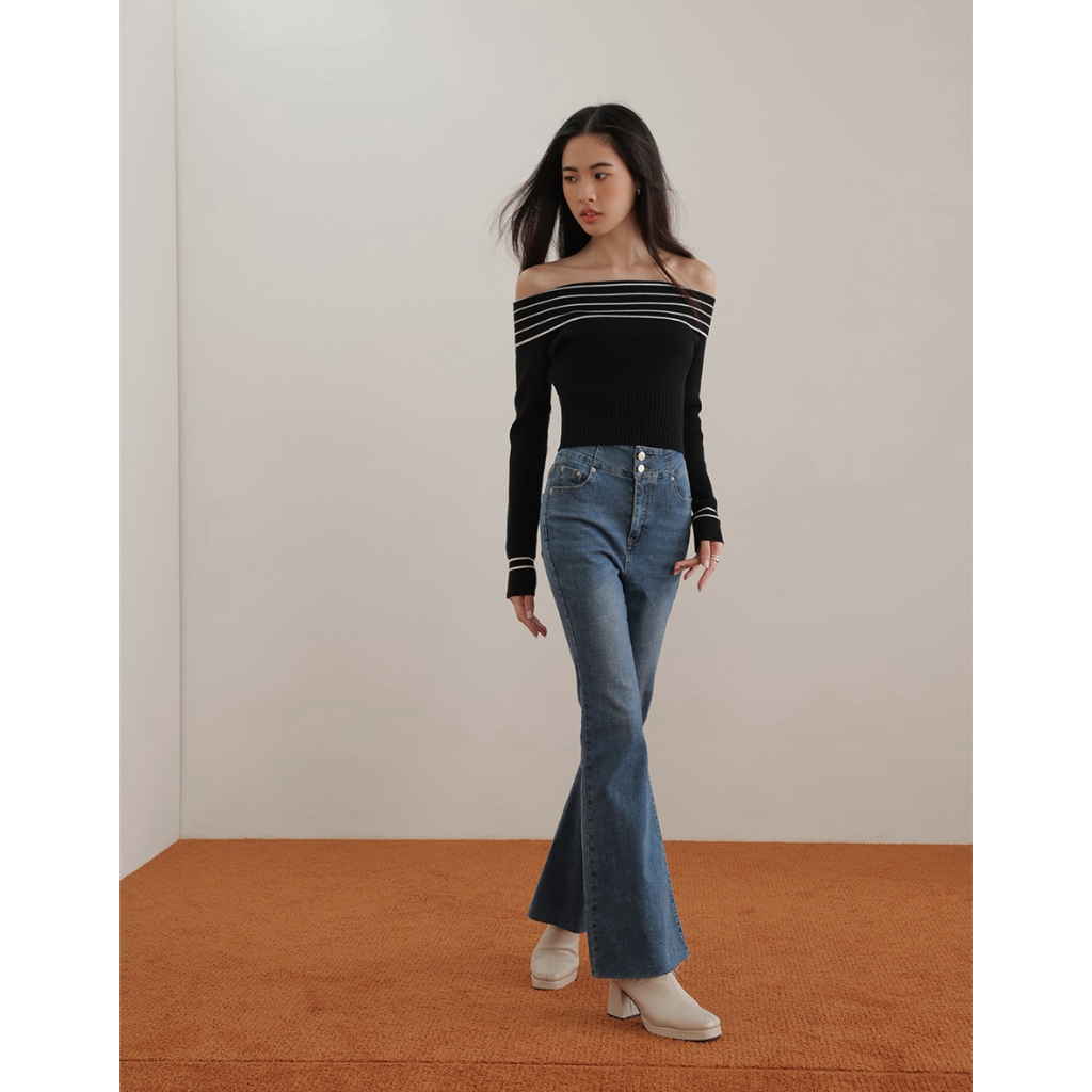 CHIC A SPACE 2WAY挖肩平口針織上衣(黑/綠) 女裝 現貨黑,S|黑,M|綠,S|綠,MAIR SPACE