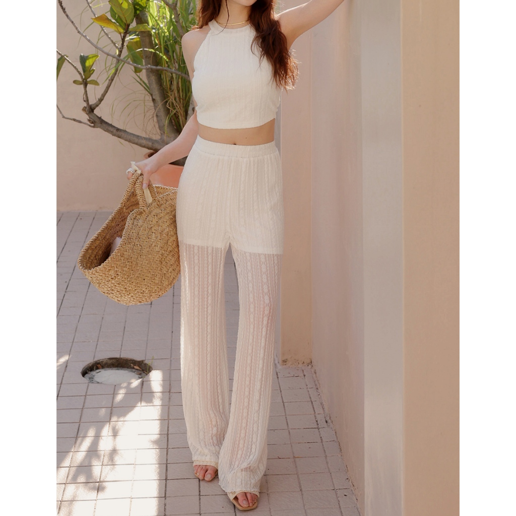 AIR SPACE LADY 飄逸直紋透肌長褲(黑/白) 女裝 現貨黑,S|黑,M|黑,L|白,S|白,M|白,LPantsAIR SPACE