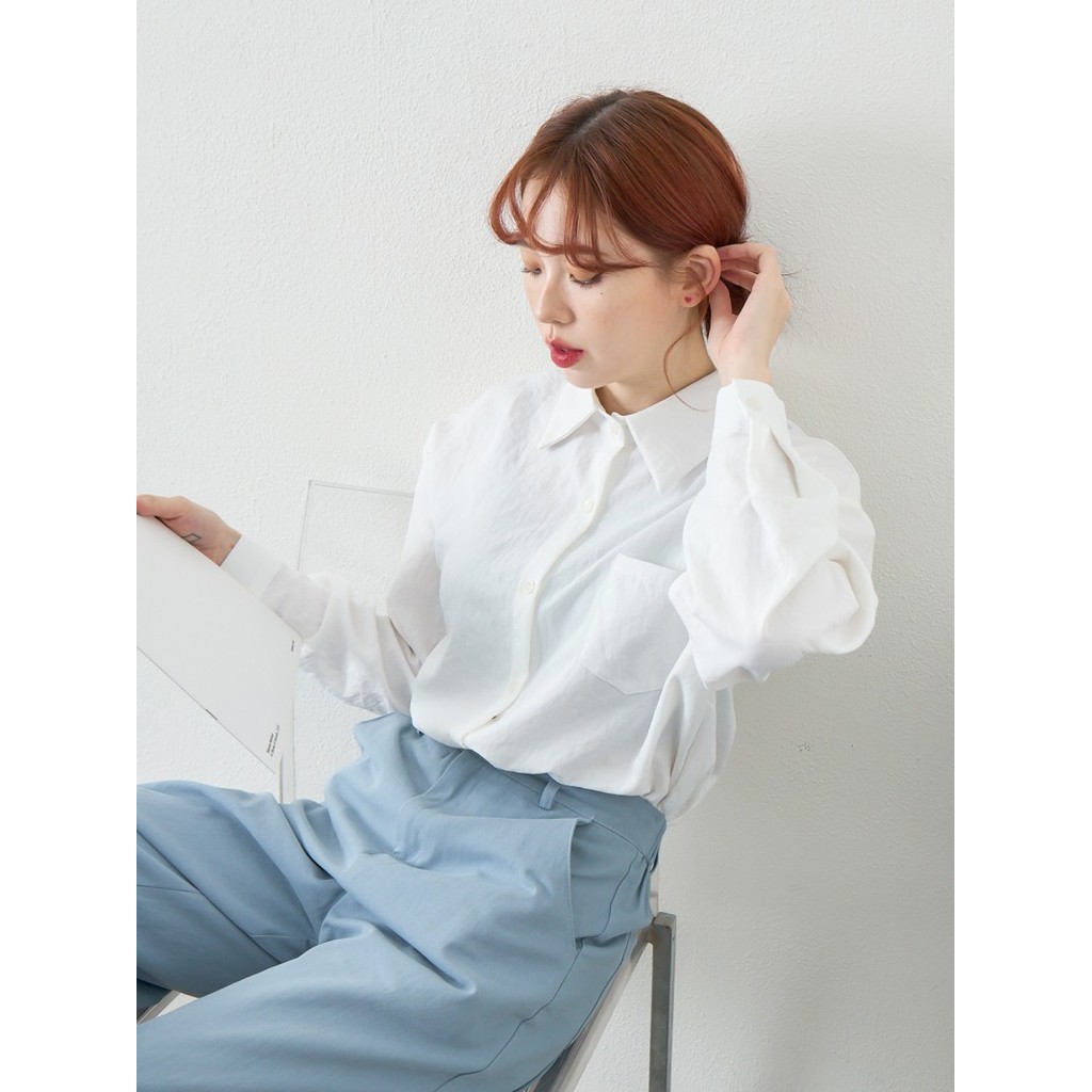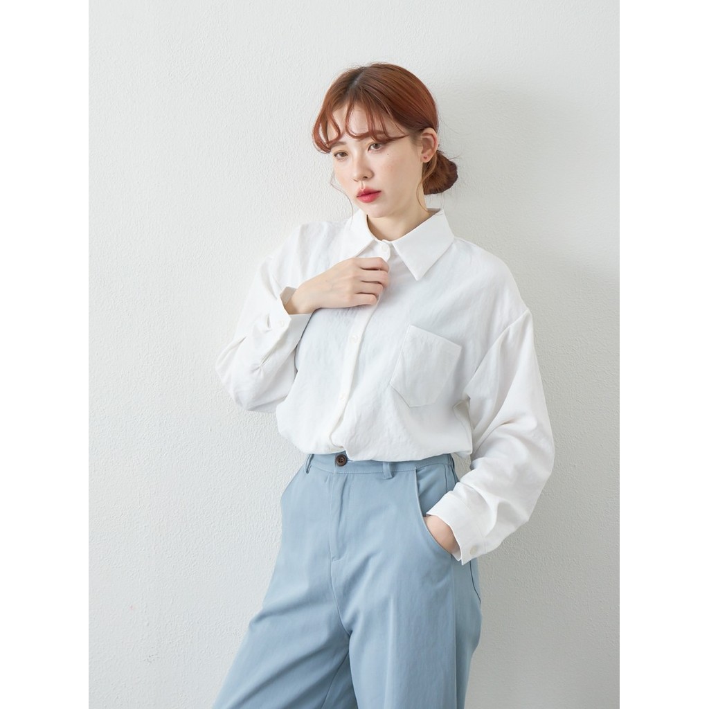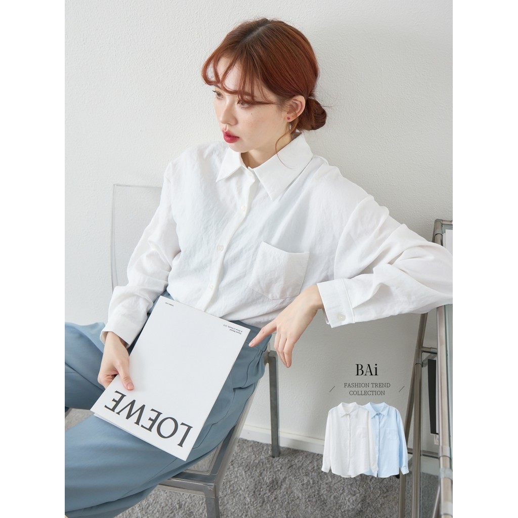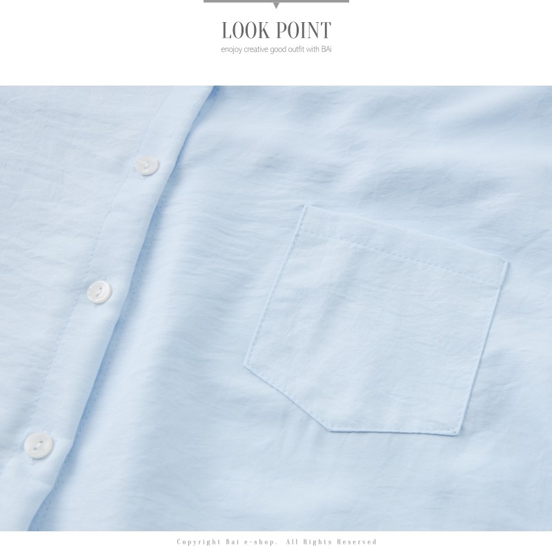 BAi白媽媽 單口袋皺皺襯衫/翻領開釦長袖上衣-台灣現貨 隔日到貨【350016】白_透(01)|藍_微透(05)Shirts & BlousesBAi白媽媽 品牌旗艦店