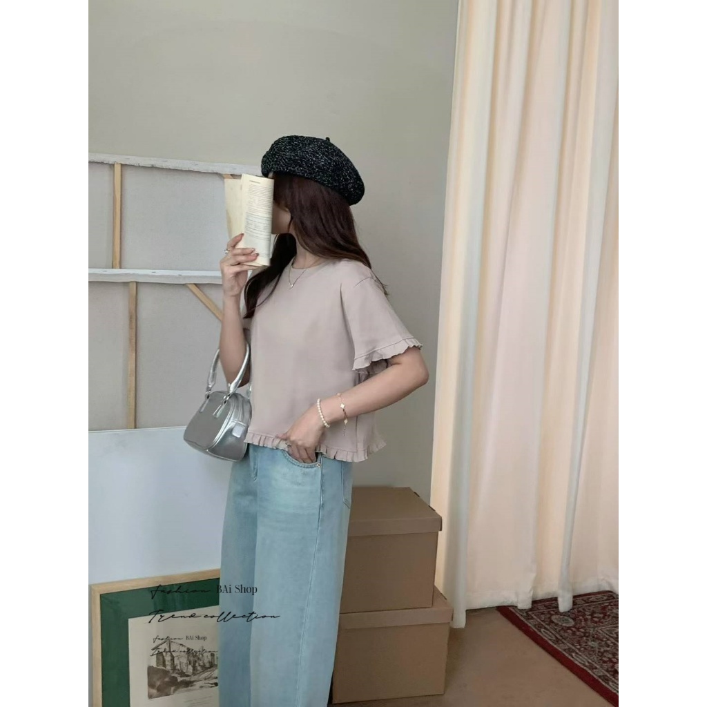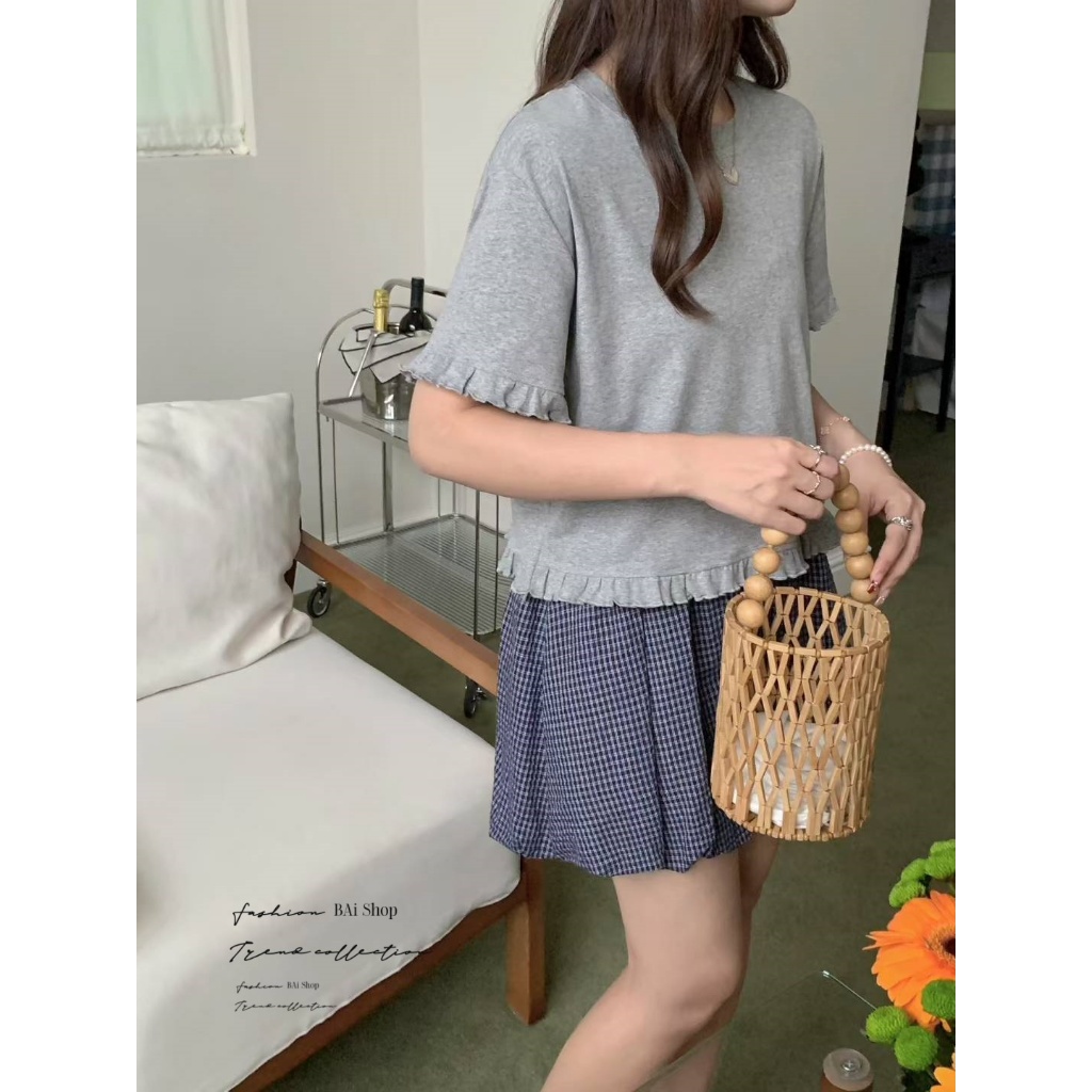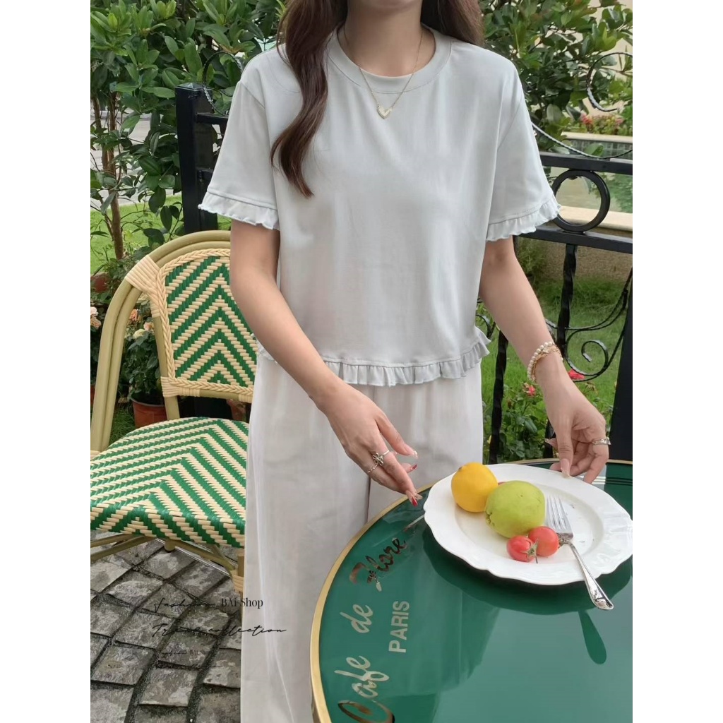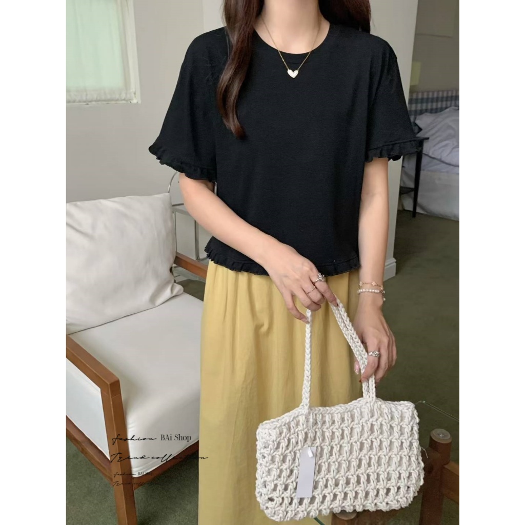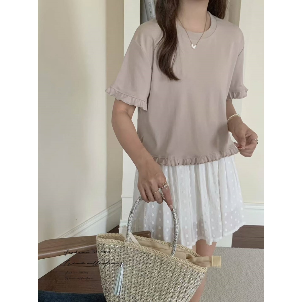 BAi白媽媽 短款木耳邊上衣/休閒氣質簡約款-台灣現貨 隔日到貨【350429】白(01)|黑(02)|灰(10)|卡(11)|寈藍(18)T-shirtsBAi白媽媽 品牌旗艦店