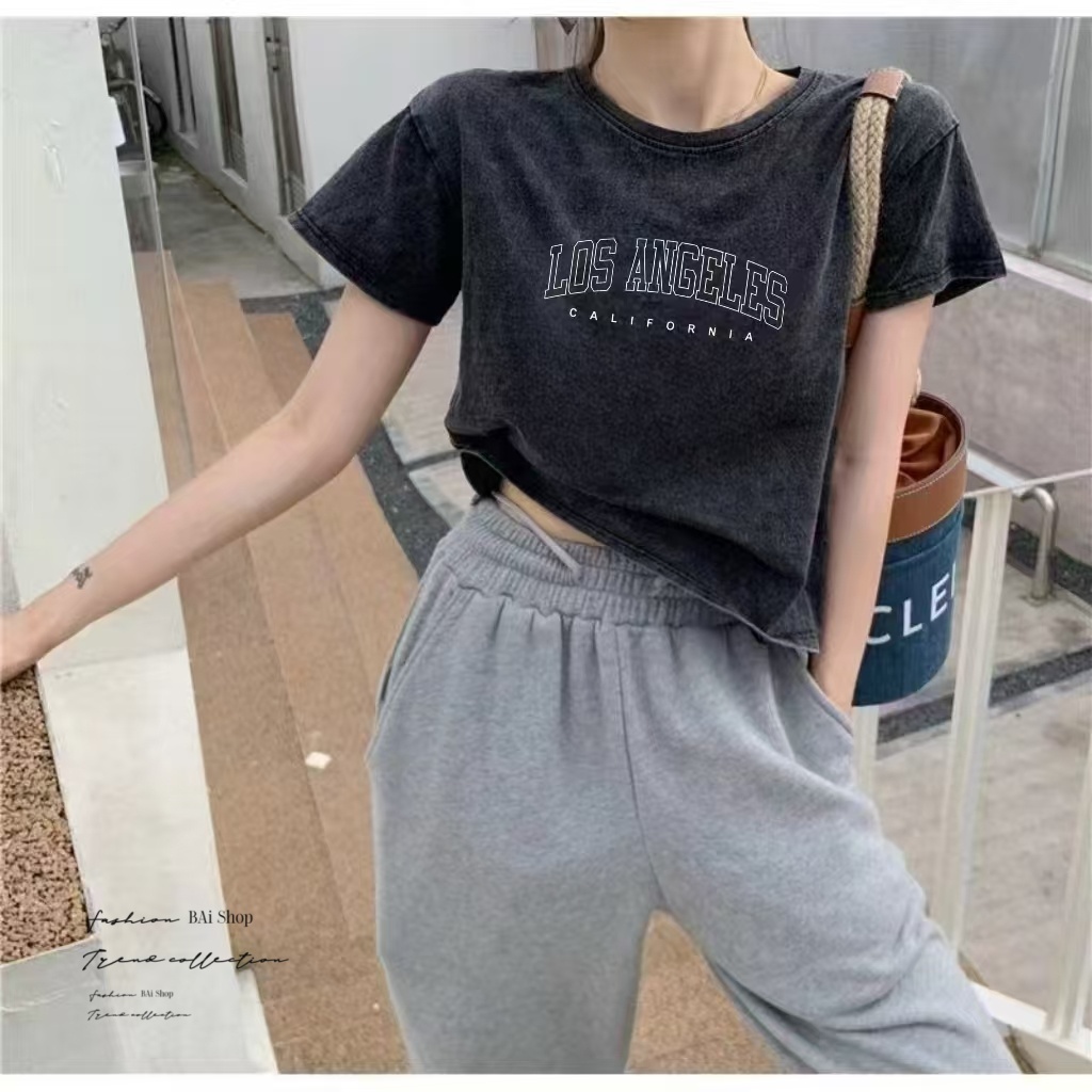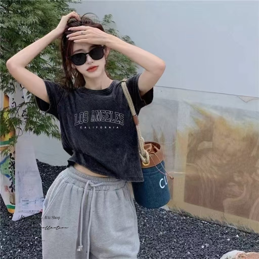 BAi白媽媽 短版印圖水洗棉T/做舊復古短袖T恤-台灣現貨 隔日到貨【350394】黑(02)T-shirtsBAi白媽媽 品牌旗艦店