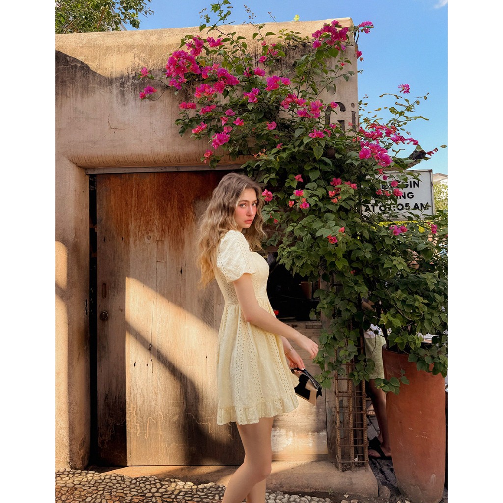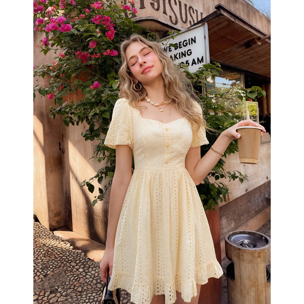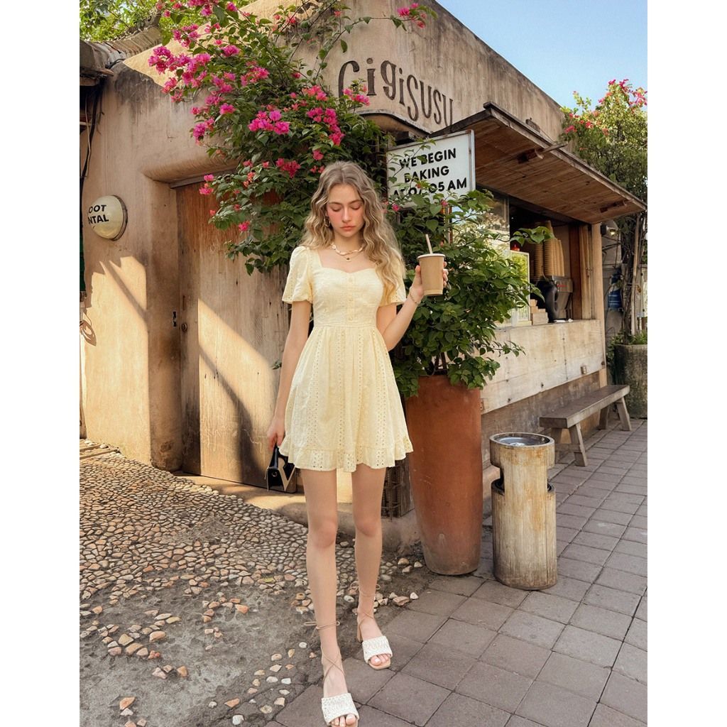 AIR SPACE 法式燒花蕾絲短洋裝(白/黃) 女裝 現貨白,S|白,M|白,L|黃,S|黃,M|黃,LAIR SPACE
