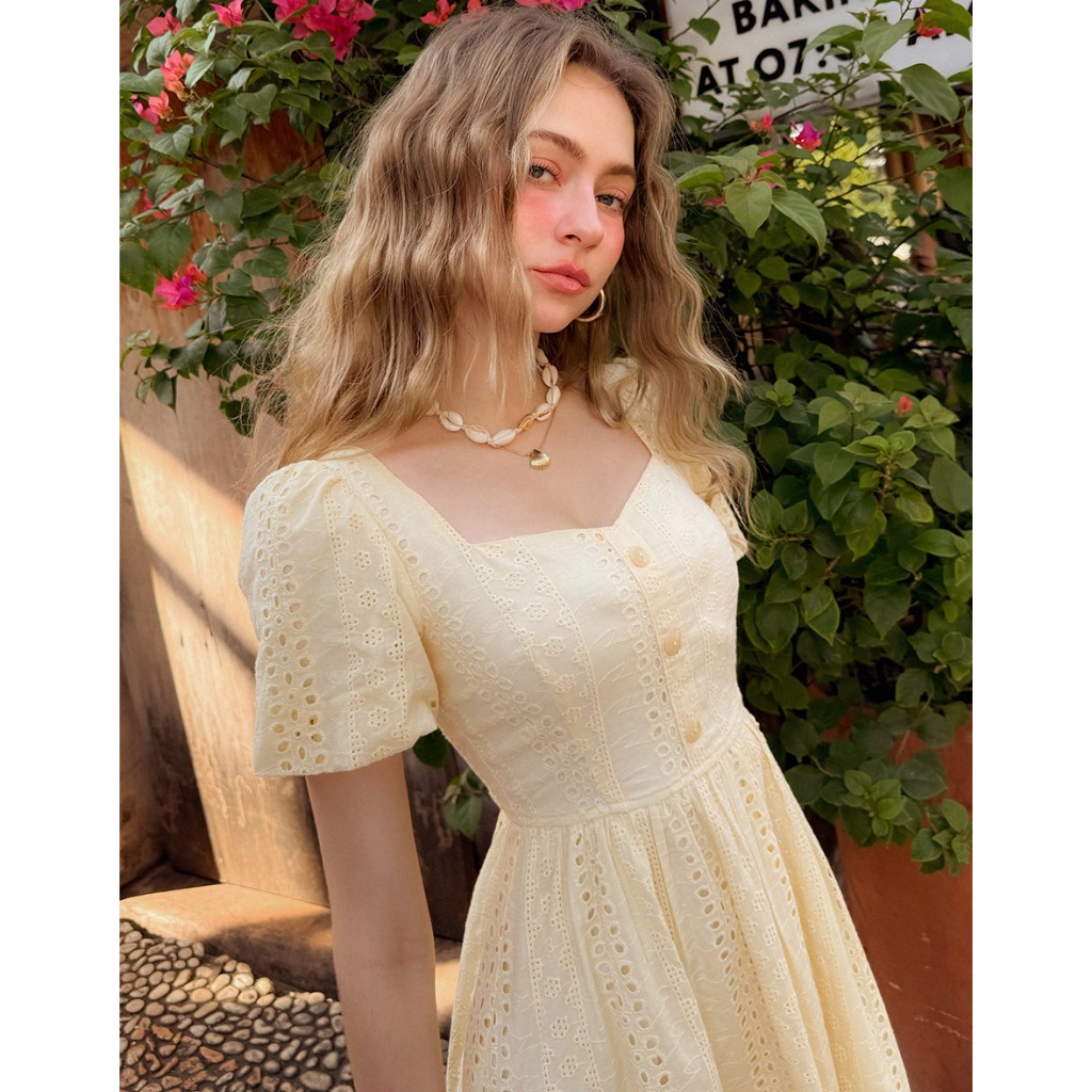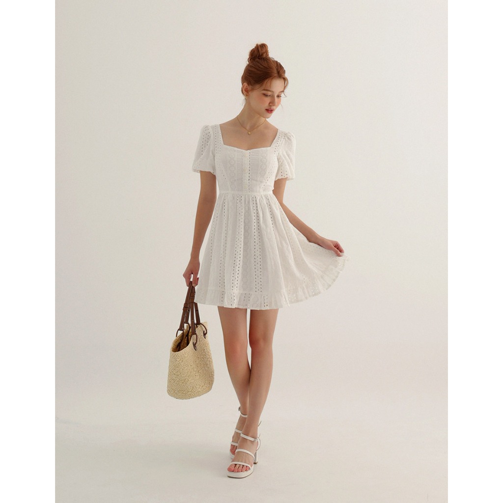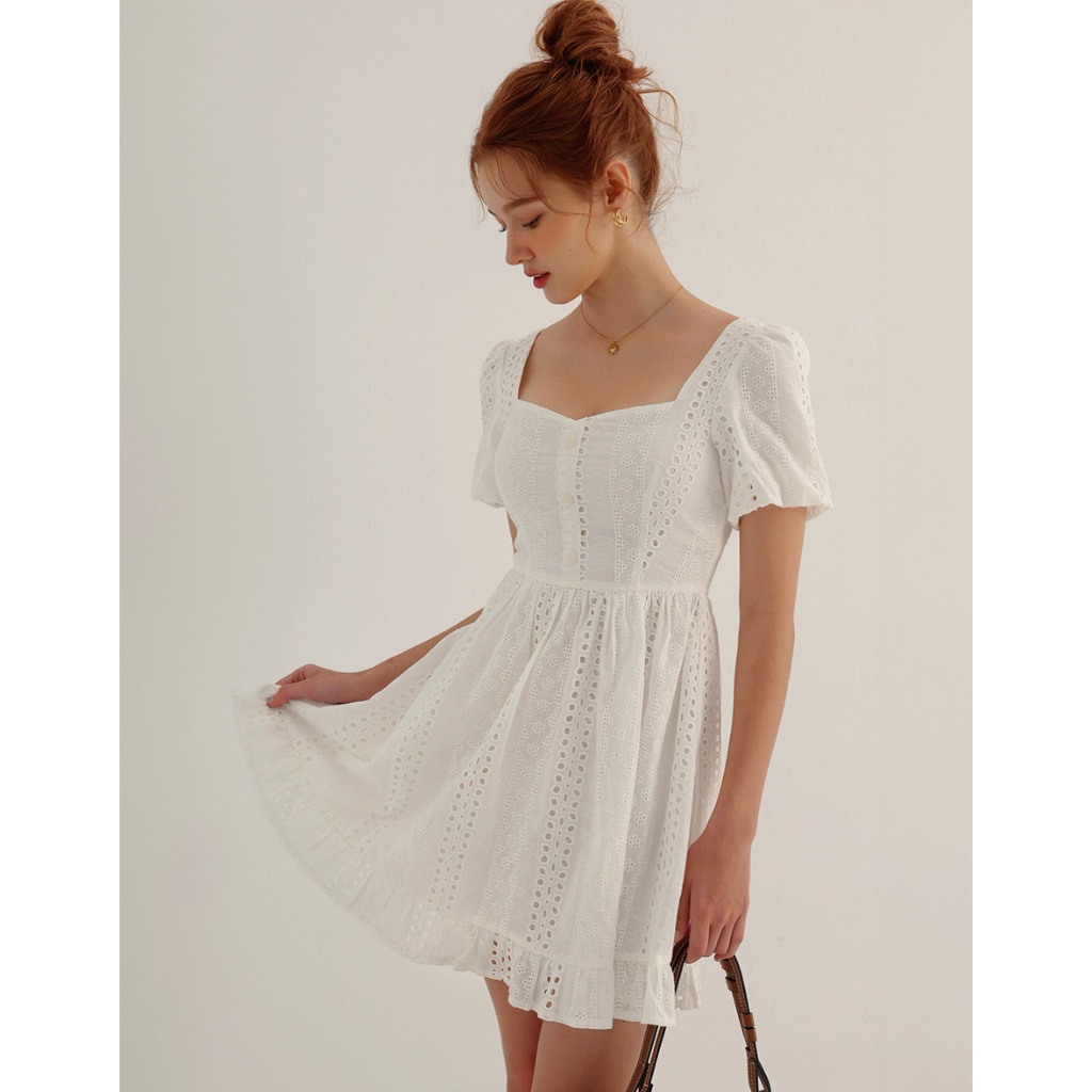 AIR SPACE 法式燒花蕾絲短洋裝(白/黃) 女裝 現貨白,S|白,M|白,L|黃,S|黃,M|黃,LAIR SPACE