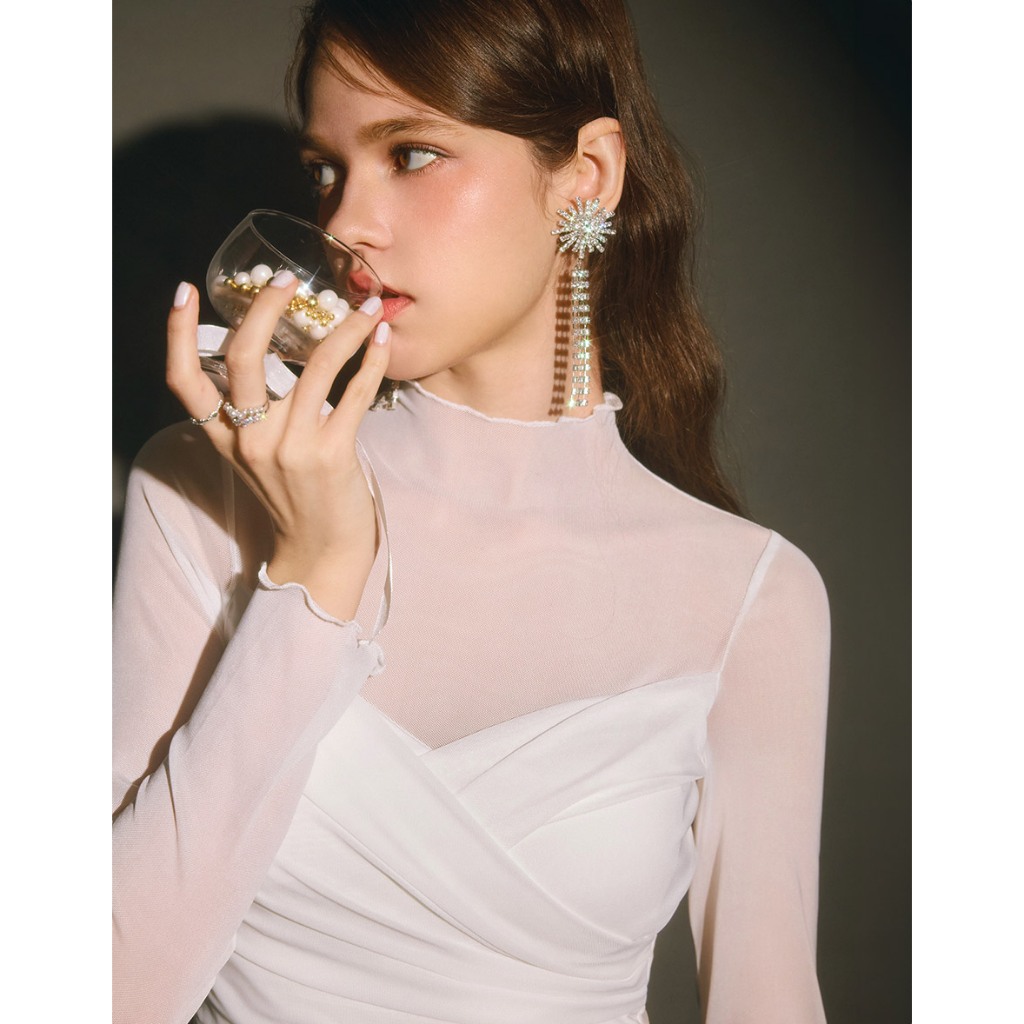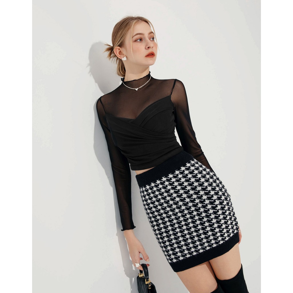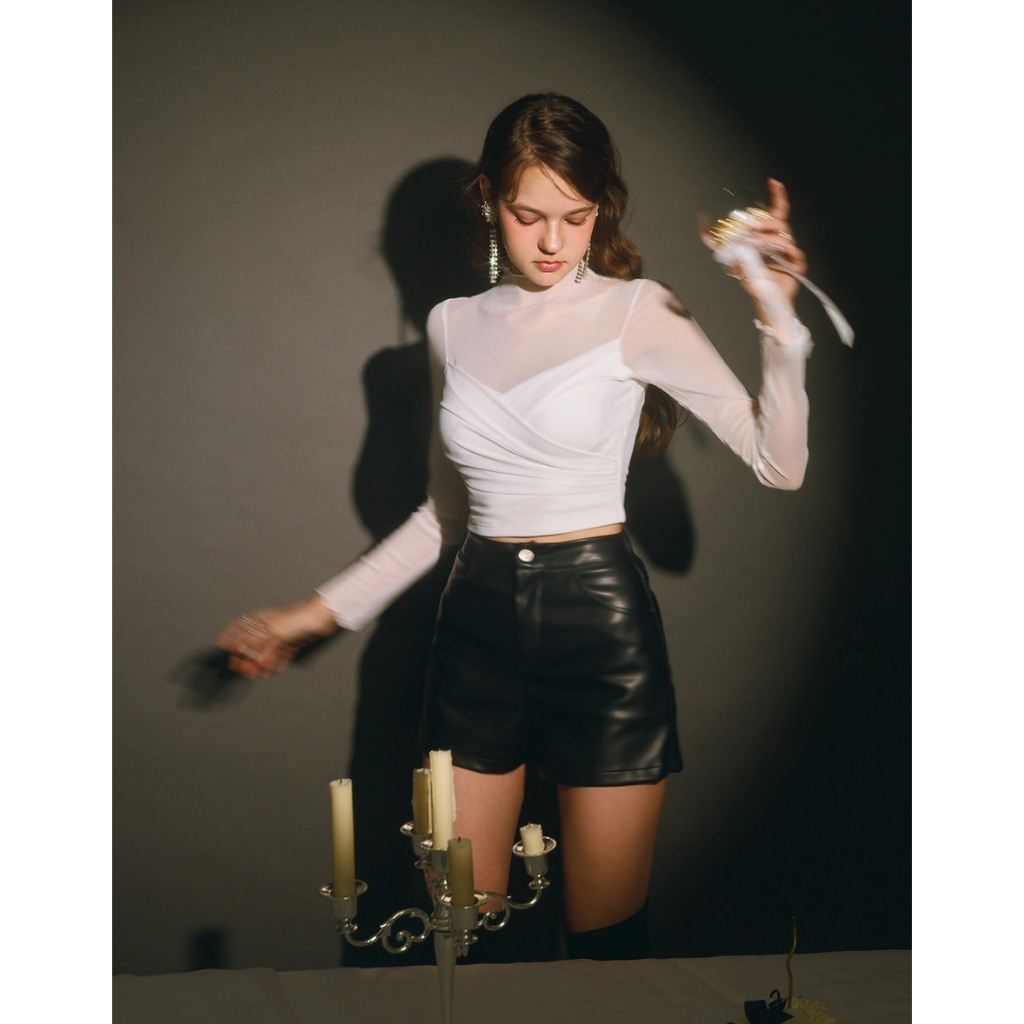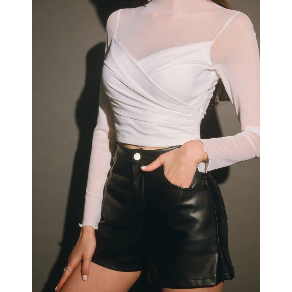 AIR SPACE 半高領透紗拼接上衣(附胸墊)(黑/白) 女裝 現貨黑,S|黑,M|黑,L|白,S|白,M|白,LOthersAIR SPACE