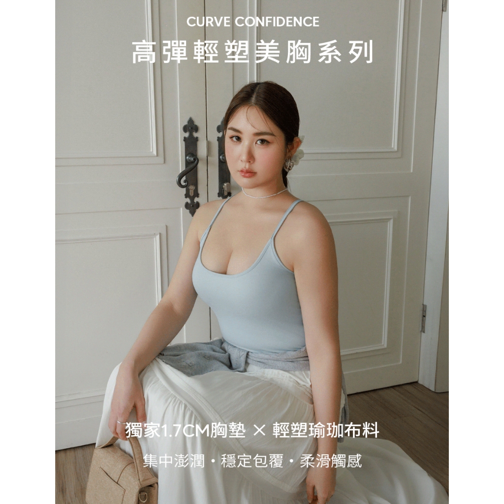 AIR SPACE PLUS 高彈輕塑美胸U領短版細肩帶背心(附胸墊)(黑/白/藍) 女裝 現貨 大尺碼 中大尺碼