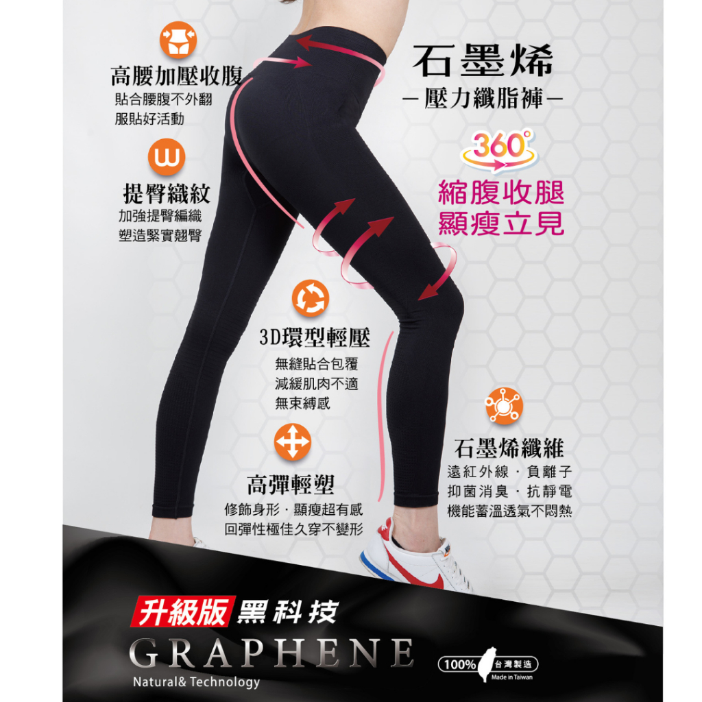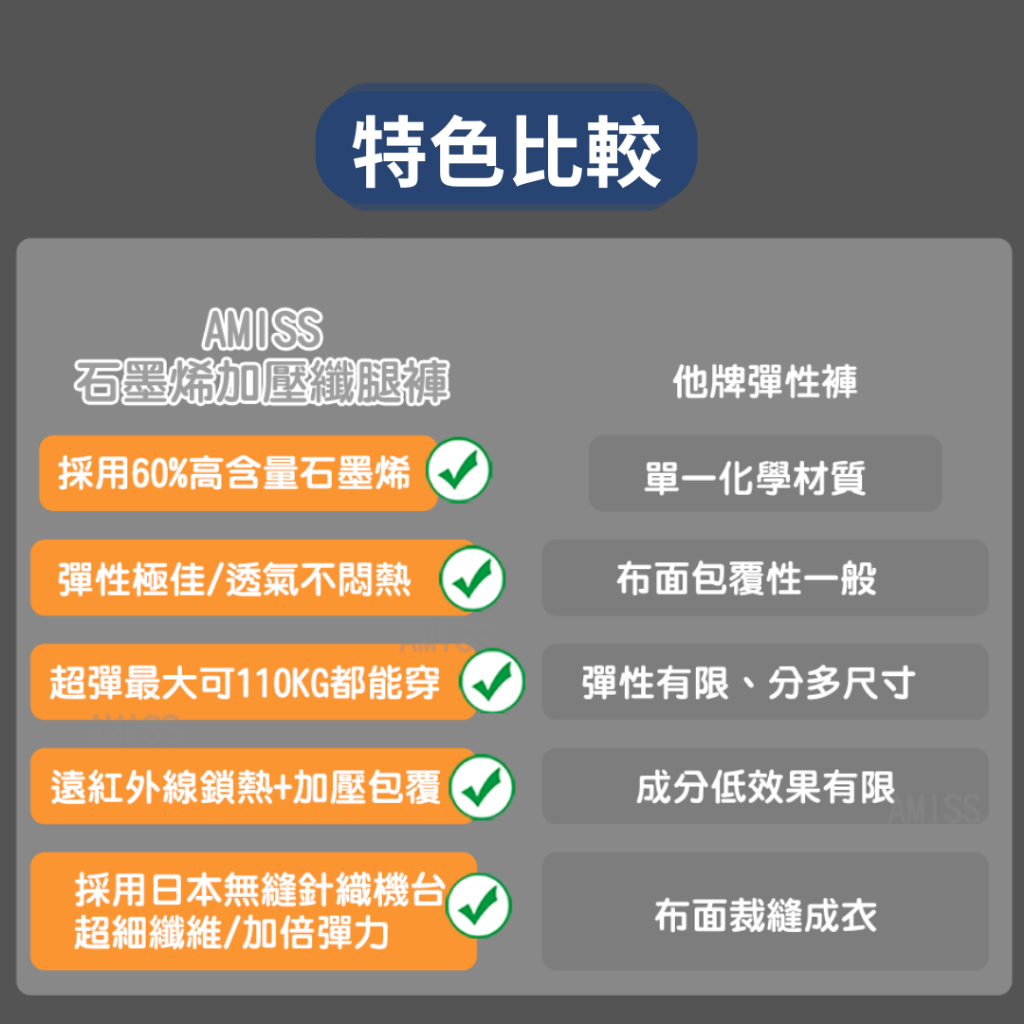 【AMISS】台灣製石墨烯纖腿褲 纖脂褲 發熱褲 瑜珈褲 美型褲 加大美體褲 壓力褲 鯊魚褲 壓縮褲一般尺寸(45-80KG)|加大尺寸(70-110KG)Leggings & TreggingsAmiss全家人的襪子