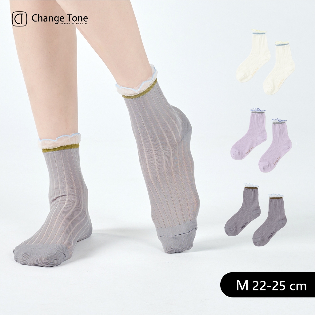 【CT®】小雛菊|透明中筒襪 女襪子 水晶襪 玻璃襪 透膚 台灣製造 透明襪米白,22-25|淺紫,22-25|灰,22-25Socks【ChangeTone 襪子專賣店】台灣製 除臭襪、運動襪、男女襪、童襪、隱形襪