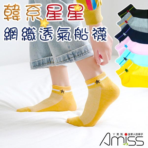 【Amiss】流行網織透氣船襪-韓系星星- C803-2顏色隨機出貨-單雙SocksAmiss全家人的襪子