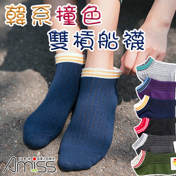 【Amiss】韓系流行撞色雙槓船襪-C803(顏色隨機)-單雙SocksAmiss全家人的襪子