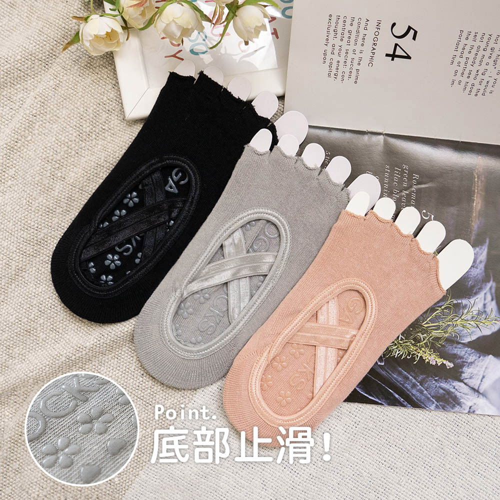 AHUA阿華有事嗎 純色瑜珈防滑露趾襪 N0009 襪子推薦 流行襪首選 長襪 瑜珈 健身 運動襪 短襪 機能襪粉底|灰底|黑底SocksAHUA 韓國襪子品牌旗艦店