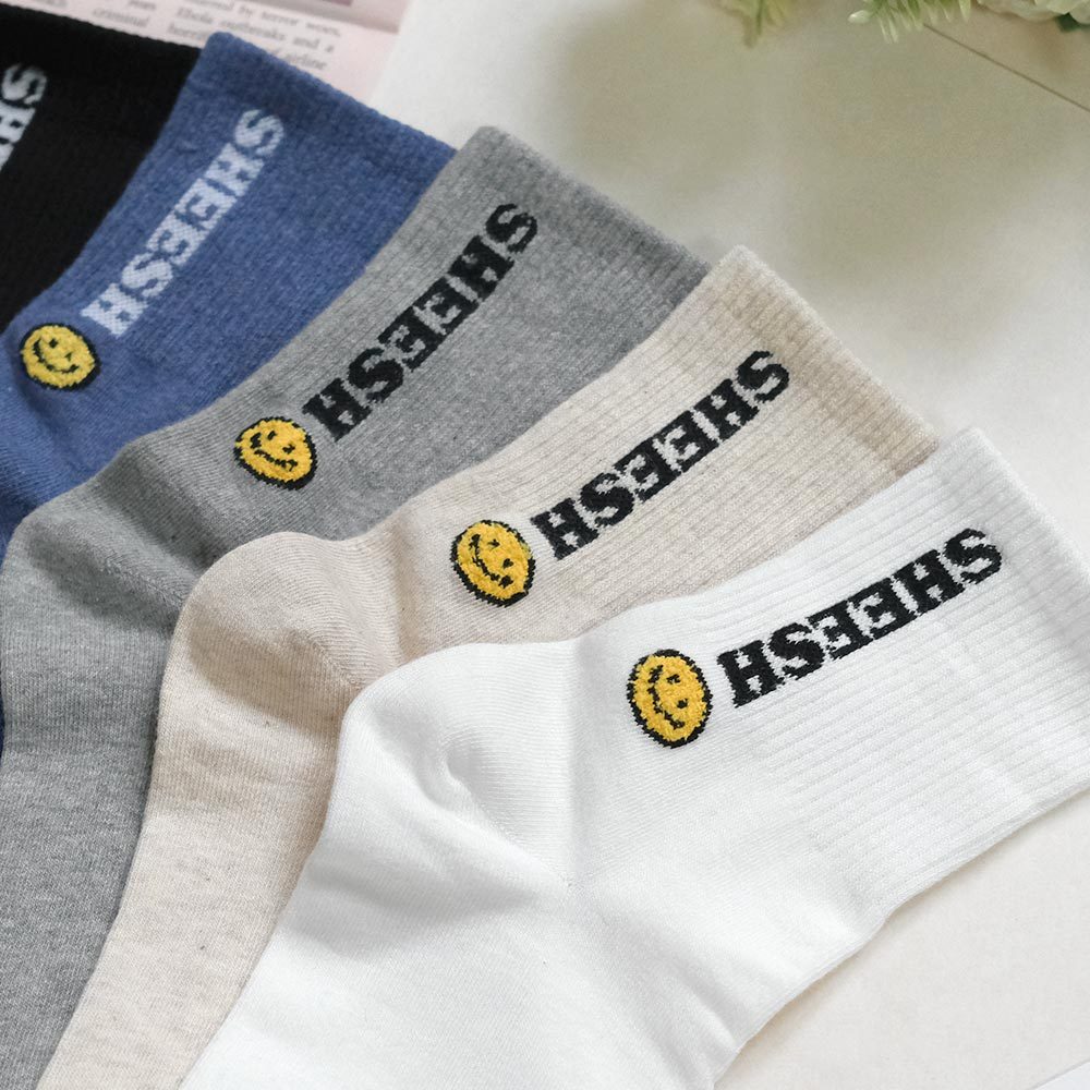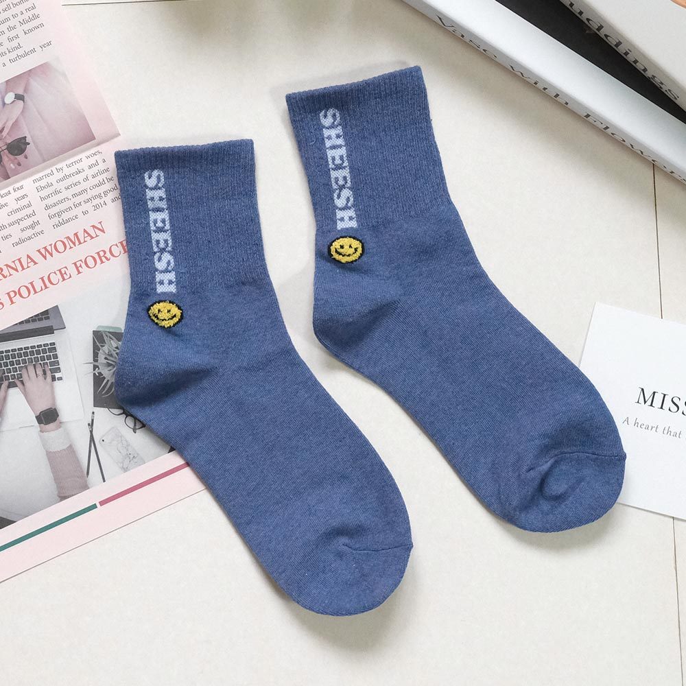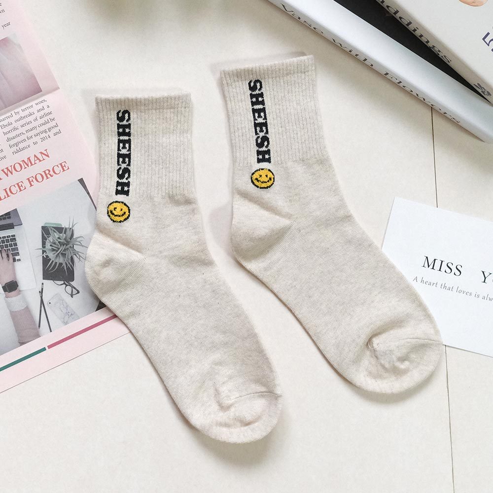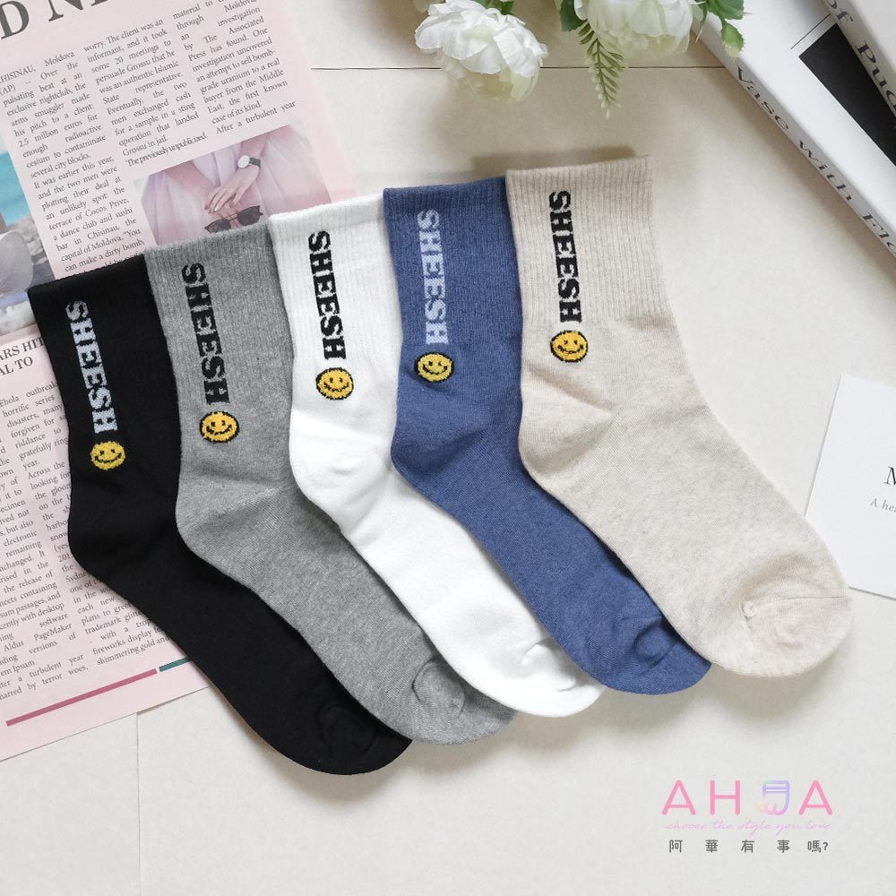 AHUA阿華有事嗎 SHEESH立體毛毛笑臉中筒襪 K2219 正韓襪子 百搭純棉襪 韓妞必備 少女襪白底|米白底|灰底|藍底|黑底SocksAHUA 韓國襪子品牌旗艦店