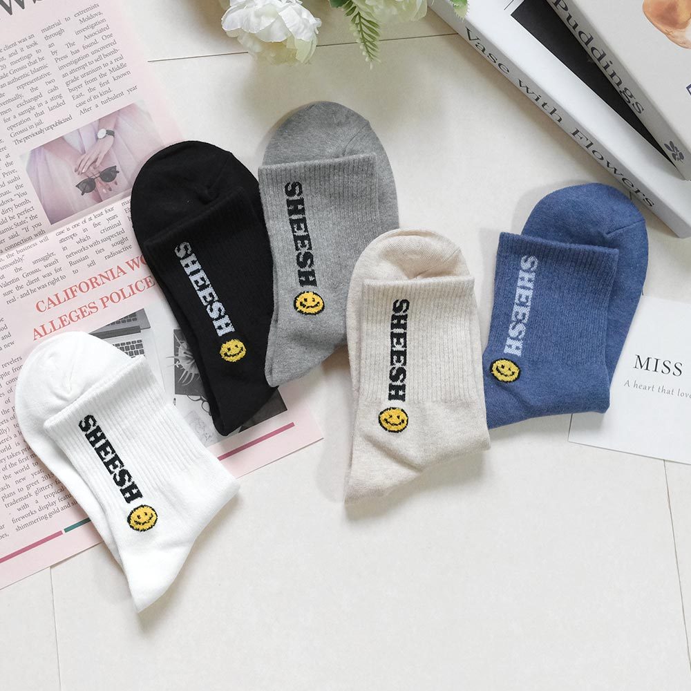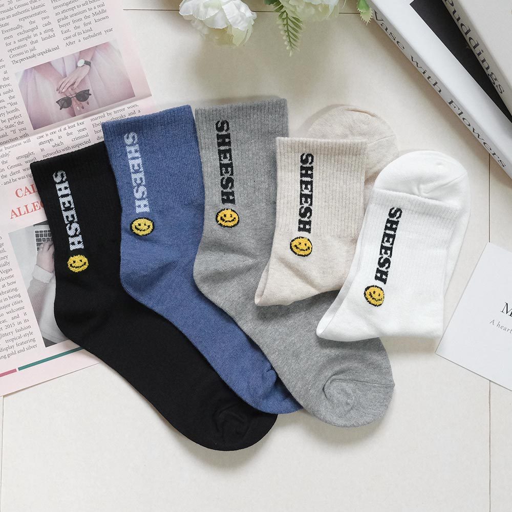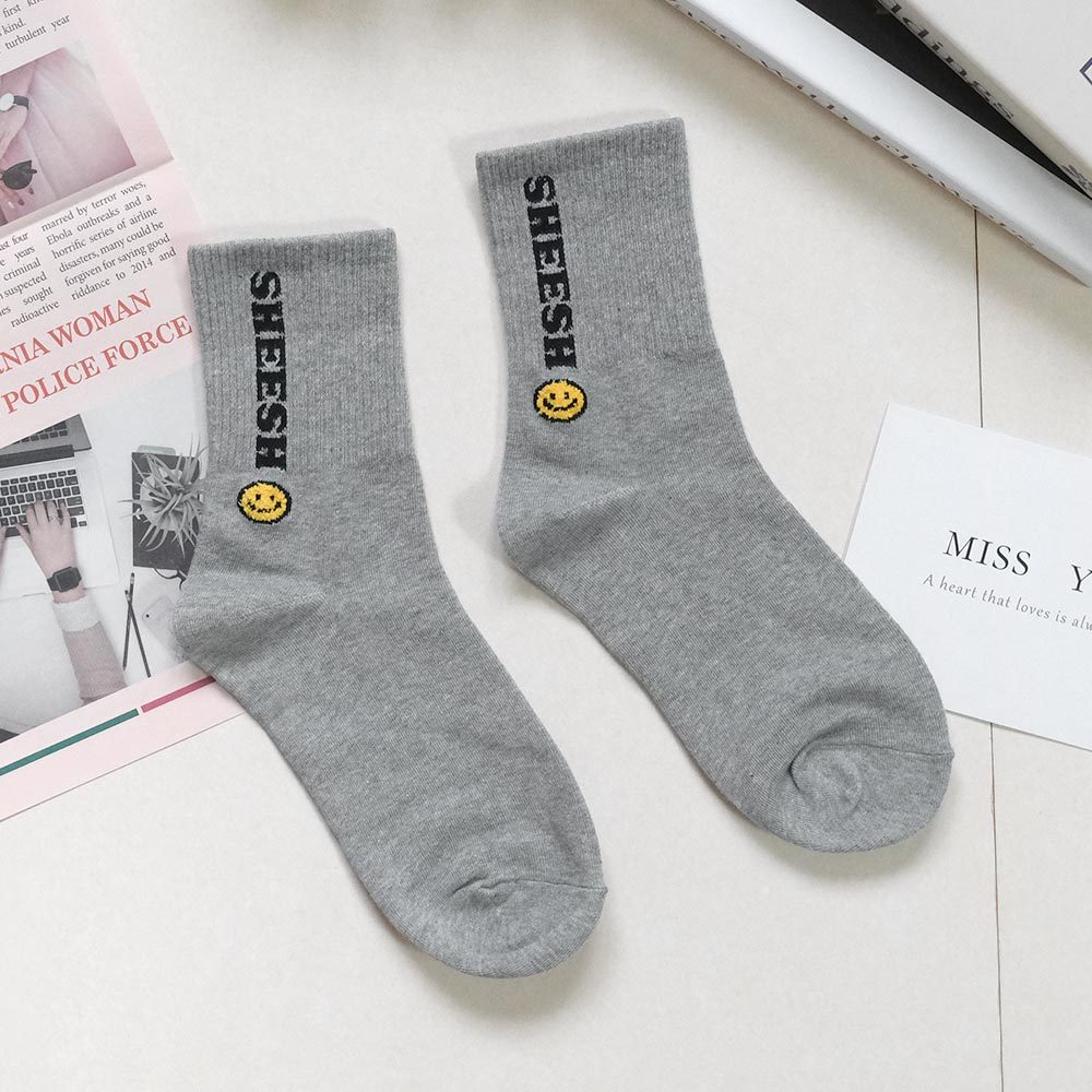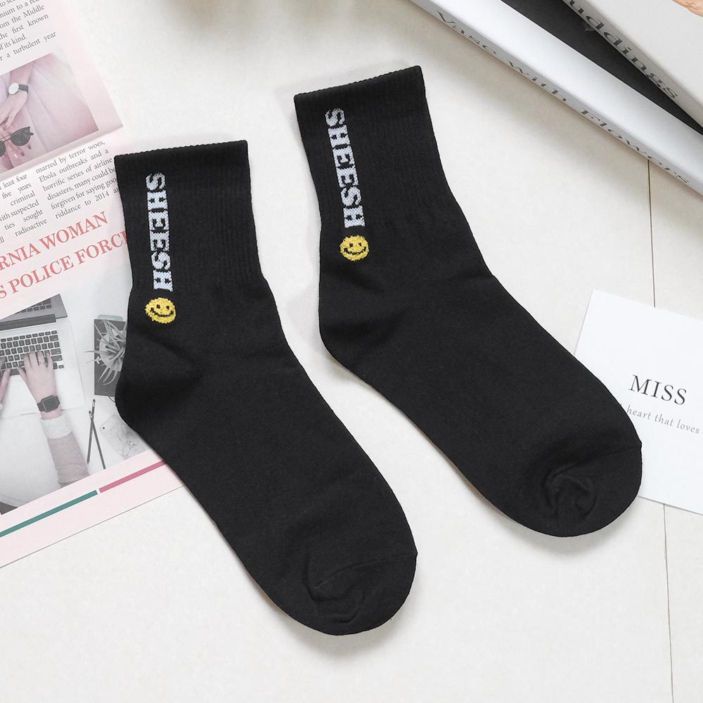 AHUA阿華有事嗎 SHEESH立體毛毛笑臉中筒襪 K2219 正韓襪子 百搭純棉襪 韓妞必備 少女襪白底|米白底|灰底|藍底|黑底SocksAHUA 韓國襪子品牌旗艦店