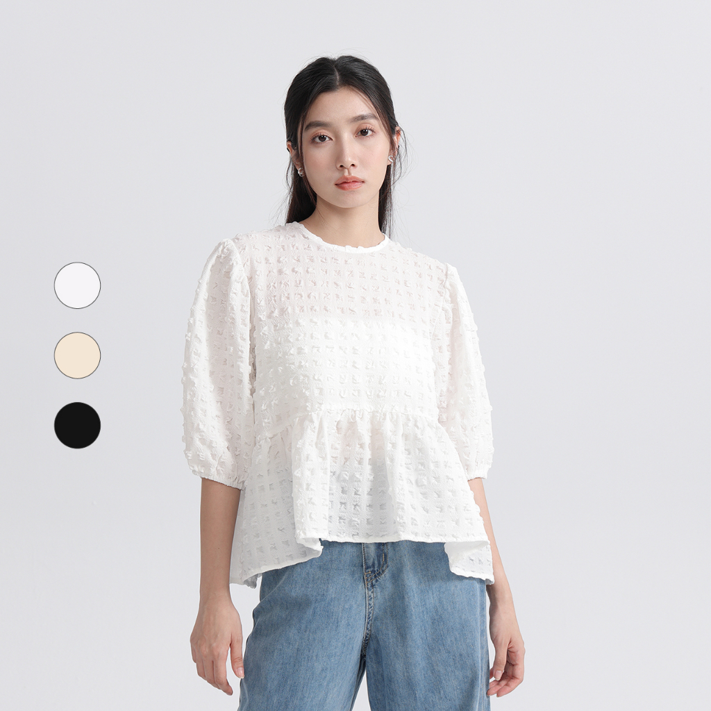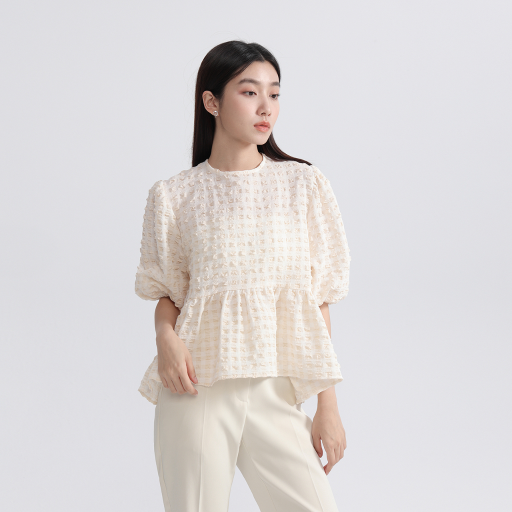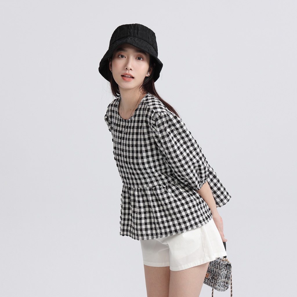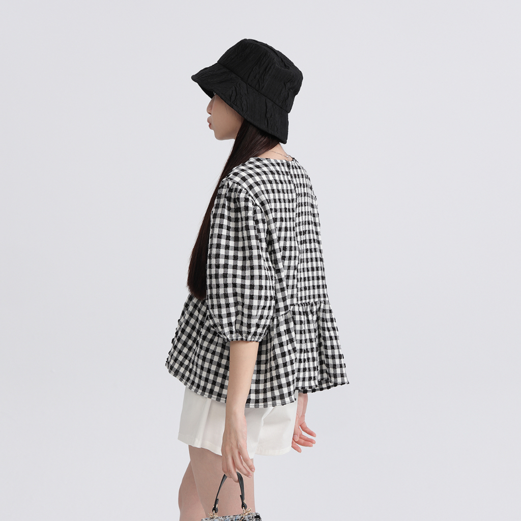 50% Fifty Percent|格紋泡泡袖襯衫|02389230005黑色,S|黑色,M|米白,S|米白,M|杏色,S|杏色,MShirts & Blouses50 PERCENT 官方旗艦店