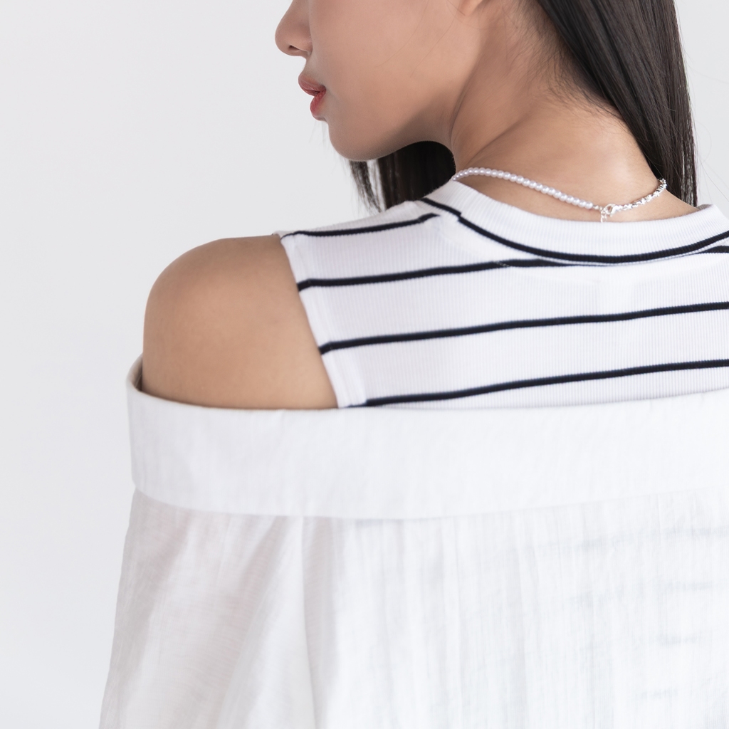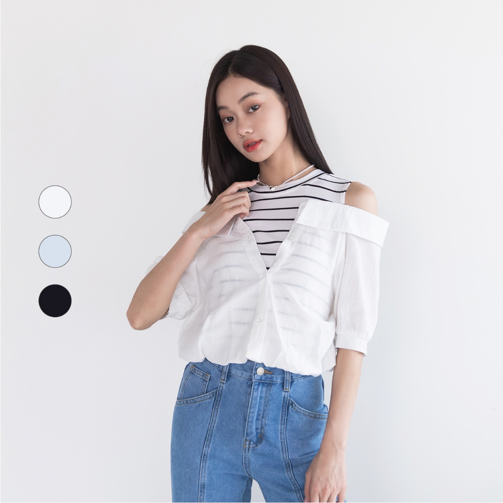 50% Fifty Percent|假2件短版露肩襯衫|02572330001黑色,S|黑色,M|黑色,L|米白,S|米白,M|米白,L|淺藍,S|淺藍,M|淺藍,LShirts & Blouses50 PERCENT 官方旗艦店