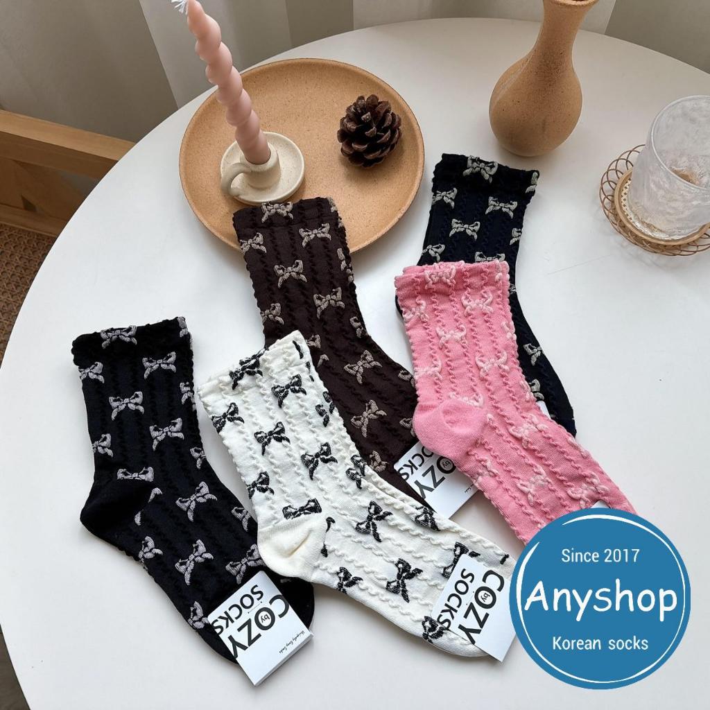 Anyshop韓國襪 蝴蝶結系列 編織長襪 壓紋蝴蝶結襪 女孩襪 浮雕襪 韓襪 韓國襪 長襪 蝴蝶結襪 襪子 32003黑色紫蝴蝶結【32003】|米白色黑蝴蝶結【32003】|咖啡色黃蝴蝶結【32003】|粉色白蝴蝶結【32003】|深藍色黃蝴蝶結【32003】SocksAnyshop韓國襪專賣 | 零售 | 團購 | 批發