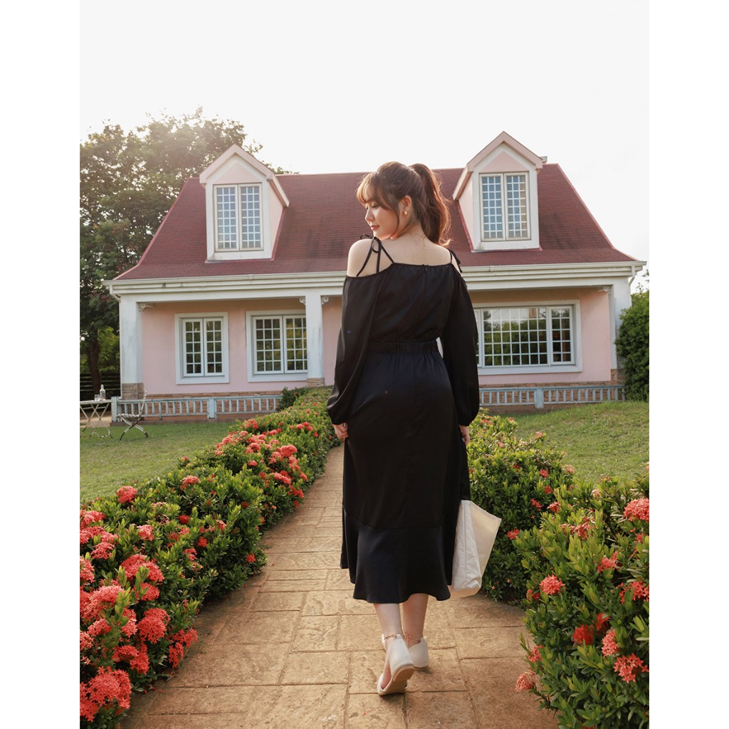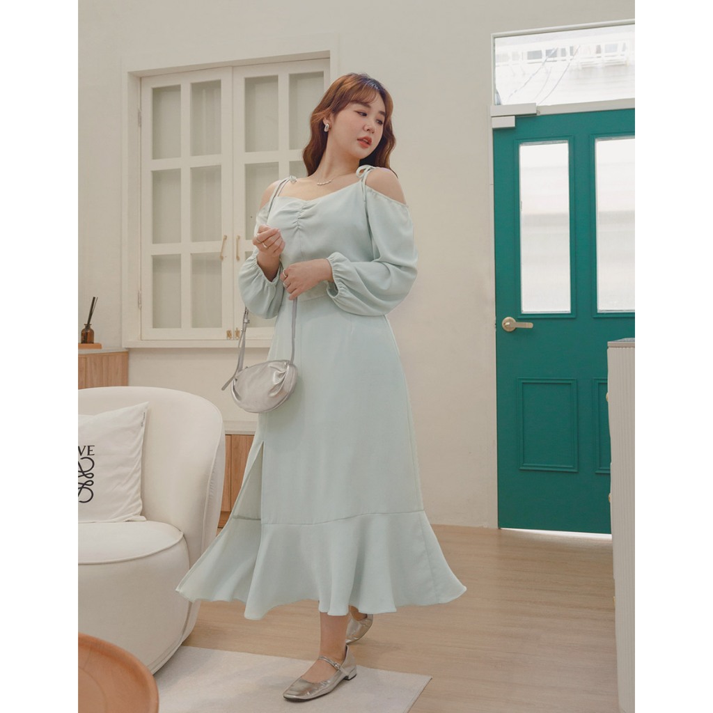 AIR SPACE PLUS 挖肩綁帶開衩魚尾長洋裝 (黑/綠)女裝 現貨 大尺碼 中大尺碼黑,XL|黑,2XL|黑,3XL|綠,XL|綠,2XL|綠,3XLAIR SPACE