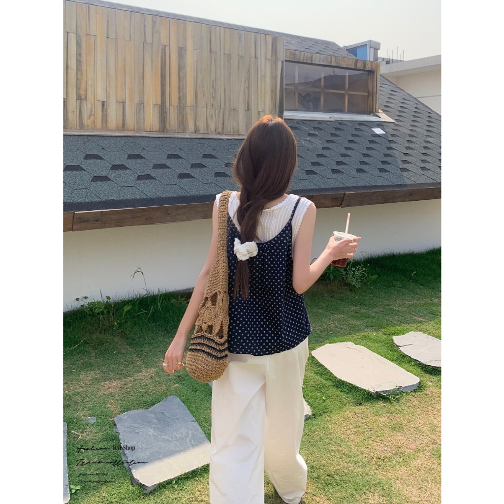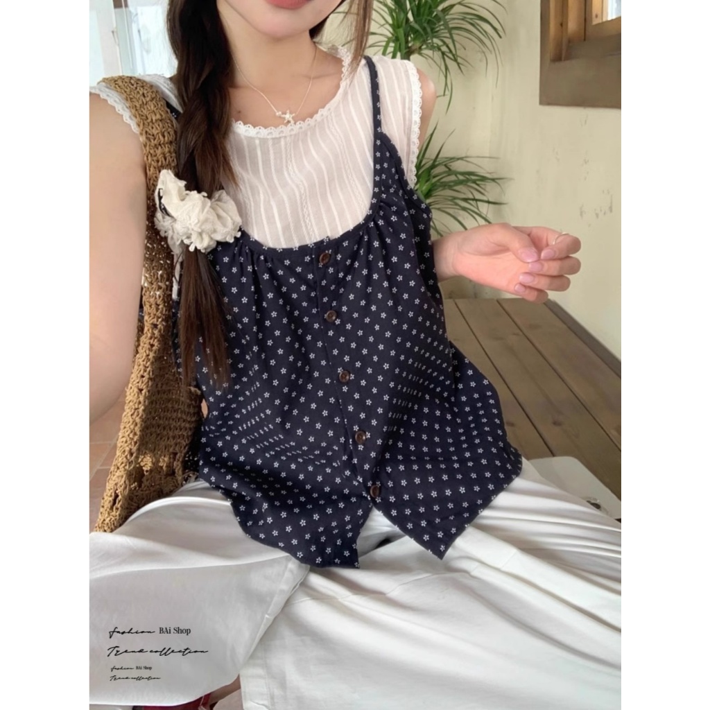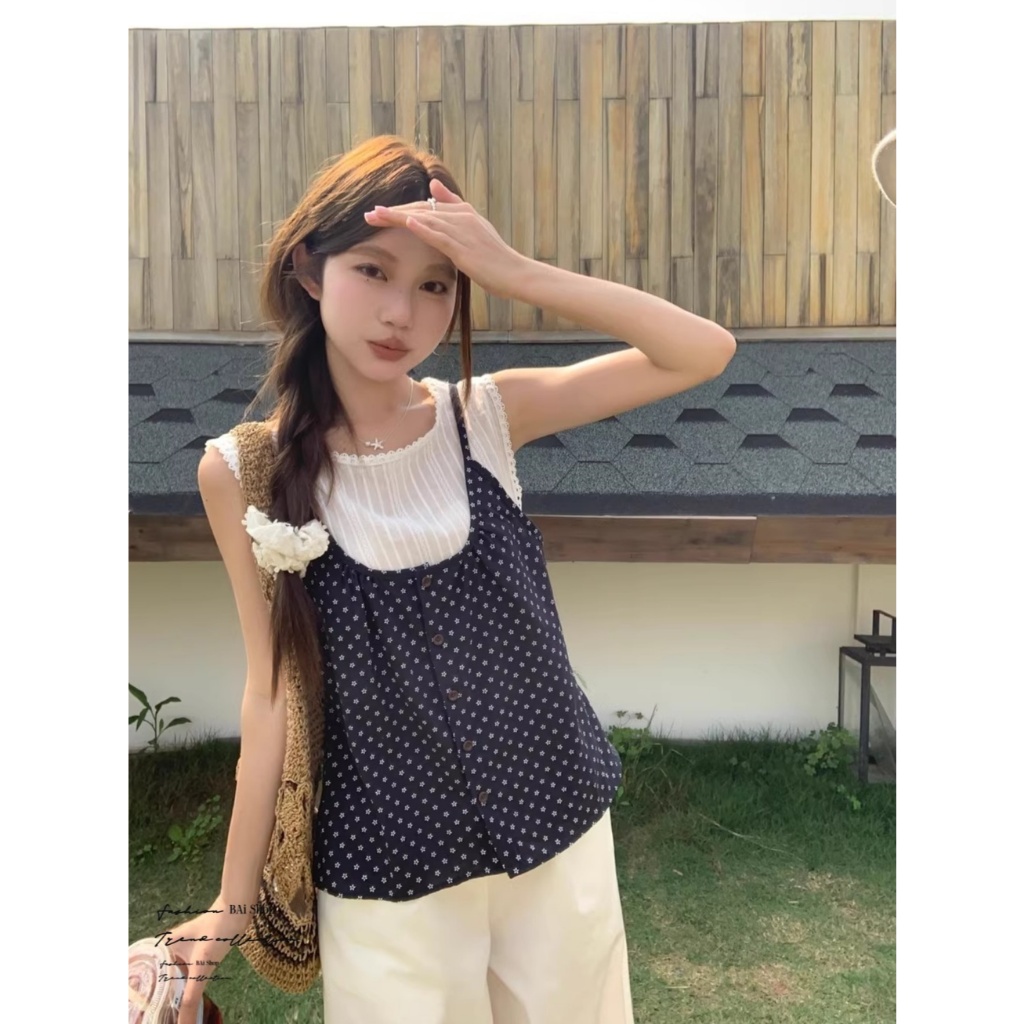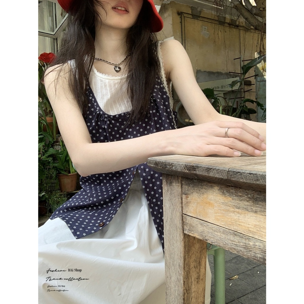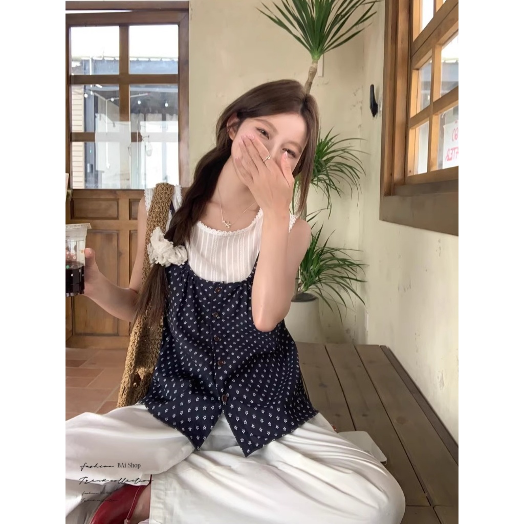 BAi白媽媽 假兩件印花/小碎花無袖背心 嬌小 小個子推薦款-台灣現貨 隔日到貨【350355】藍(05)Shirts & BlousesBAi白媽媽 品牌旗艦店