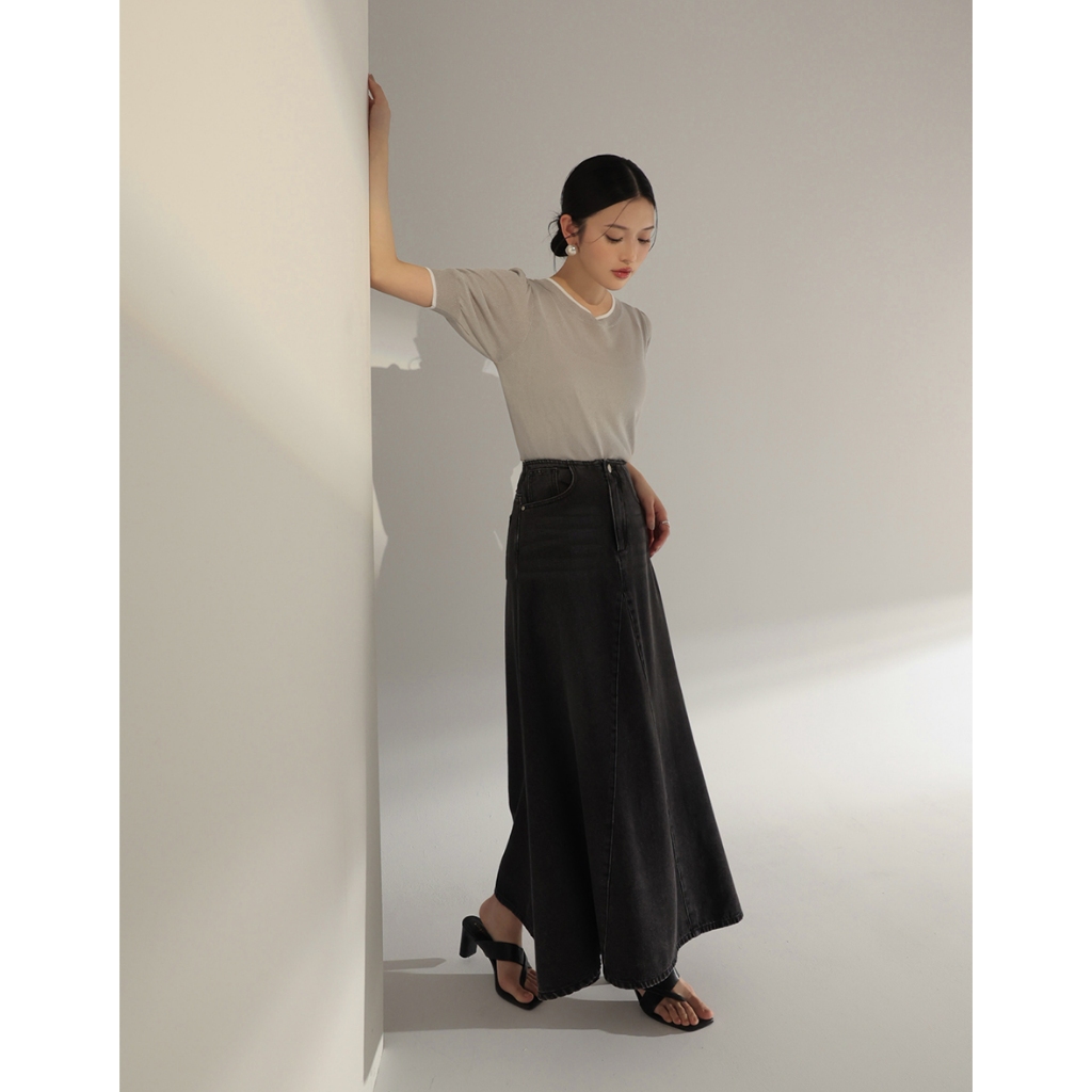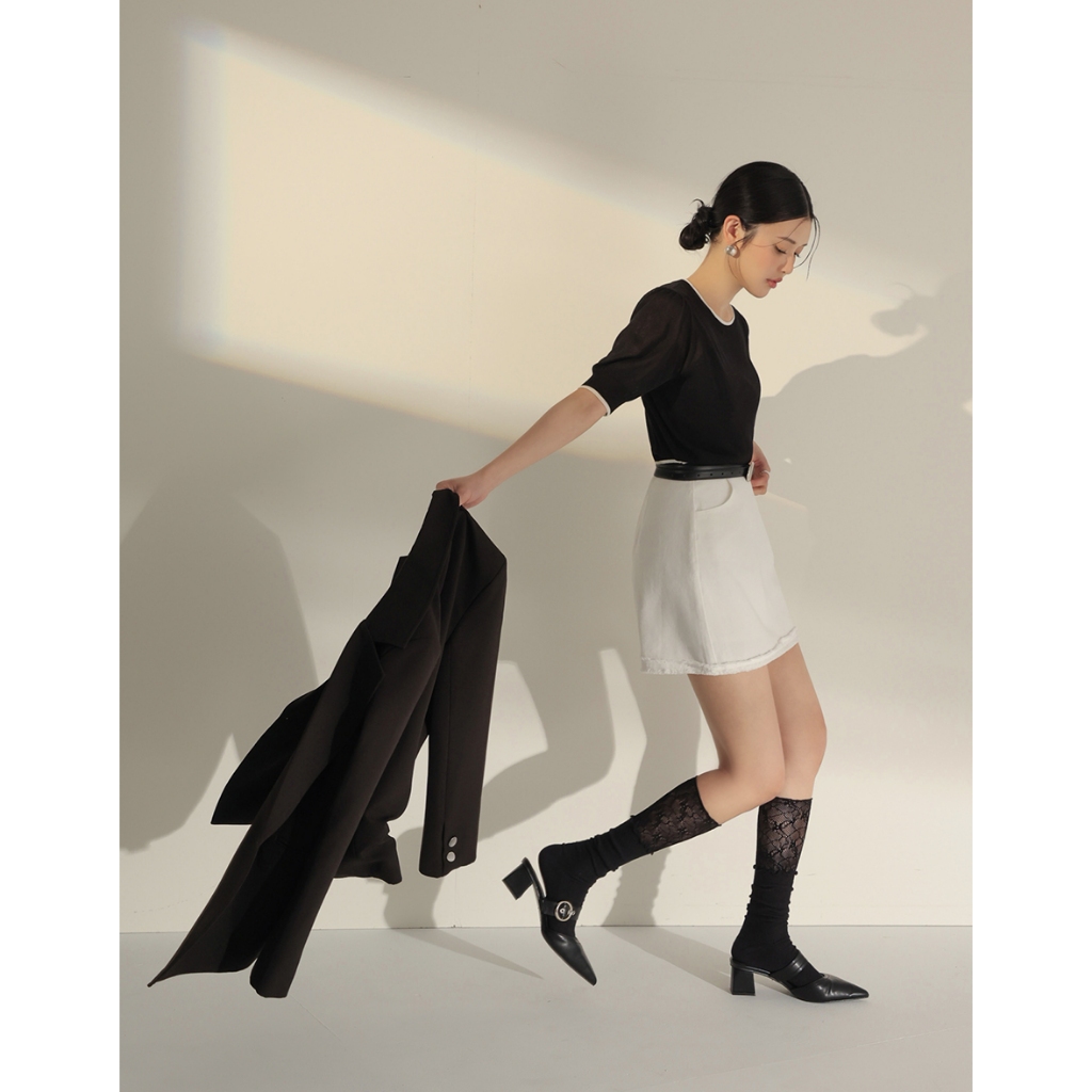 CHIC A SPACE 法式澎袖配色針織套裝(黑/卡其) 女裝 現貨