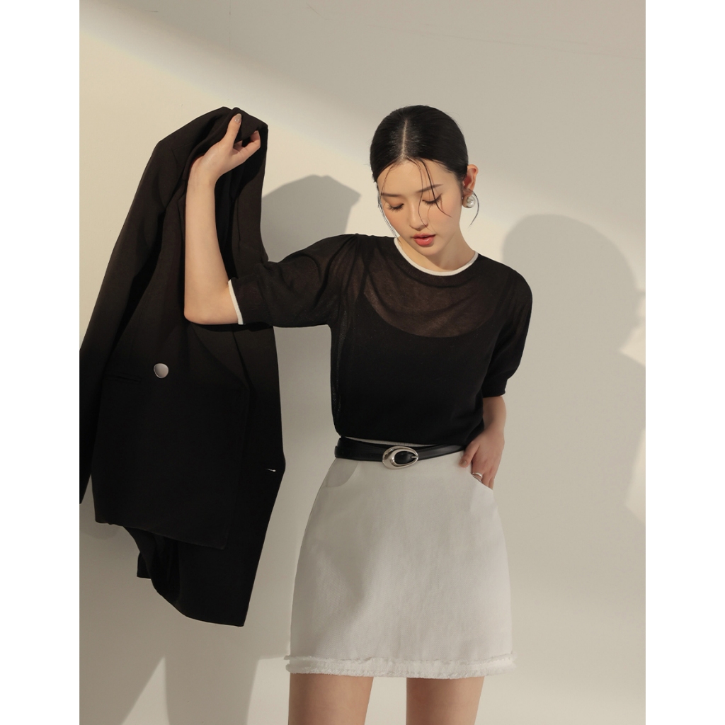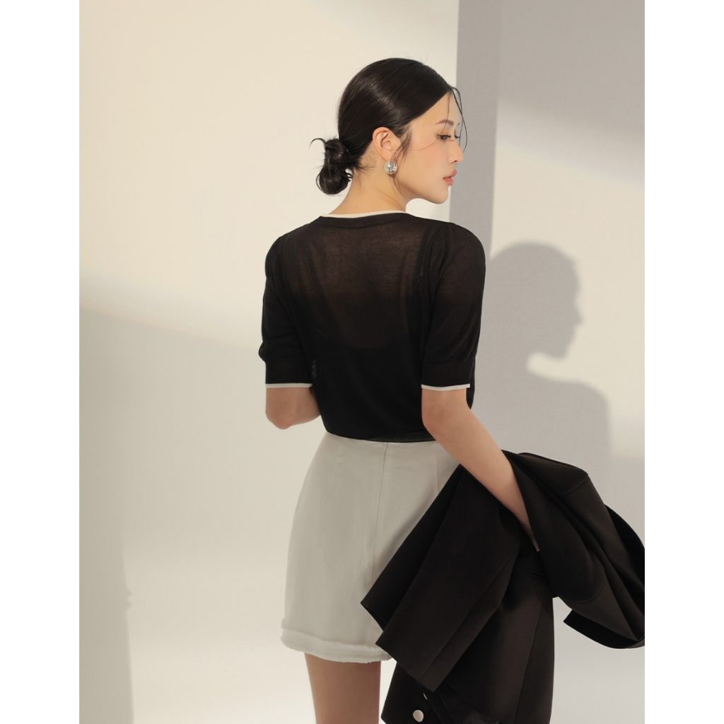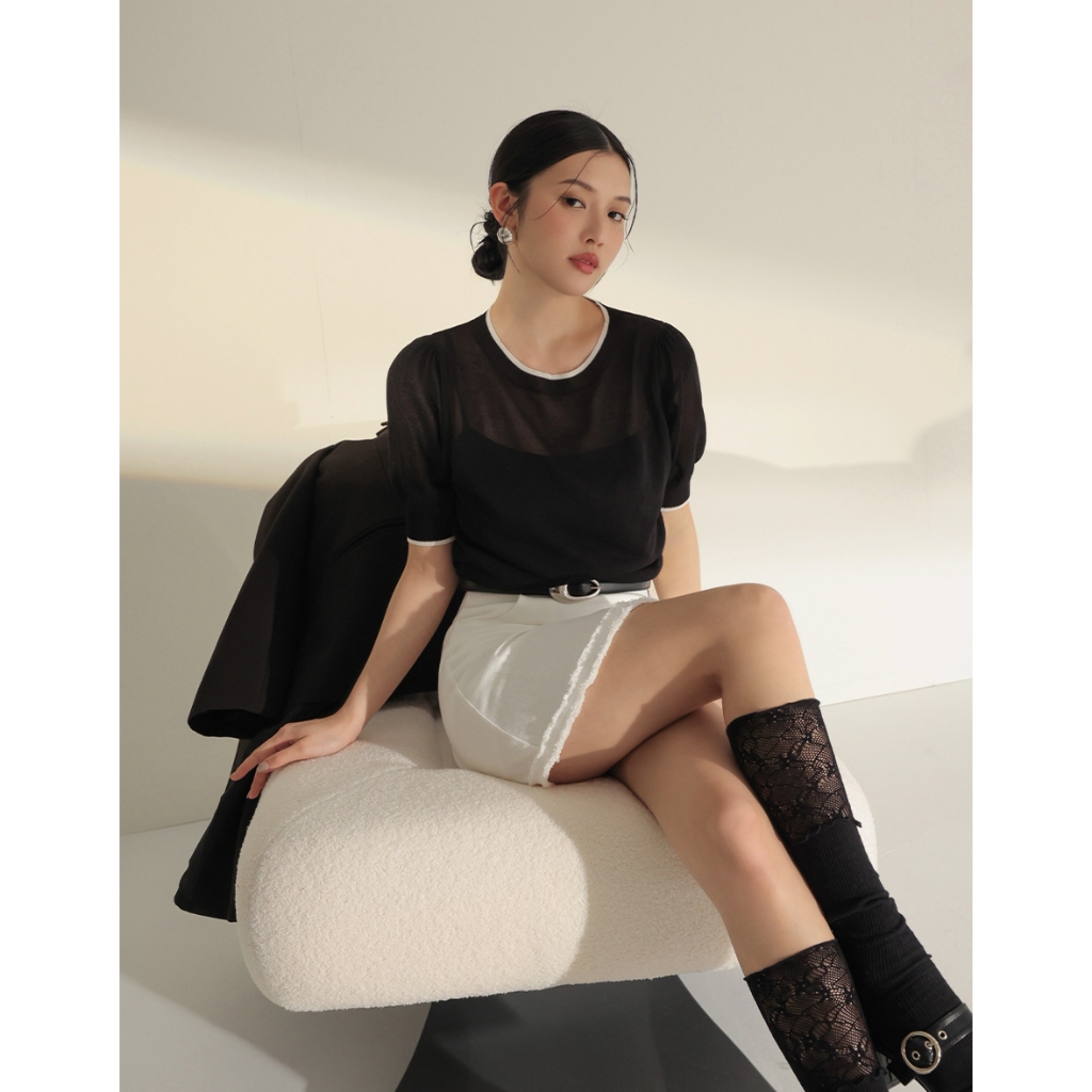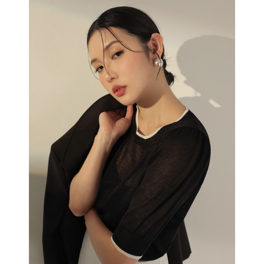 CHIC A SPACE 法式澎袖配色針織套裝(黑/卡其) 女裝 現貨黑,S|黑,M|卡其,S|卡其,MIndividual SetsAIR SPACE