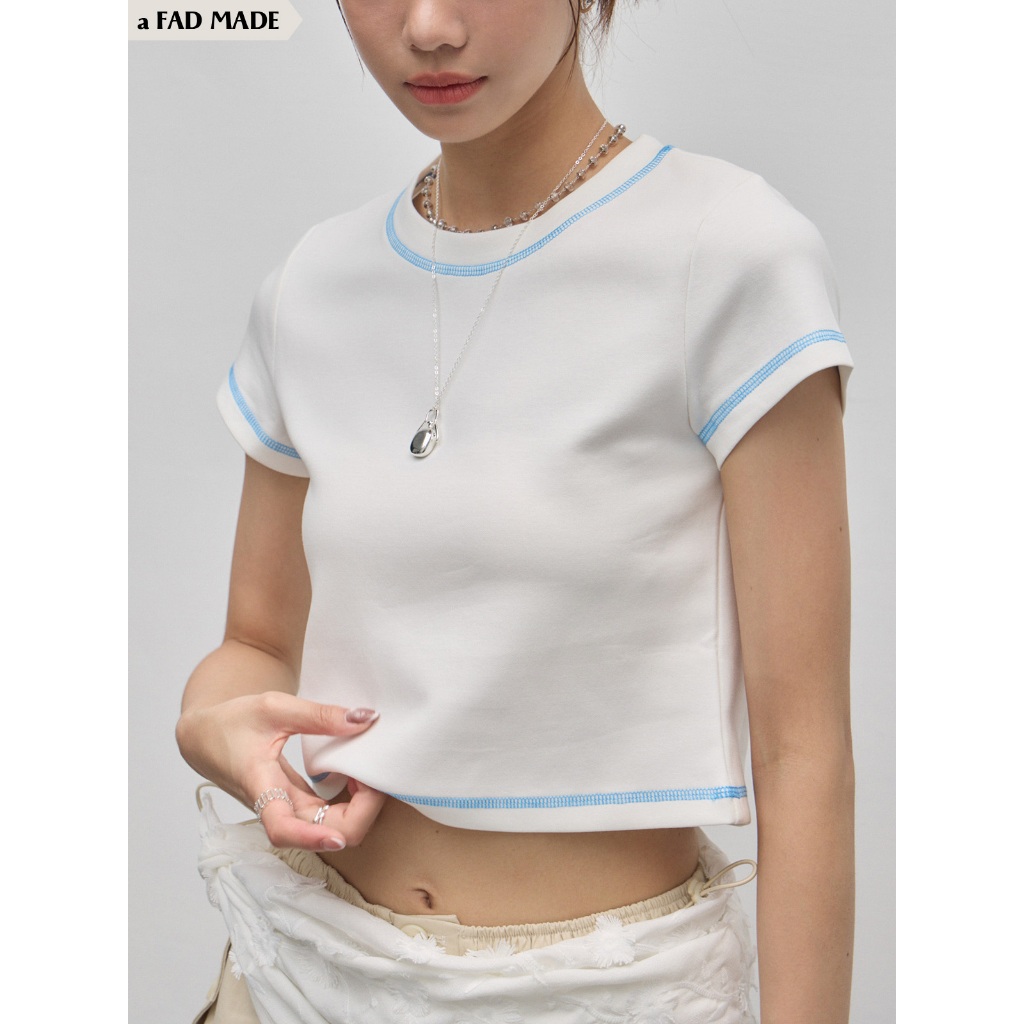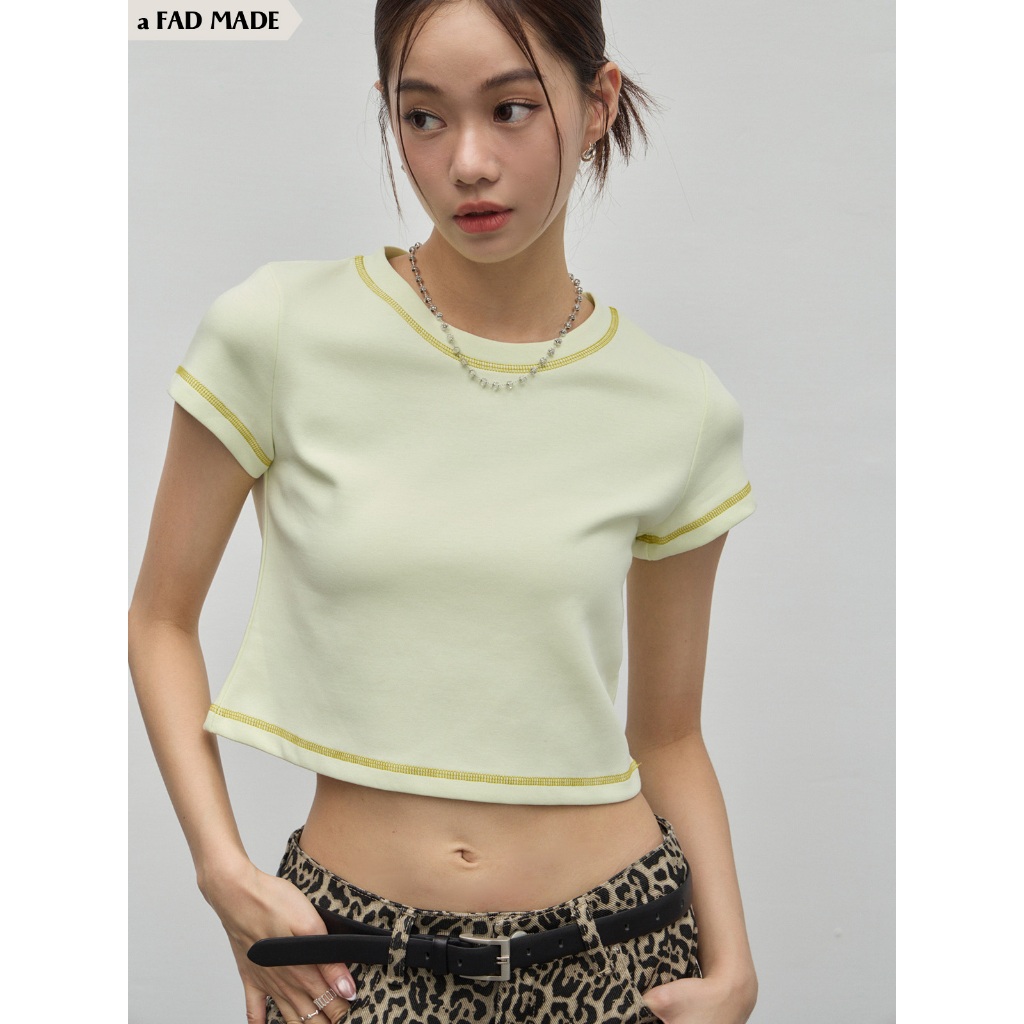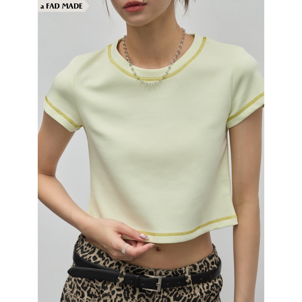 AFAD MADE-輕盈描邊撞色短版T白|黃T-shirtsAFAD TW