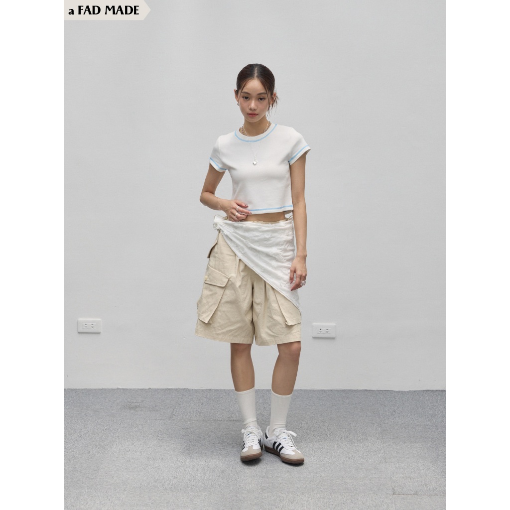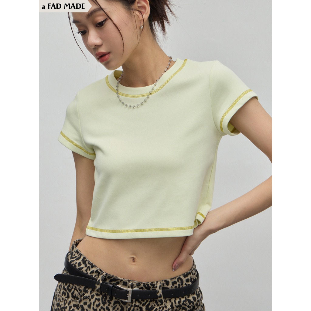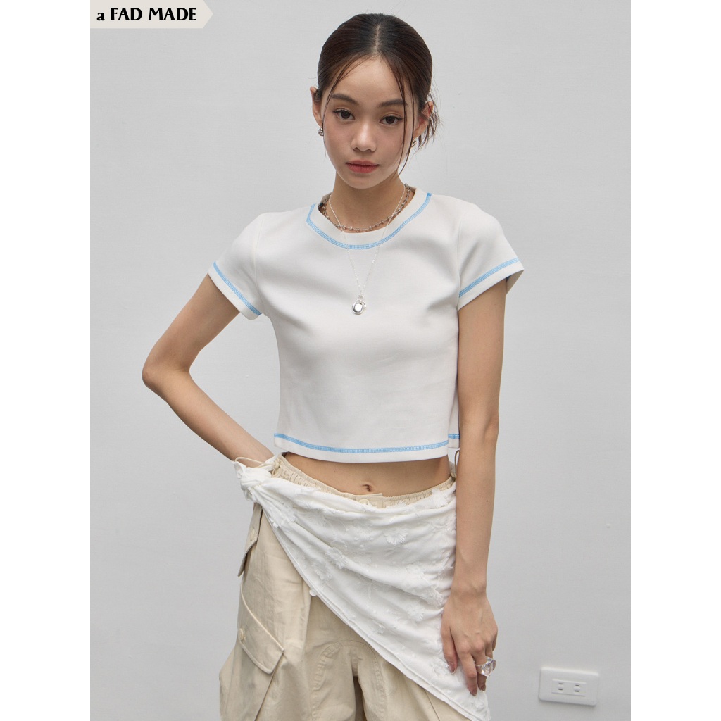 AFAD MADE-輕盈描邊撞色短版T白|黃T-shirtsAFAD TW
