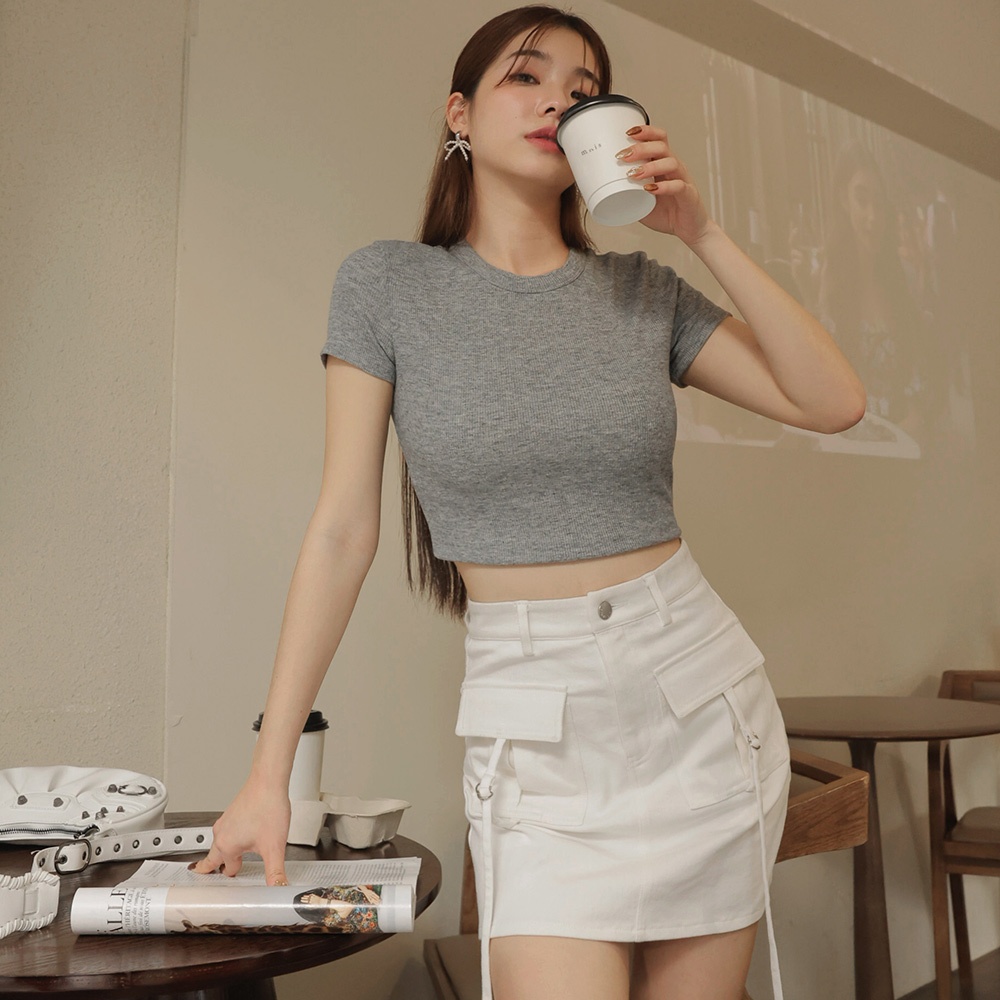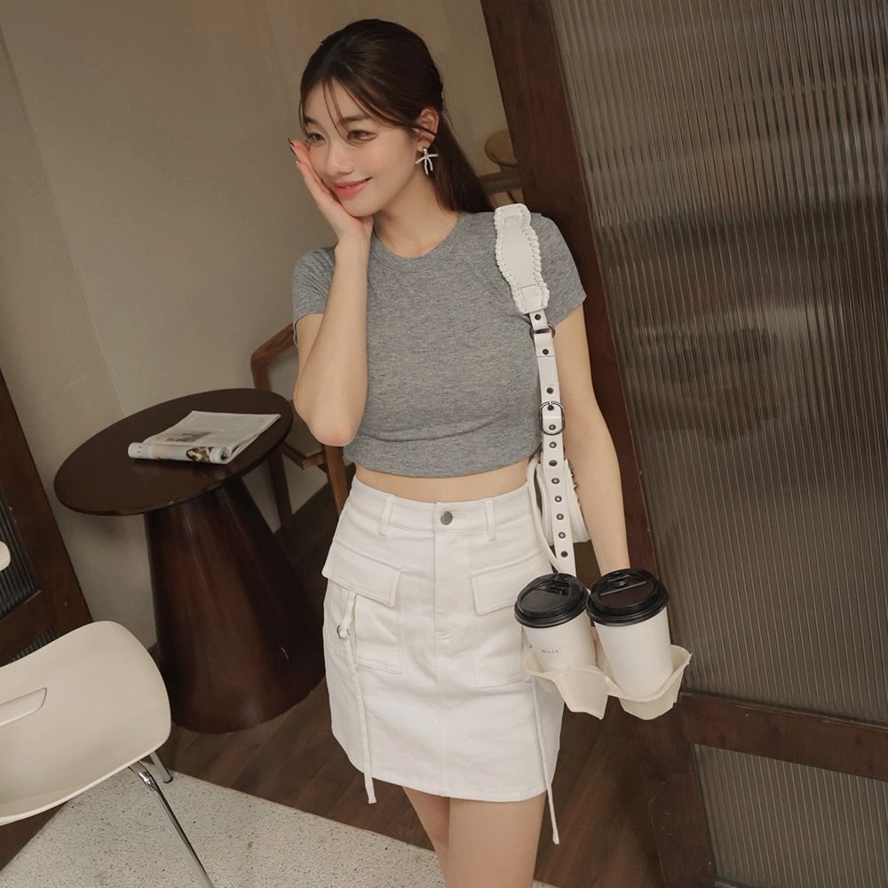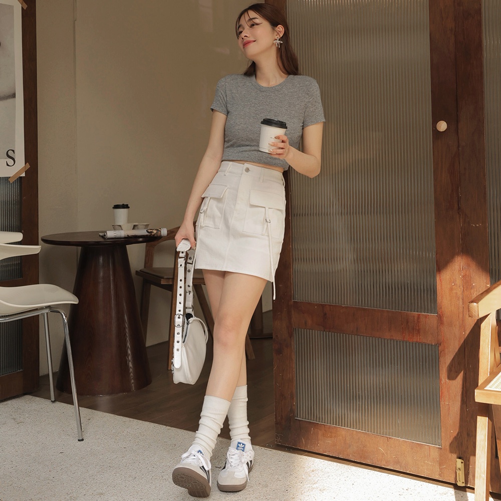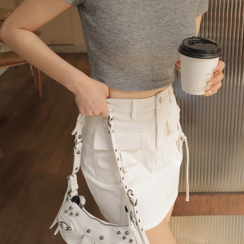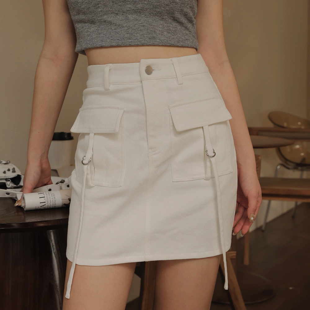 AIR SPACE LADY 厚磅牛仔A字工裝短裙(白/卡其) 女裝 現貨白,S|白,M|白,L|卡其,S|卡其,M|卡其,LAIR SPACE