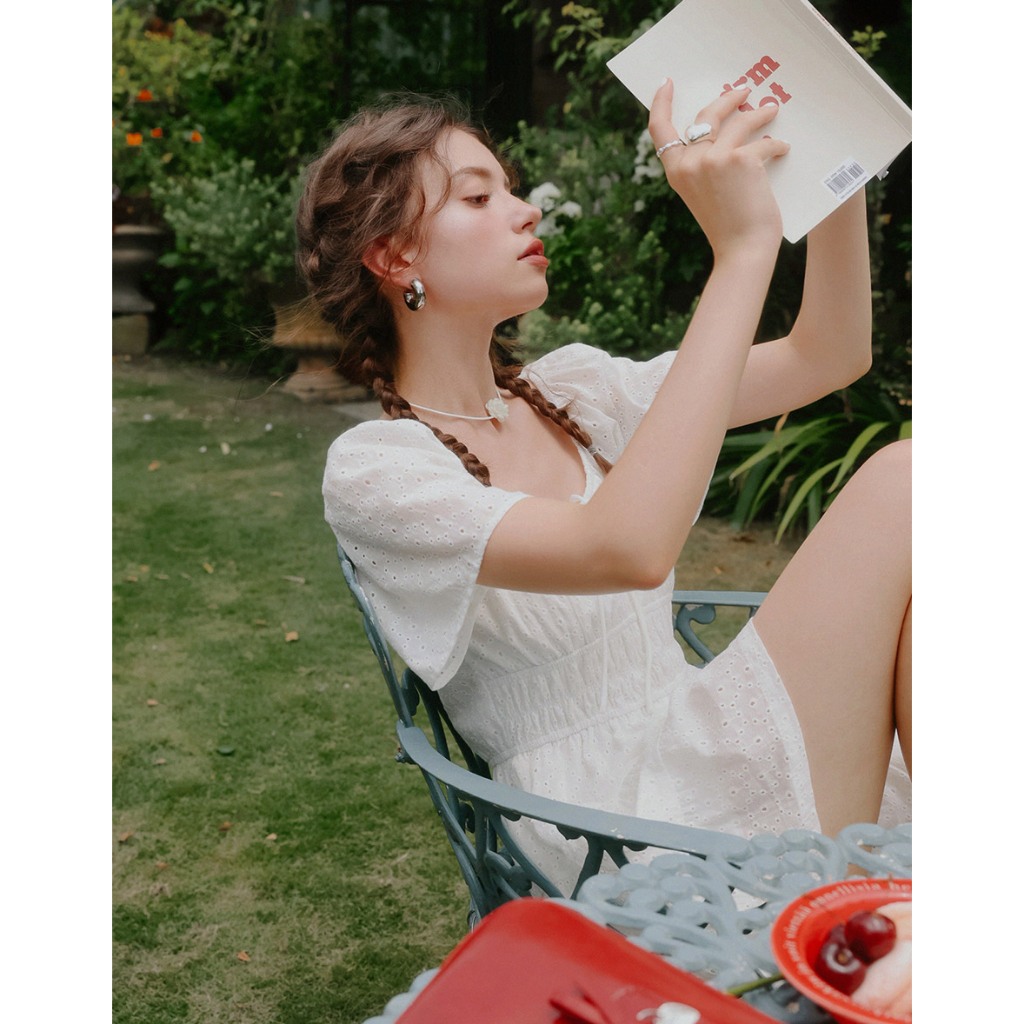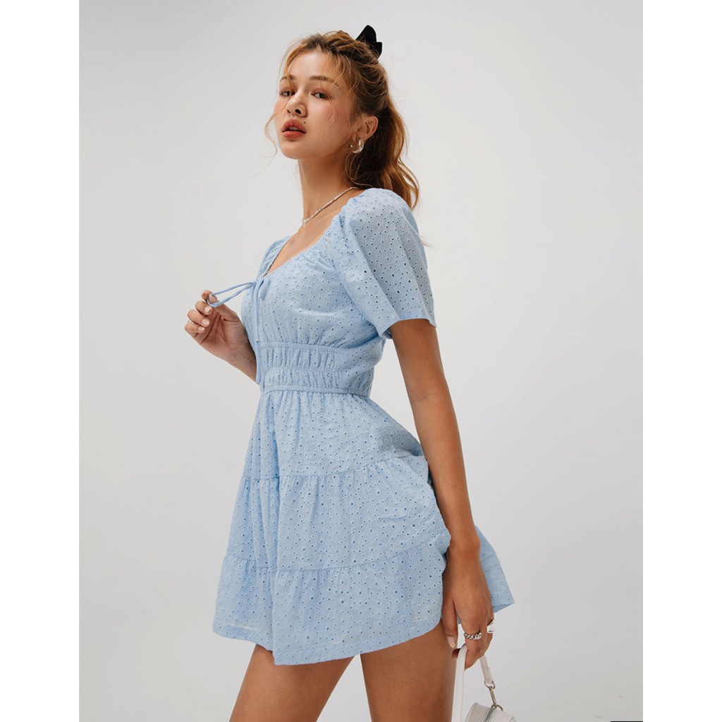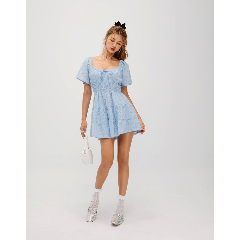 AIR SPACE 法式蕾絲傘擺連身褲(白/藍) 女裝 現貨白,S|白,M|白,L|藍,S|藍,M|藍,LPlaysuitsAIR SPACE