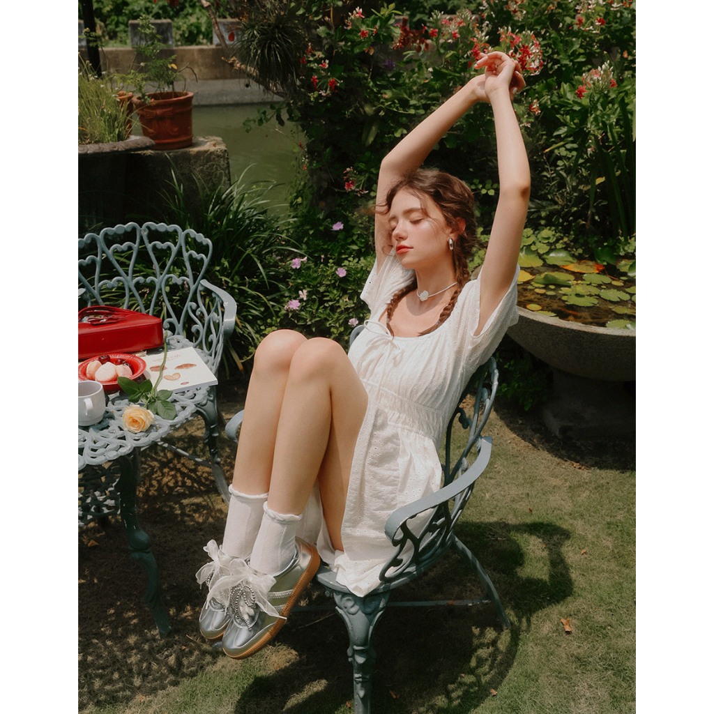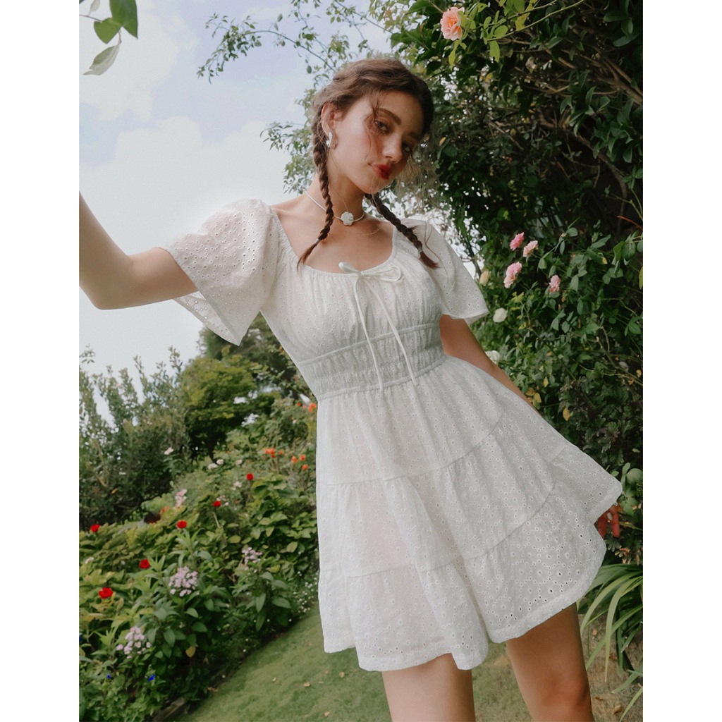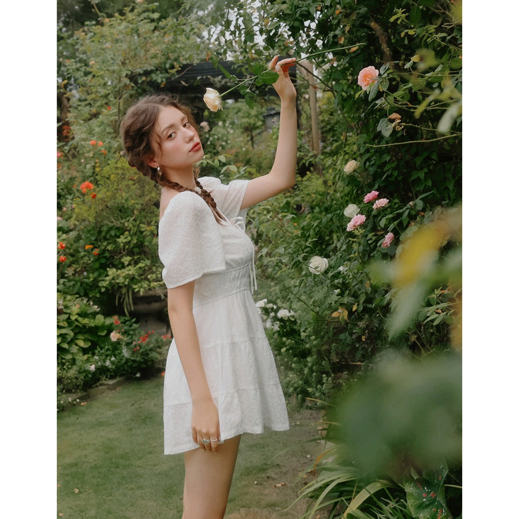 AIR SPACE 法式蕾絲傘擺連身褲(白/藍) 女裝 現貨白,S|白,M|白,L|藍,S|藍,M|藍,LPlaysuitsAIR SPACE
