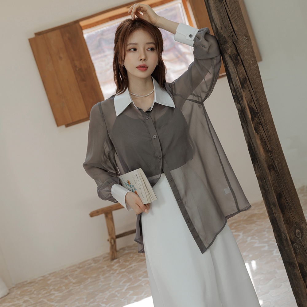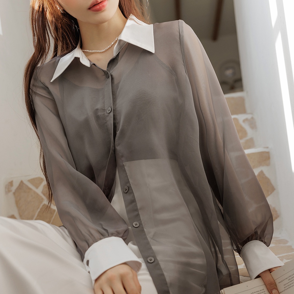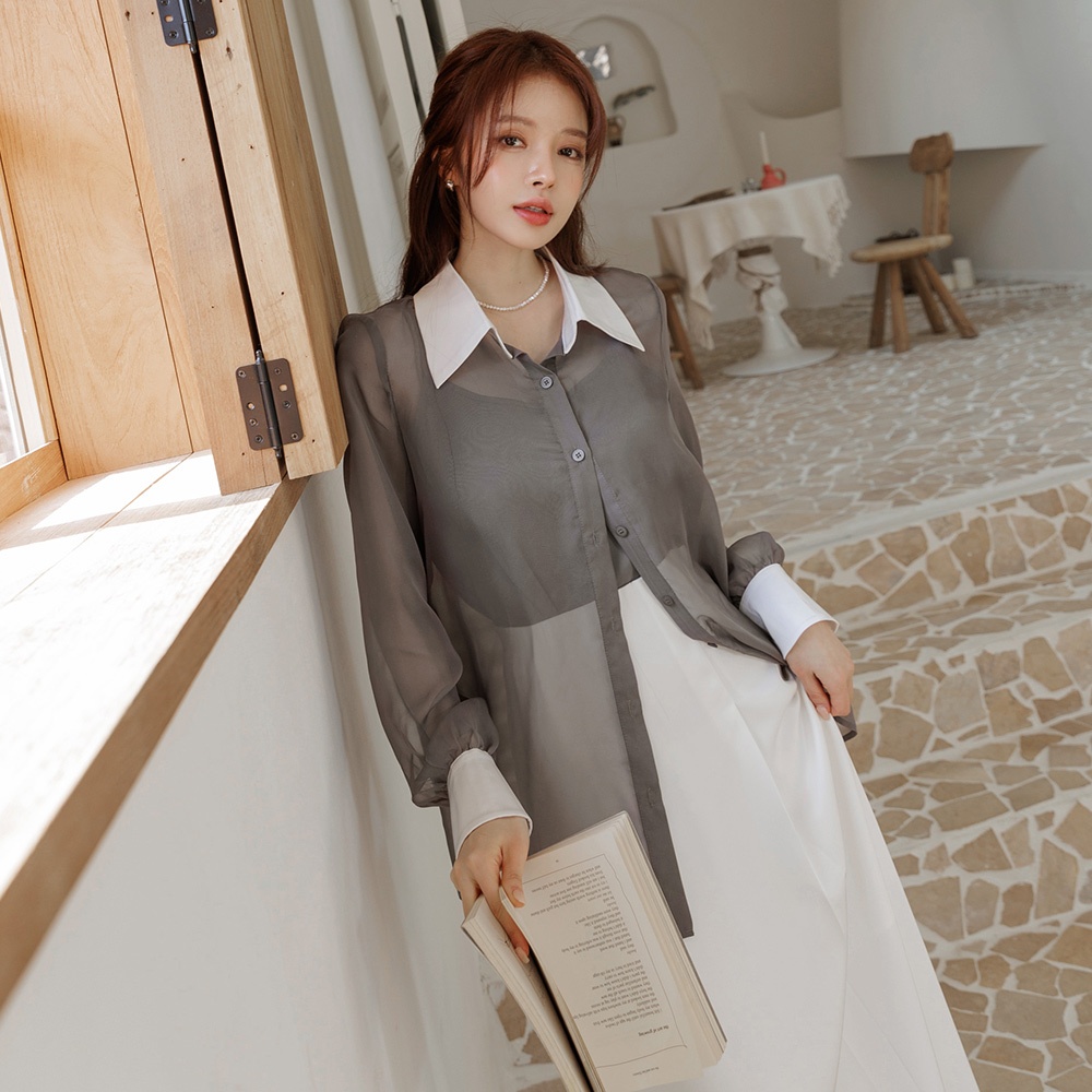 CHIC A SPACE 兩件式透肌感撞色襯衫(灰/灰藍) 女裝 現貨灰,S|灰,M|灰藍,S|灰藍,MShirts & BlousesAIR SPACE