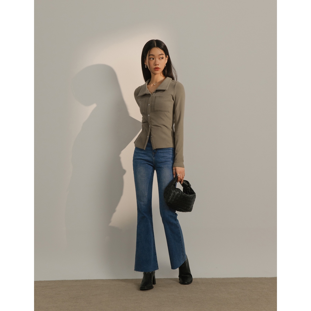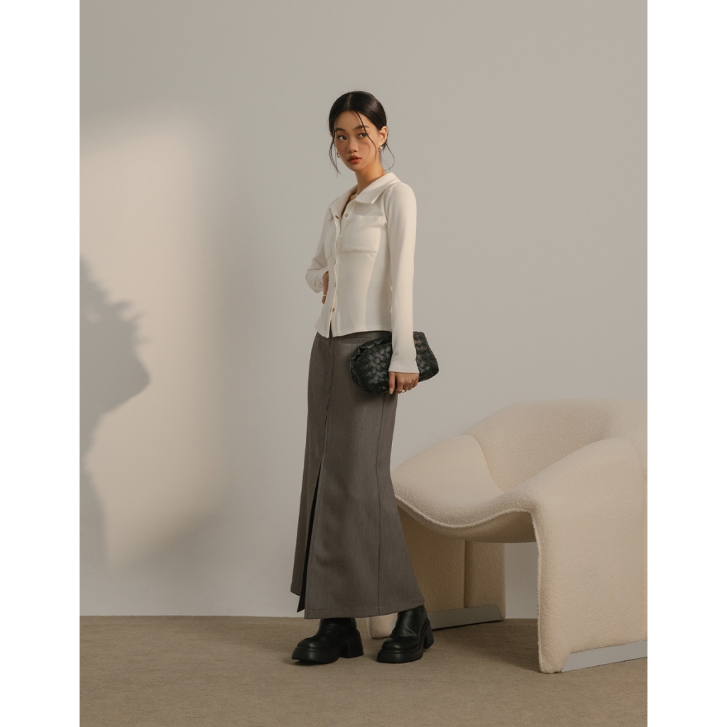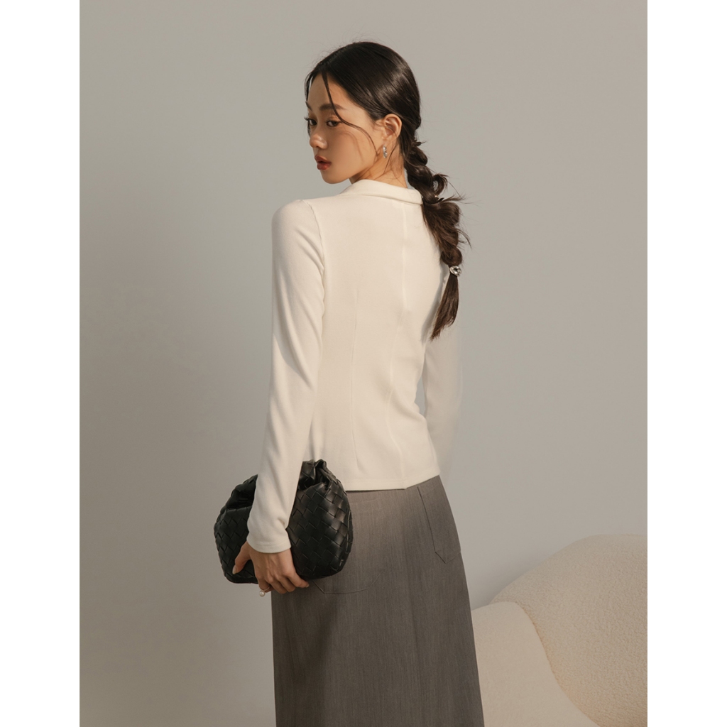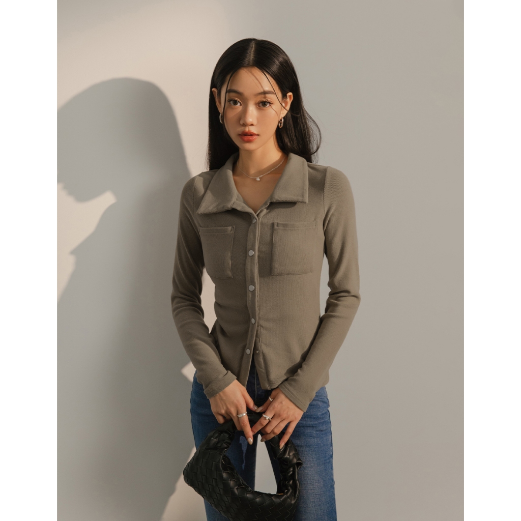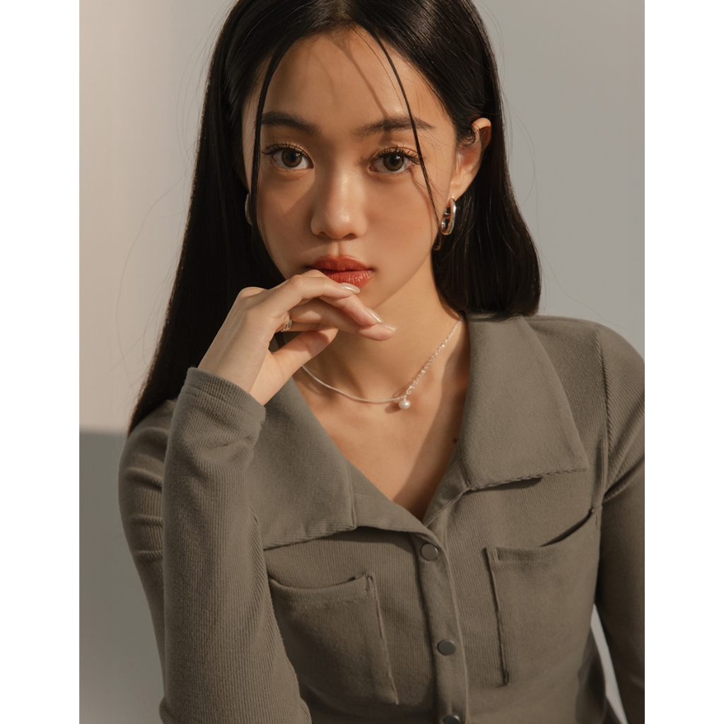 CHIC A SPACE 翻領壓釦針織上衣(白/卡其) 女裝 現貨白,S|白,M|白,L|卡其,S|卡其,M|卡其,LAIR SPACE