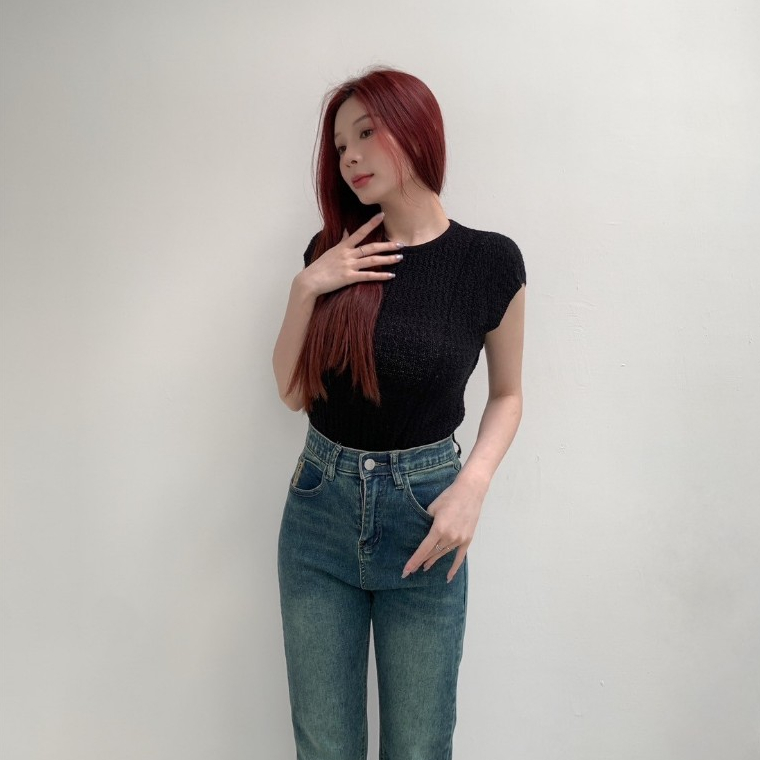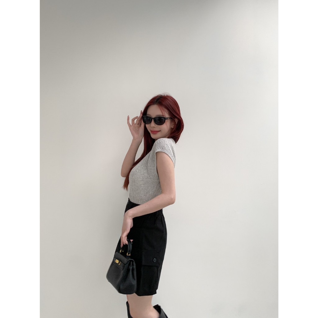 【Aa.chic】百搭圓領小包袖針織上衣(四色).女裝/上身/百搭/圓領/小包袖/針織/上衣【C150165】黑(現貨)|灰(現貨)|藍(現貨)|米白(現貨)Aa Chic
