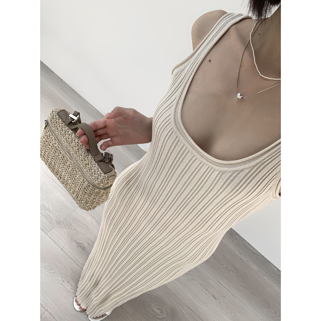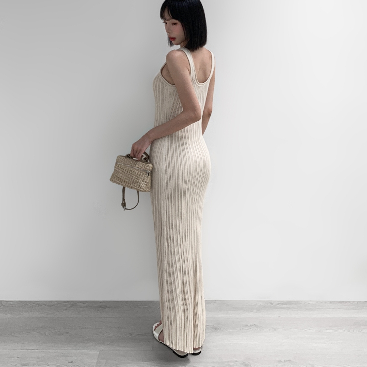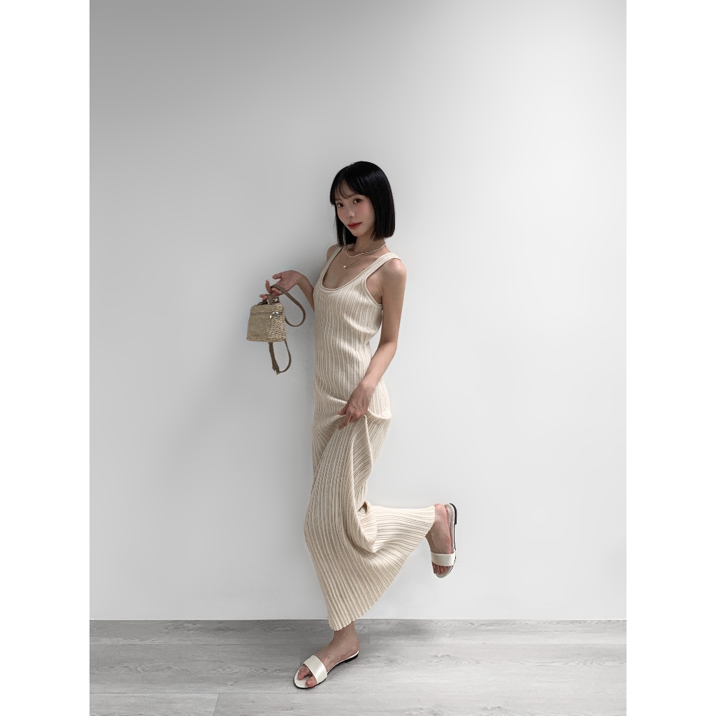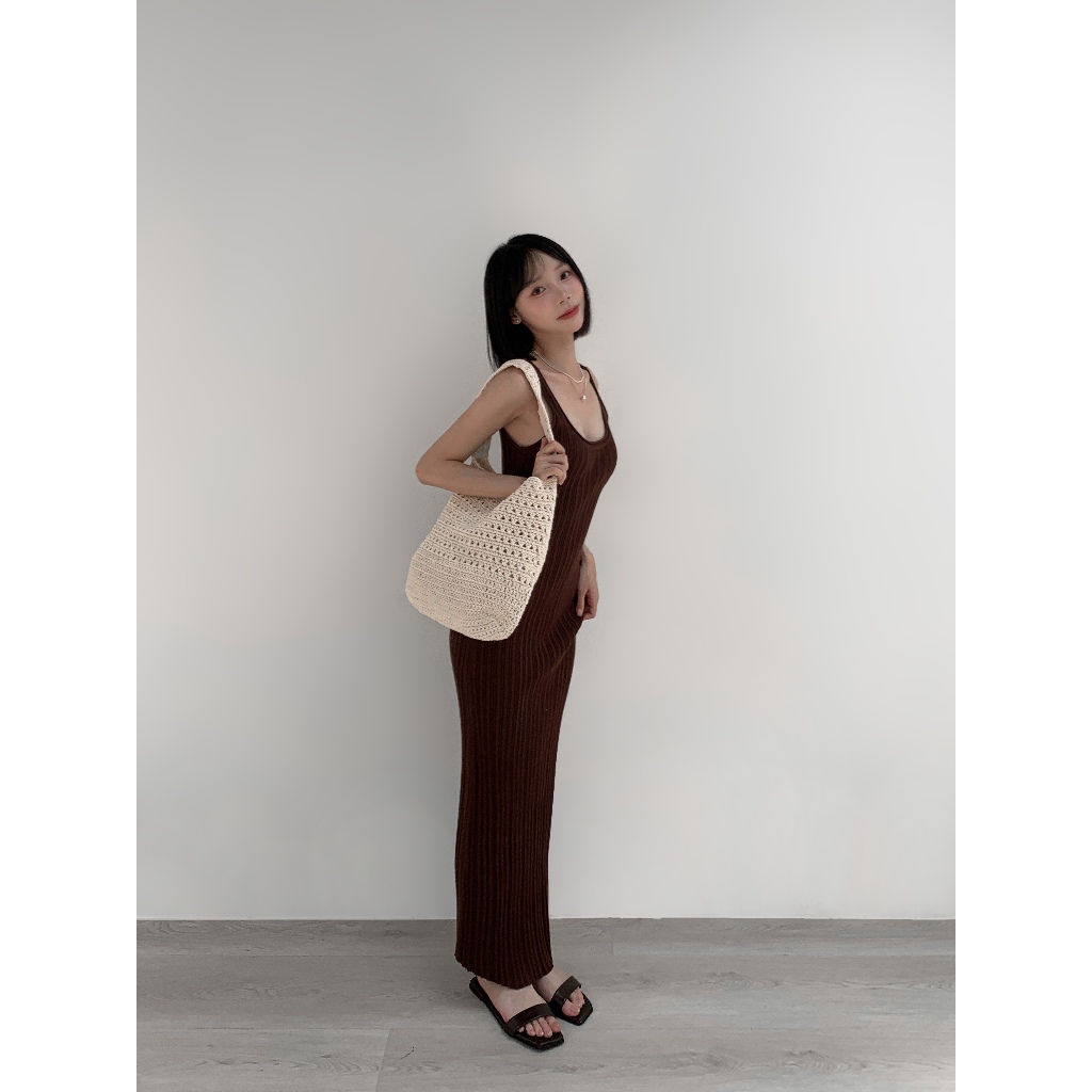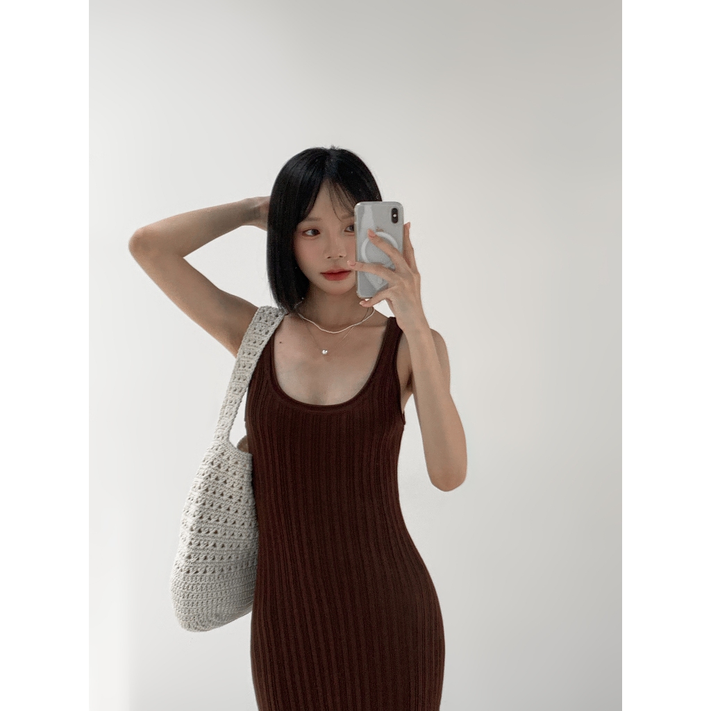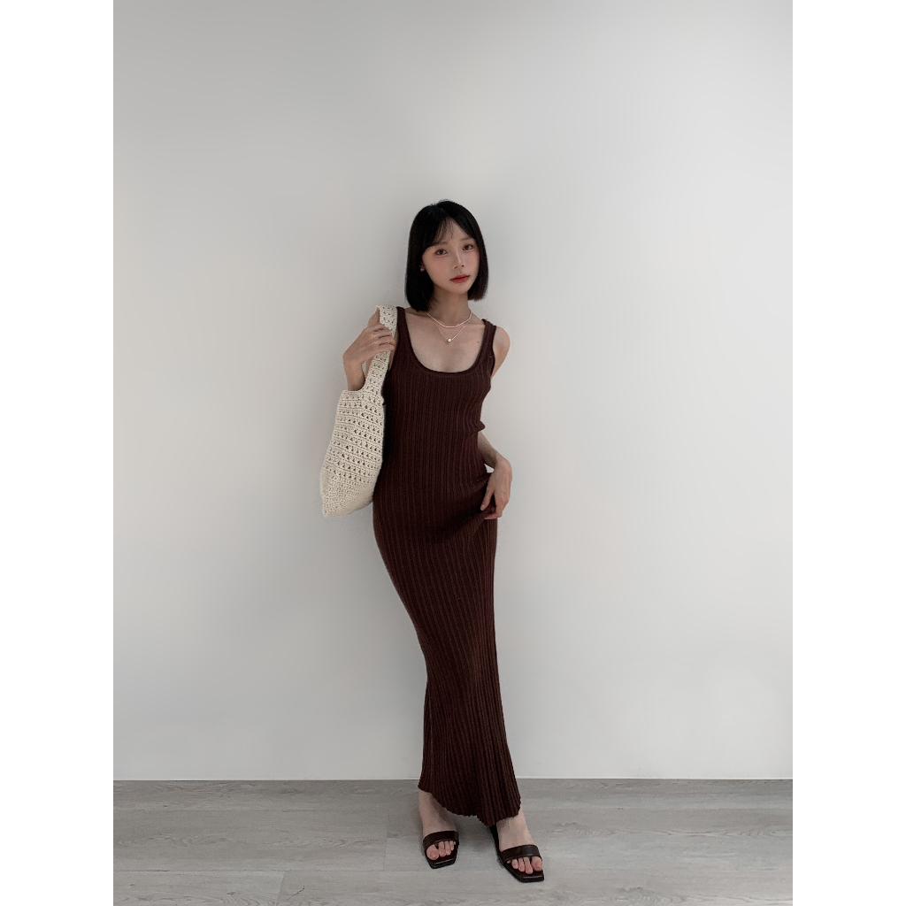【Aa.chic熱賣商品】氣質U領針織連身長洋(兩色).女裝/U領/渡假/針織/長洋/連身/約會/日常【C114840】咖(預購)|杏(現貨)Aa Chic