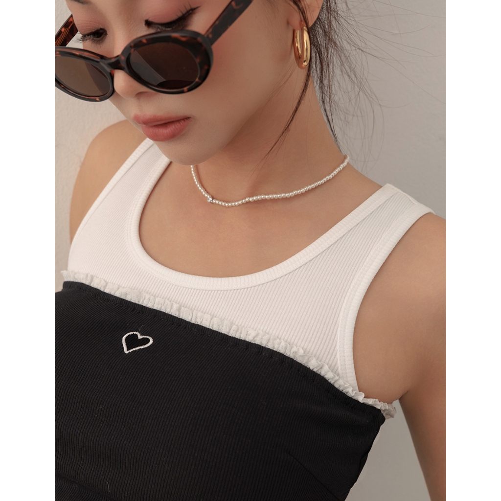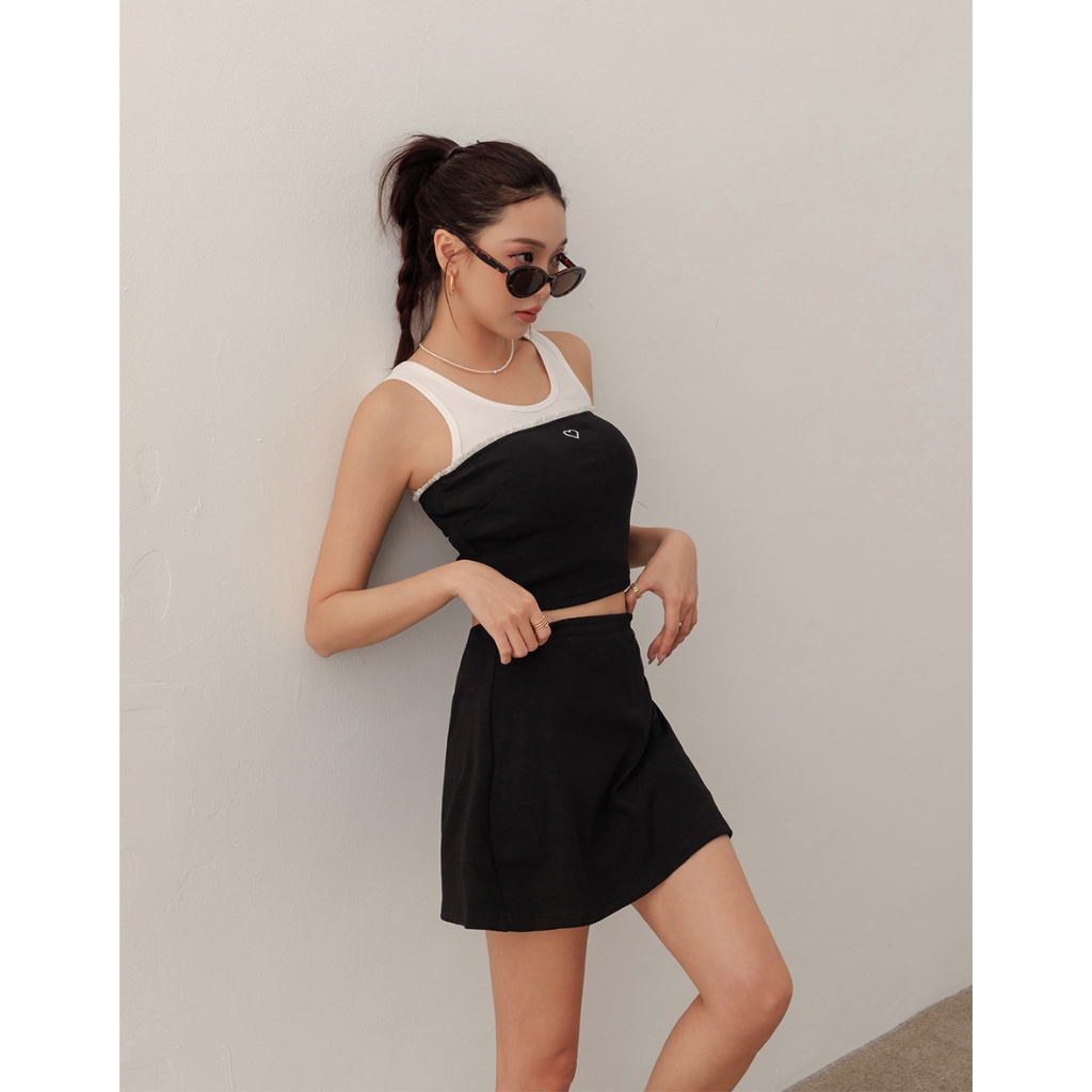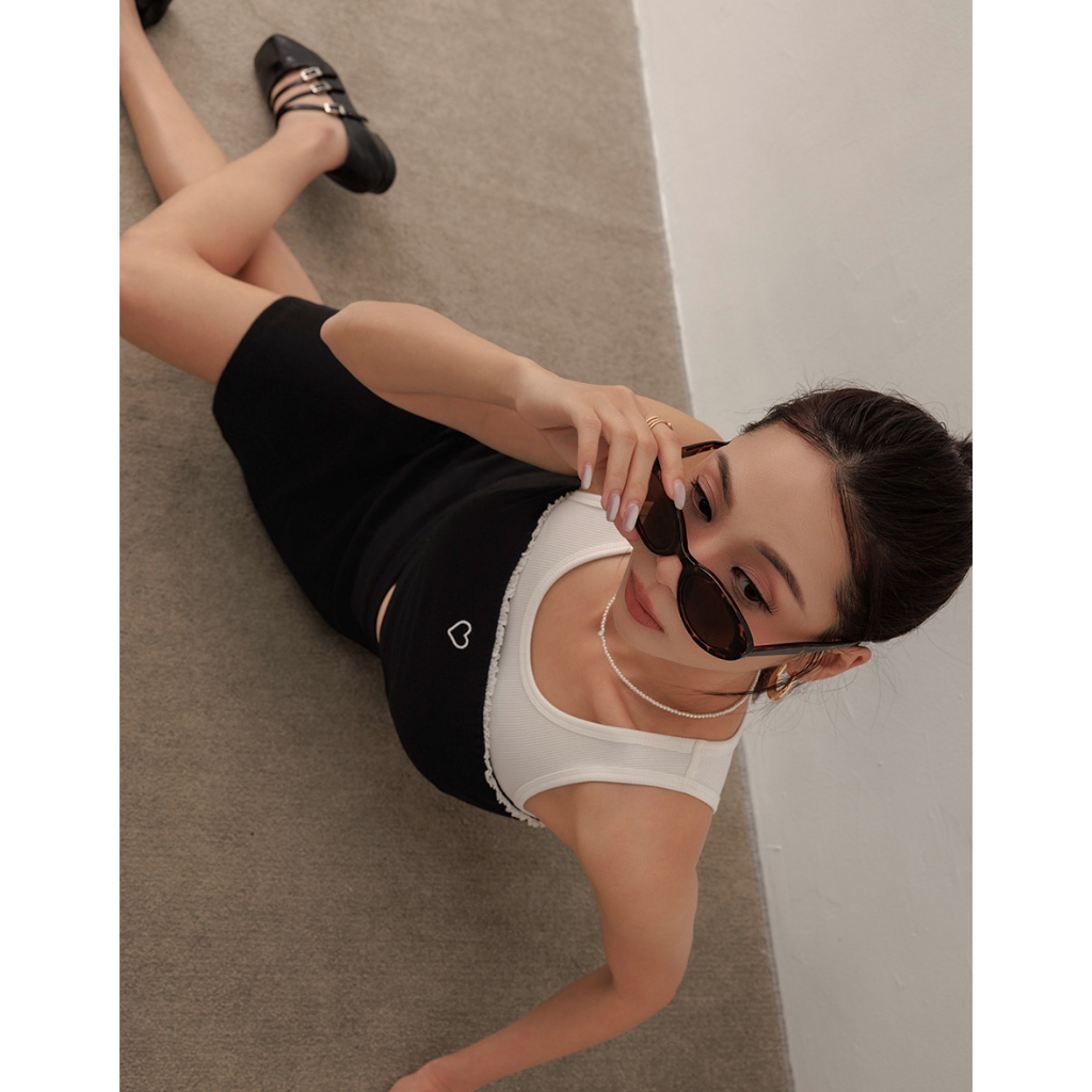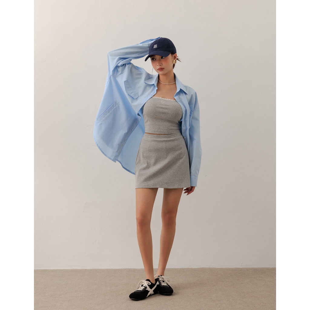 AIR SPACE LADY 小花邊愛心刺繡羅紋平口上衣短裙套裝(附胸墊)(黑/淺灰) 女裝 現貨黑,S|黑,M|黑,L|淺灰,S|淺灰,M|淺灰,LIndividual SetsAIR SPACE