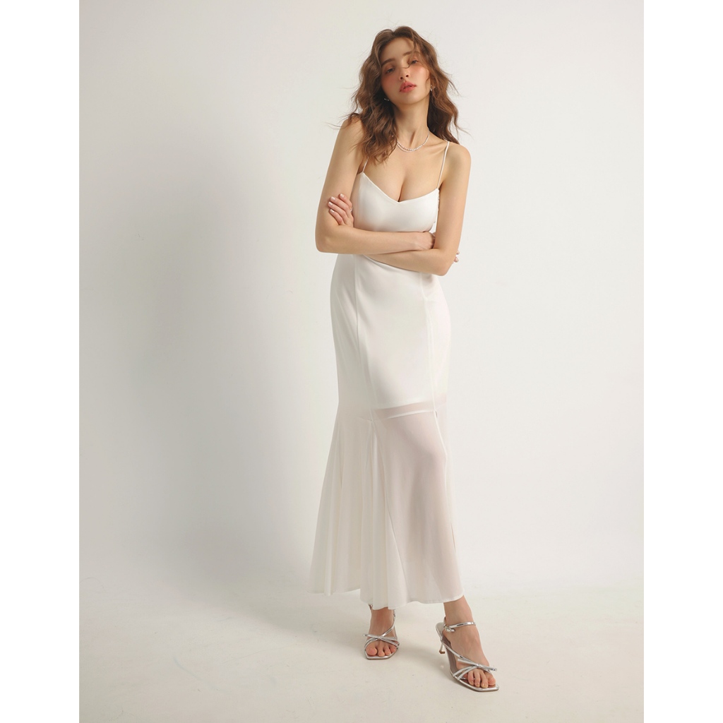 AIR SPACE 性感雙層透肌細肩帶開衩長洋裝(附胸墊)(黑/白) 女裝 現貨黑,S|黑,M|黑,L|白,S|白,M|白,LAIR SPACE