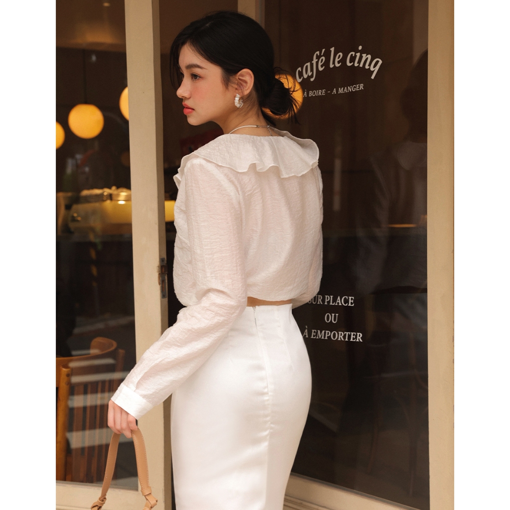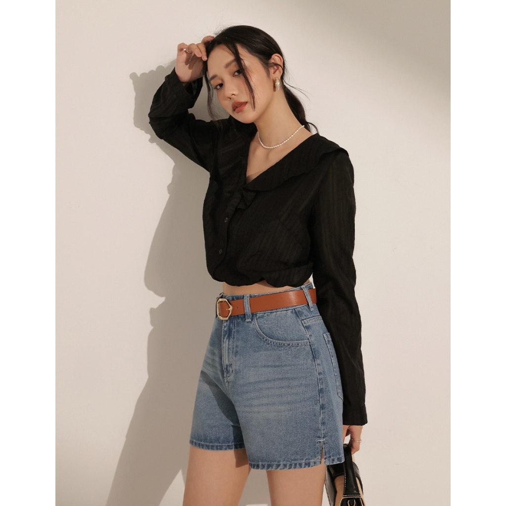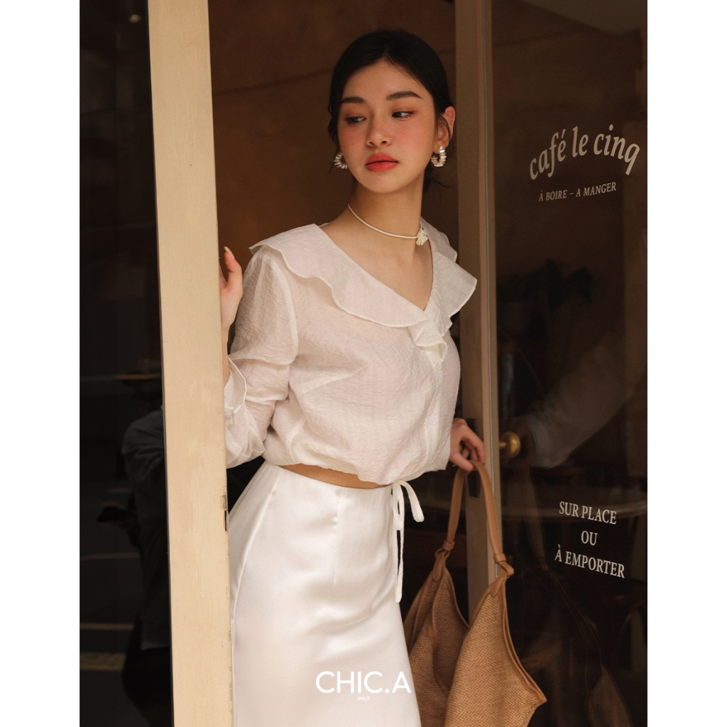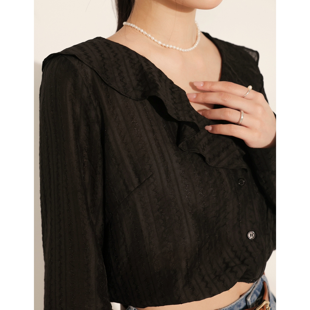 CHIC A SPACE 荷葉領片刺繡織紋上衣(黑/白) 女裝 現貨黑,S|黑,M|黑,L|白,S|白,M|白,LOthersAIR SPACE