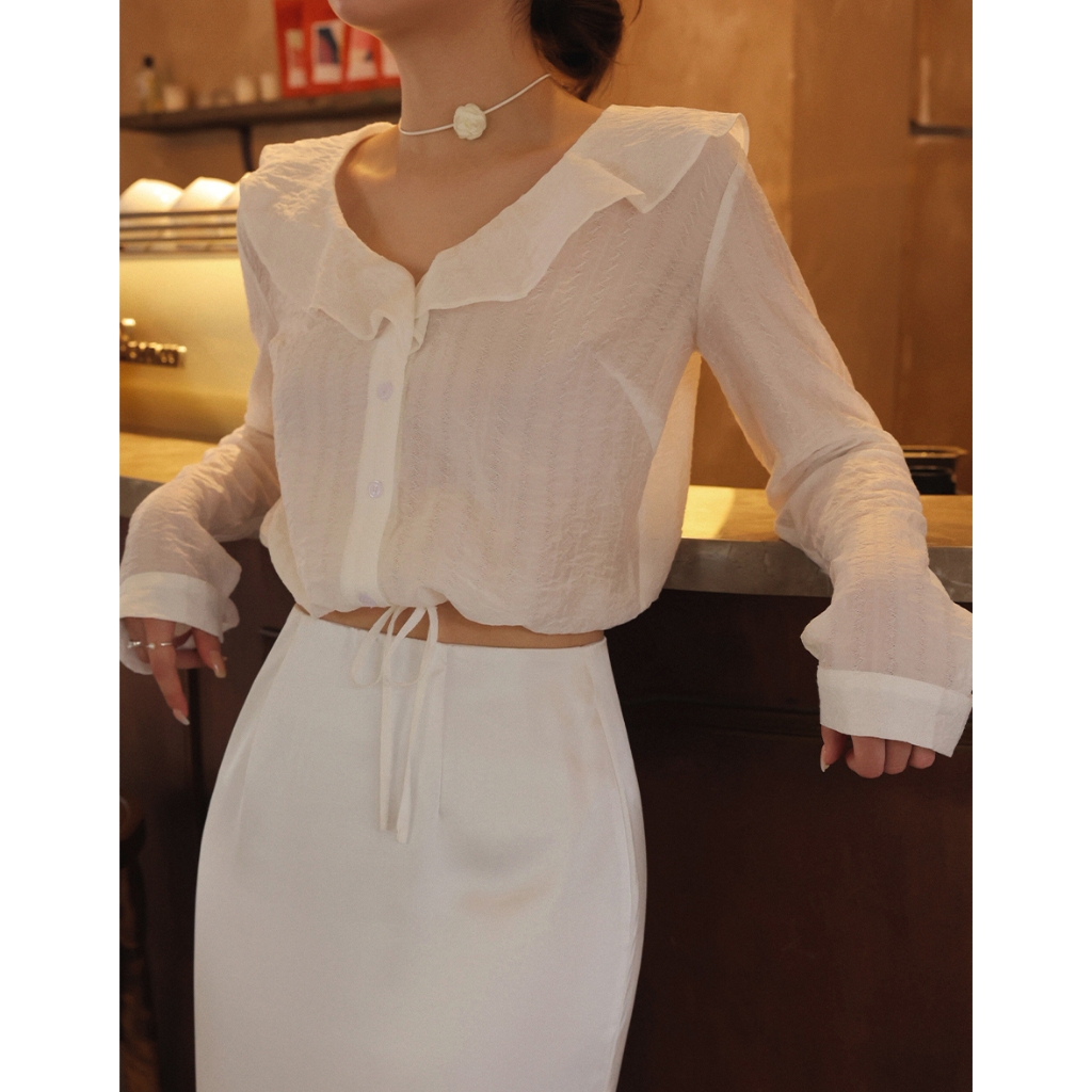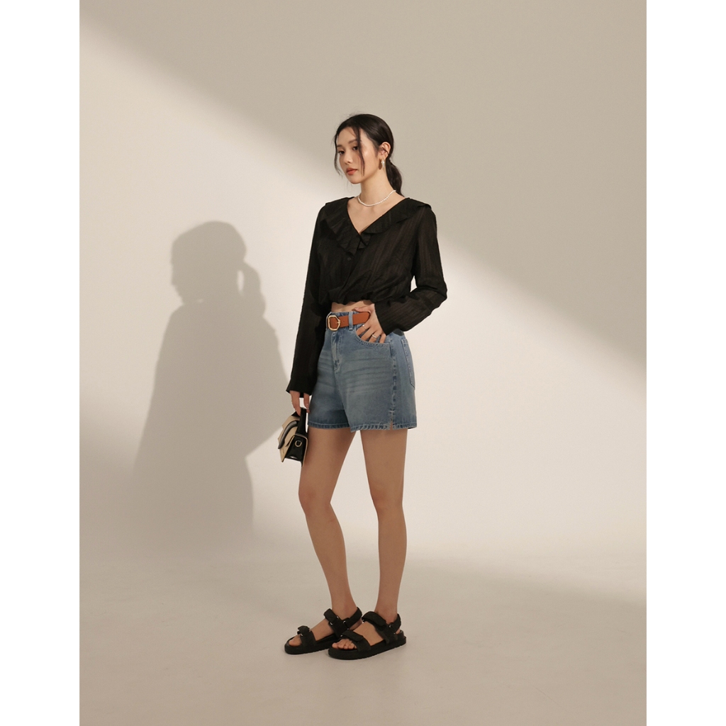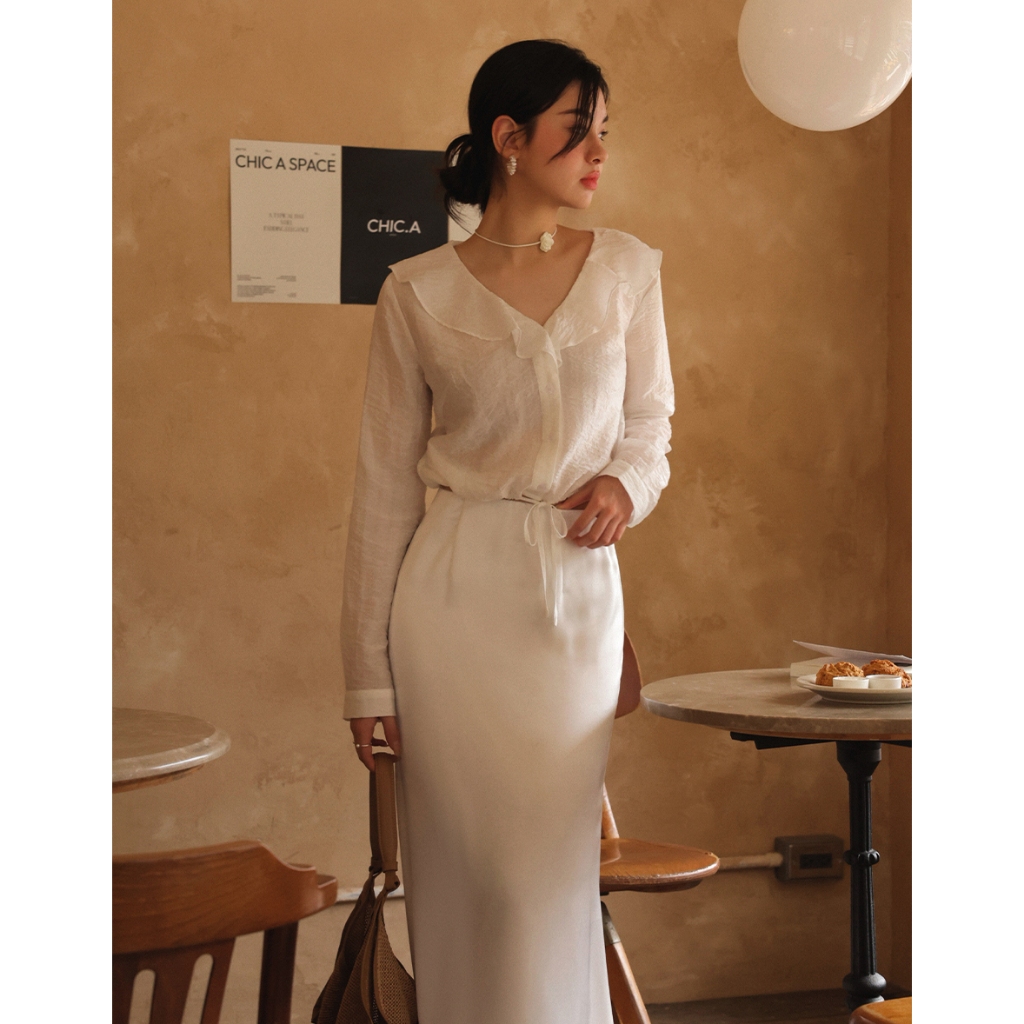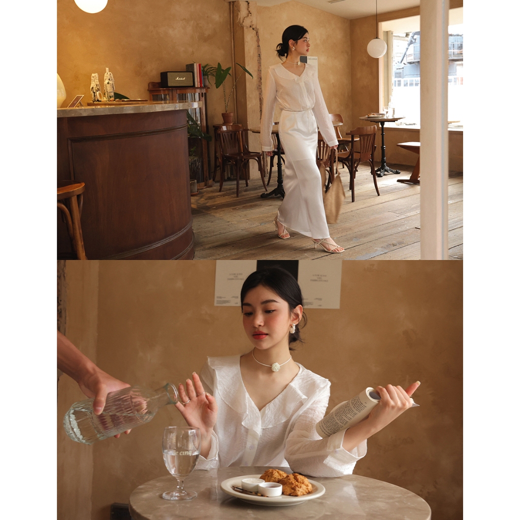 CHIC A SPACE 荷葉領片刺繡織紋上衣(黑/白) 女裝 現貨黑,S|黑,M|黑,L|白,S|白,M|白,LOthersAIR SPACE
