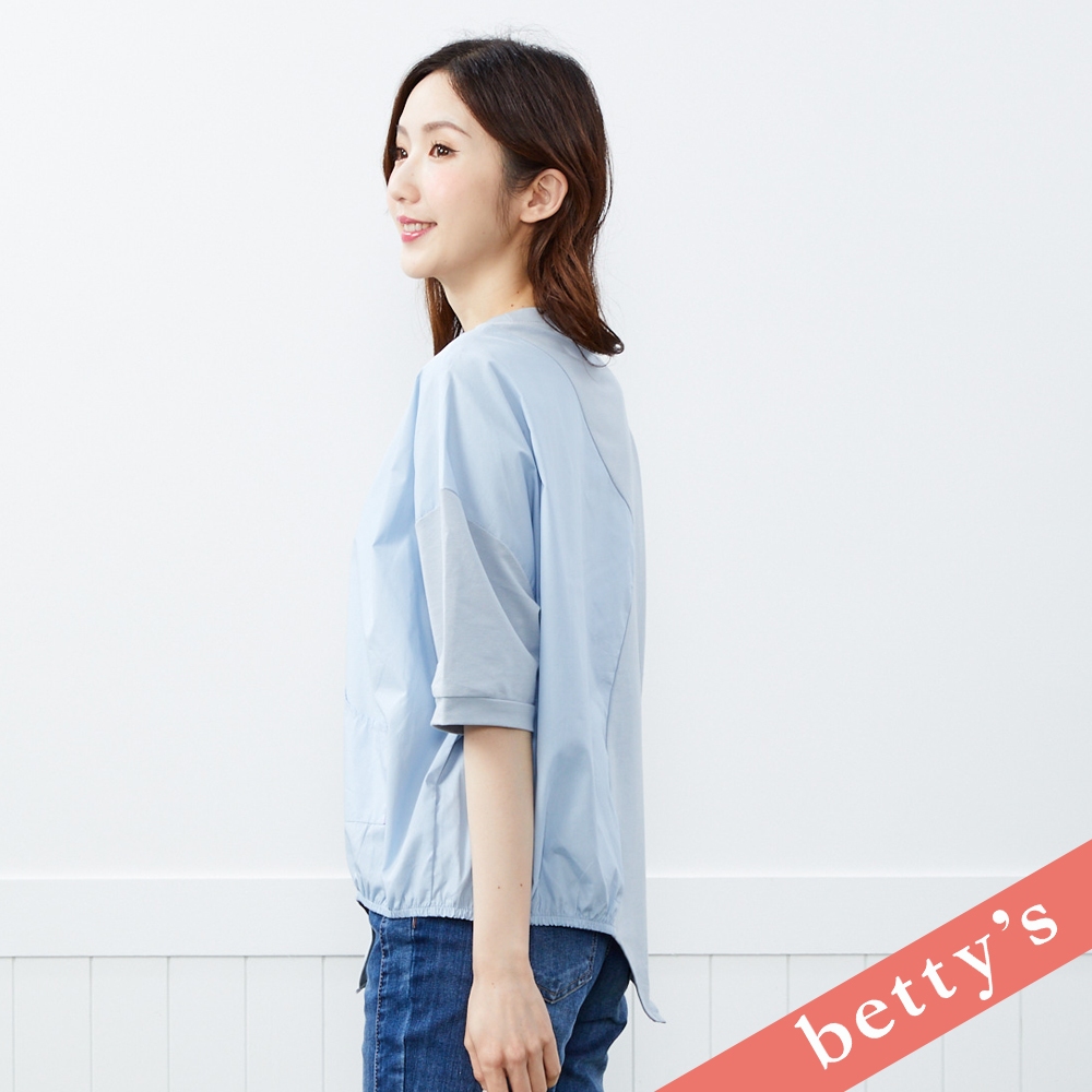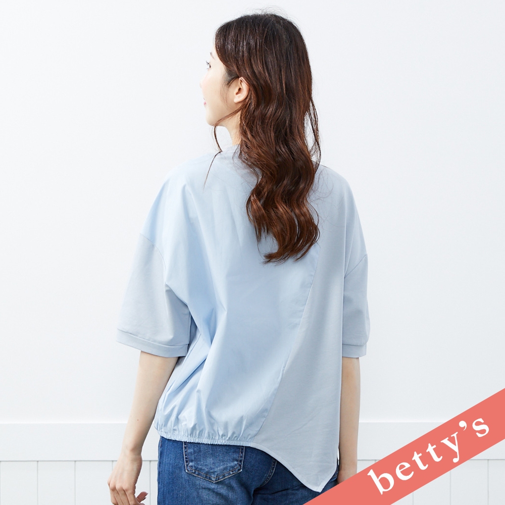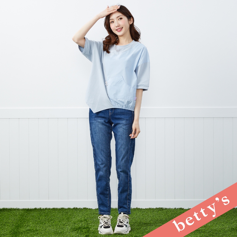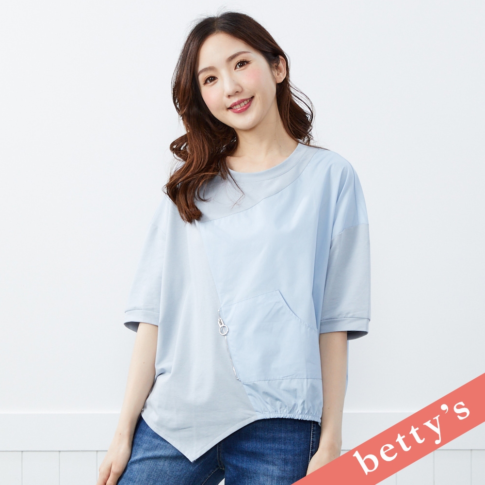 betty’s貝蒂思(41)裝飾拉鍊口袋不對稱拼接T-shirt(淺藍)