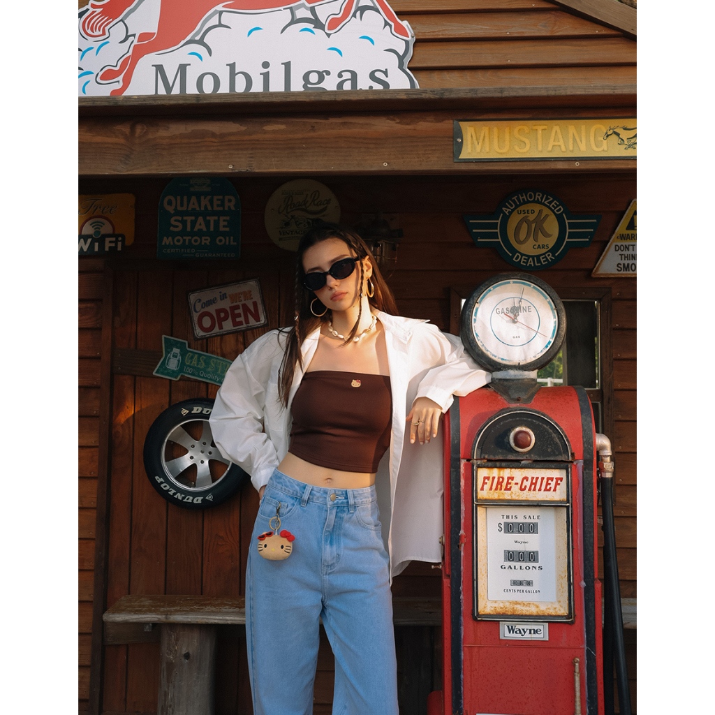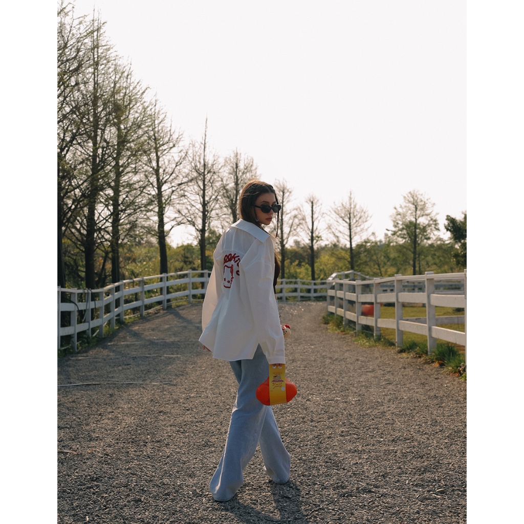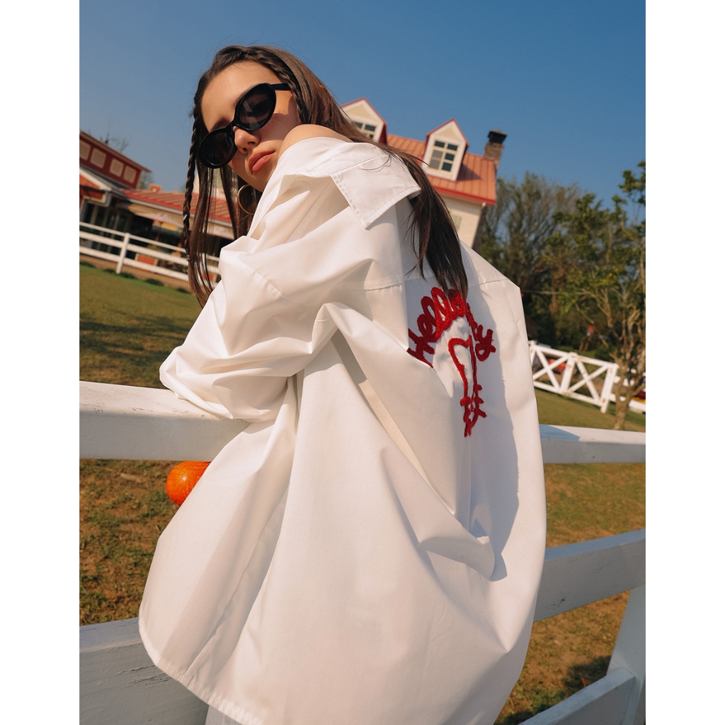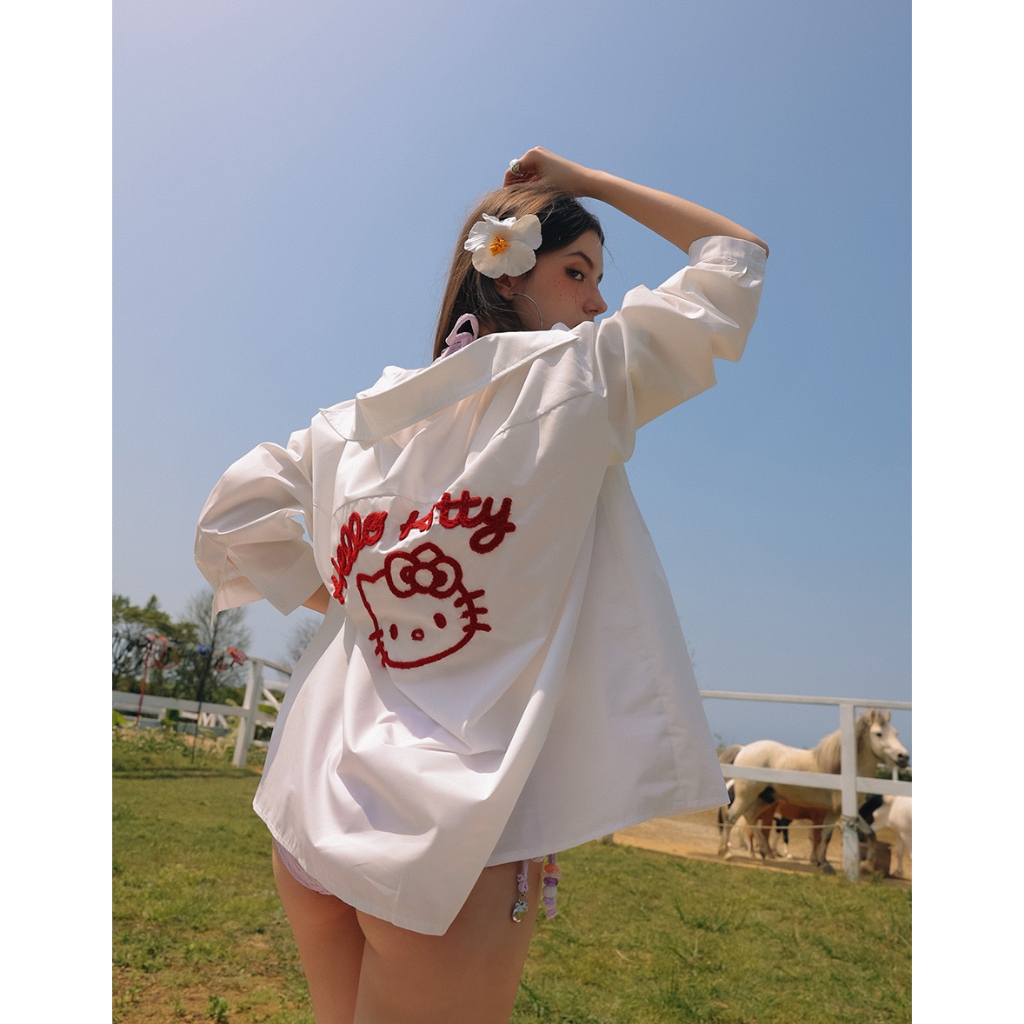 AIR SPACE PLUS 【Hello Kitty聯名】刺繡圖案寬版襯衫(白) 女裝 現貨 大尺碼 中大尺碼白,FFShirts & BlousesAIR SPACE