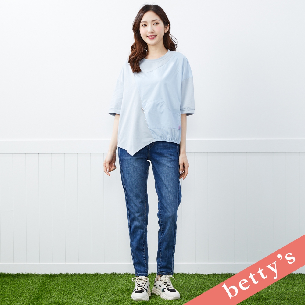 betty’s貝蒂思(41)裝飾拉鍊口袋不對稱拼接T-shirt(淺藍)淺藍,FT-shirtsbetty’s貝蒂思