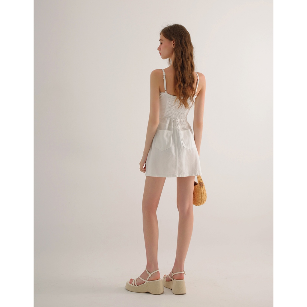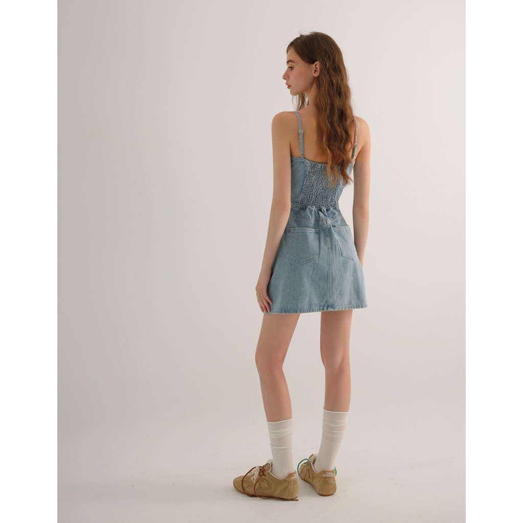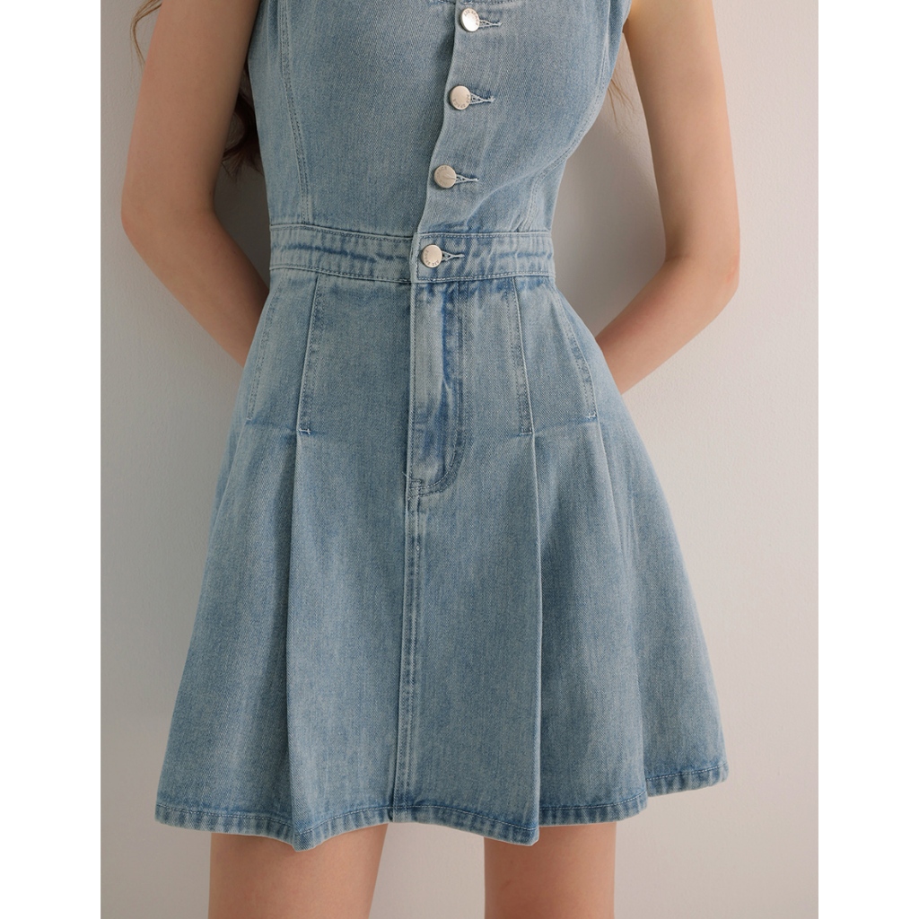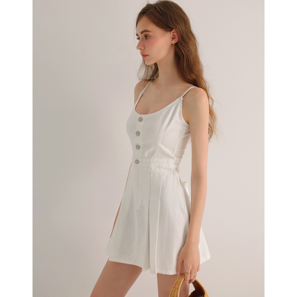 AIR SPACE 前打褶金屬釦細肩帶牛仔短洋裝(白/淺藍) 女裝 現貨白,S|白,M|白,L|淺藍,S|淺藍,M|淺藍,LAIR SPACE
