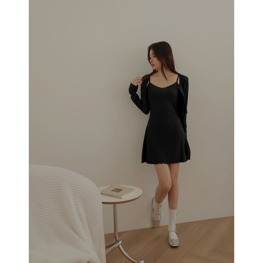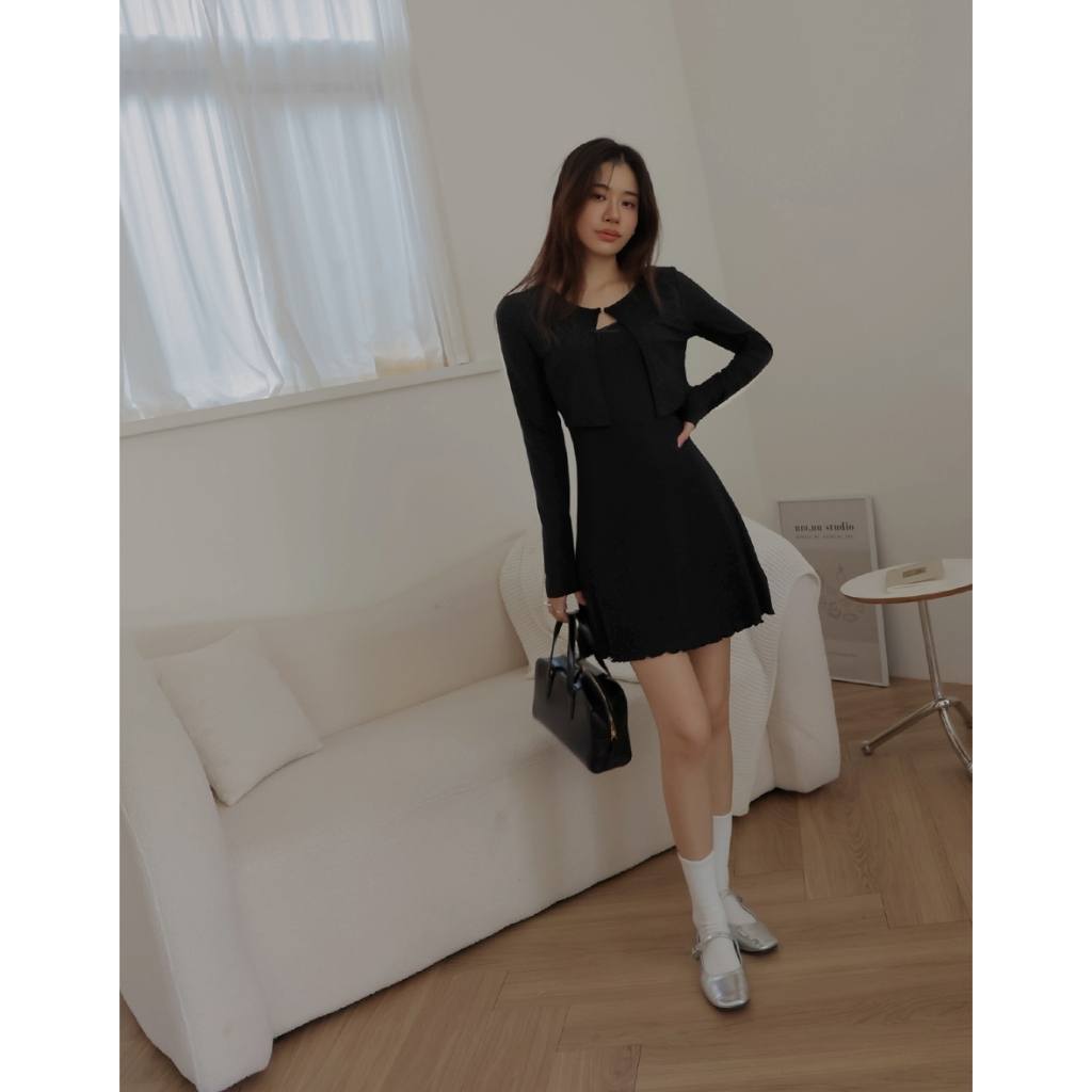 AIR SPACE LADY 甜美木耳捲洋裝套裝 (黑/灰)女裝 現貨黑,S|黑,M|黑,L|灰,S|灰,M|灰,LAIR SPACE