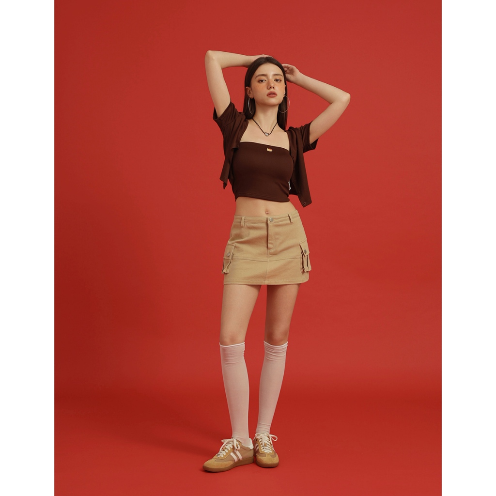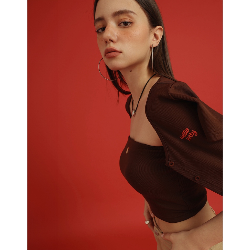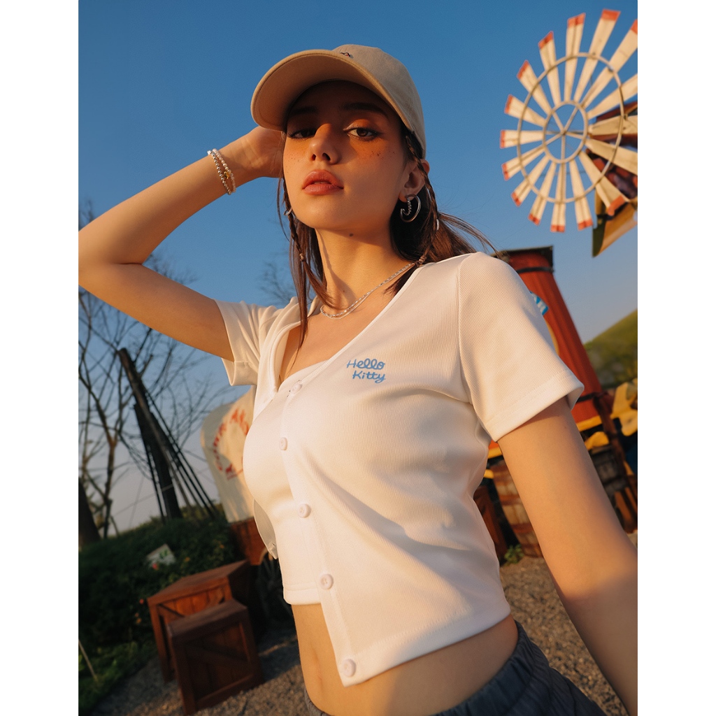 AIR SPACE 【Hello Kitty聯名】造型圖案點綴短袖開襟衫套裝(附胸墊)(白/咖啡) 女裝 現貨白,S|白,M|白,L|咖啡,S|咖啡,M|咖啡,LOthersAIR SPACE