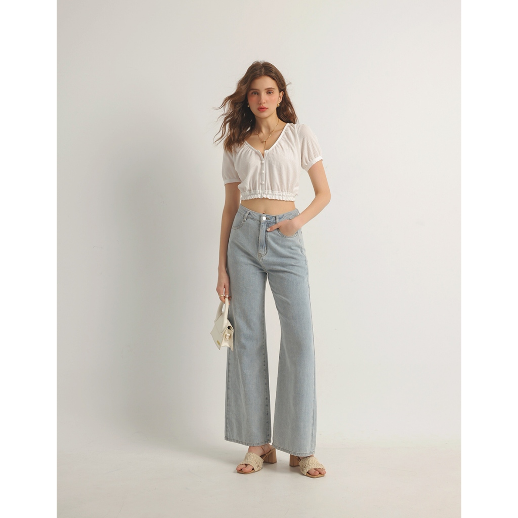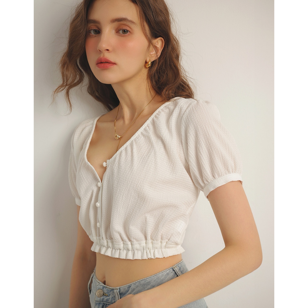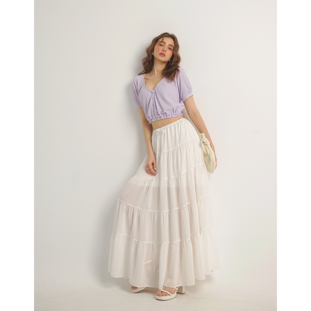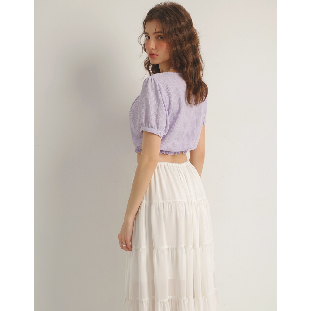 AIR SPACE V領荷葉邊收腰短版上衣(白/紫) 女裝 現貨白,S|白,M|白,L|紫,S|紫,M|紫,LOthersAIR SPACE