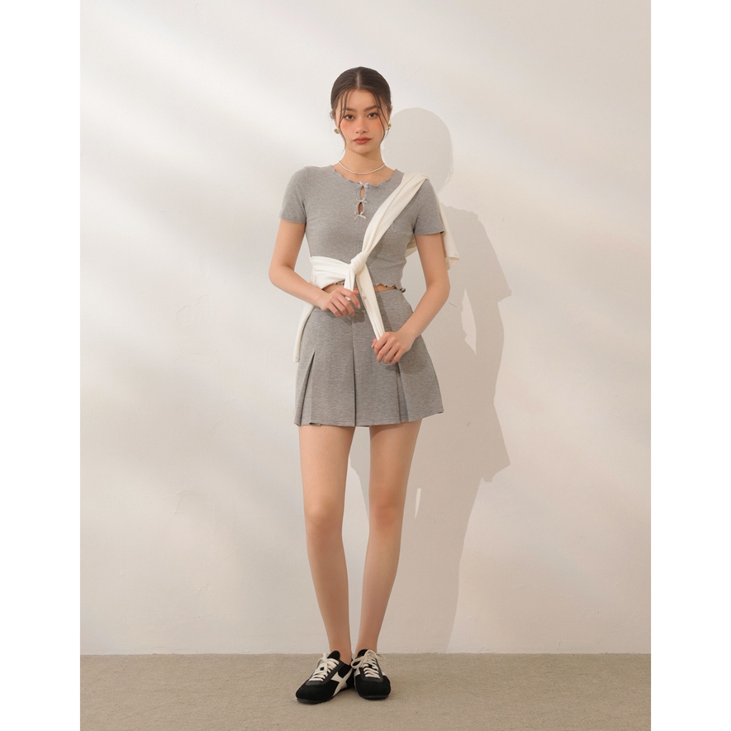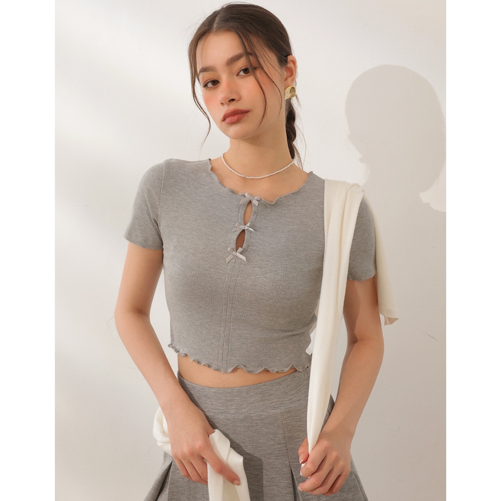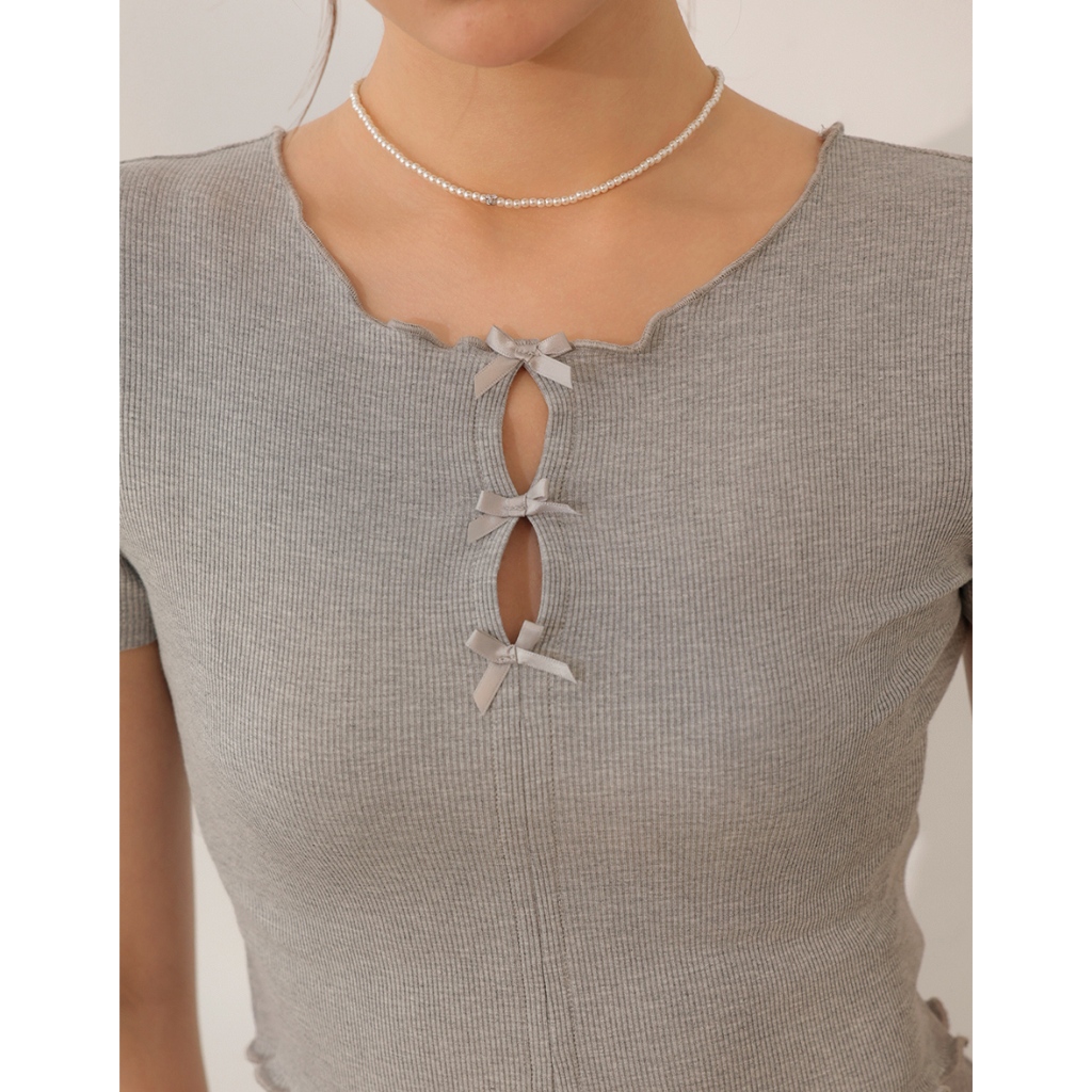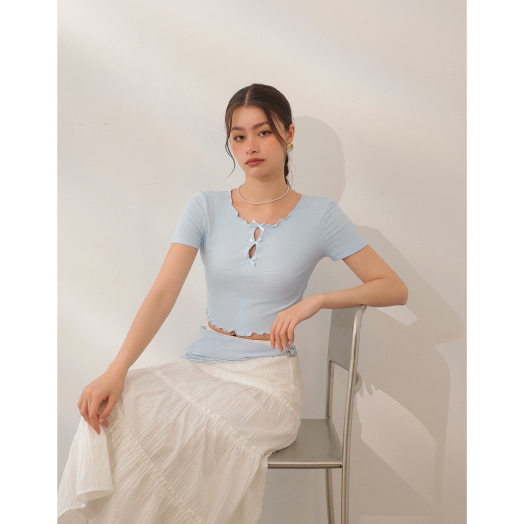 AIR SPACE LADY 正反兩穿緞帶蝴蝶結木耳捲上衣(淺灰/淺藍) 女裝 現貨淺灰,S|淺灰,M|淺灰,L|淺藍,S|淺藍,M|淺藍,LOthersAIR SPACE