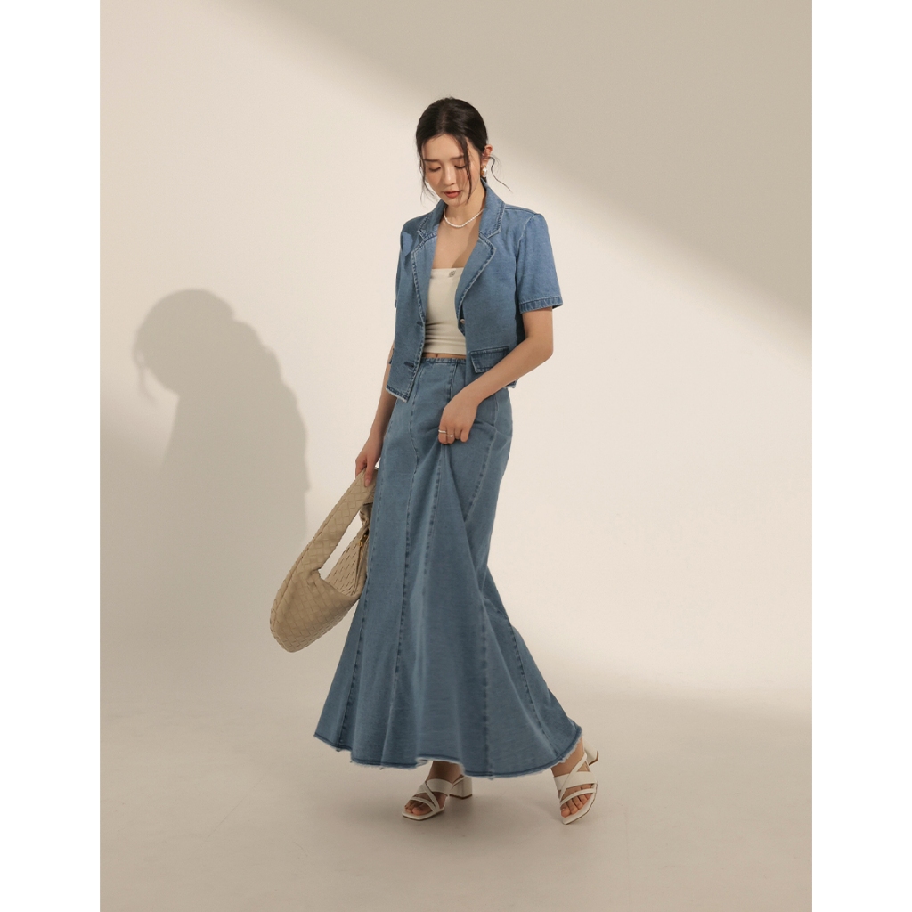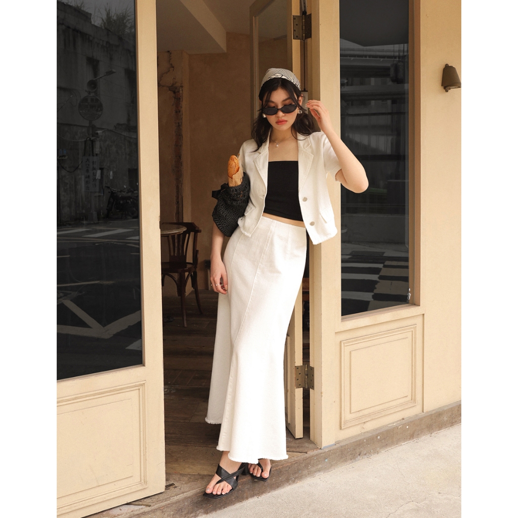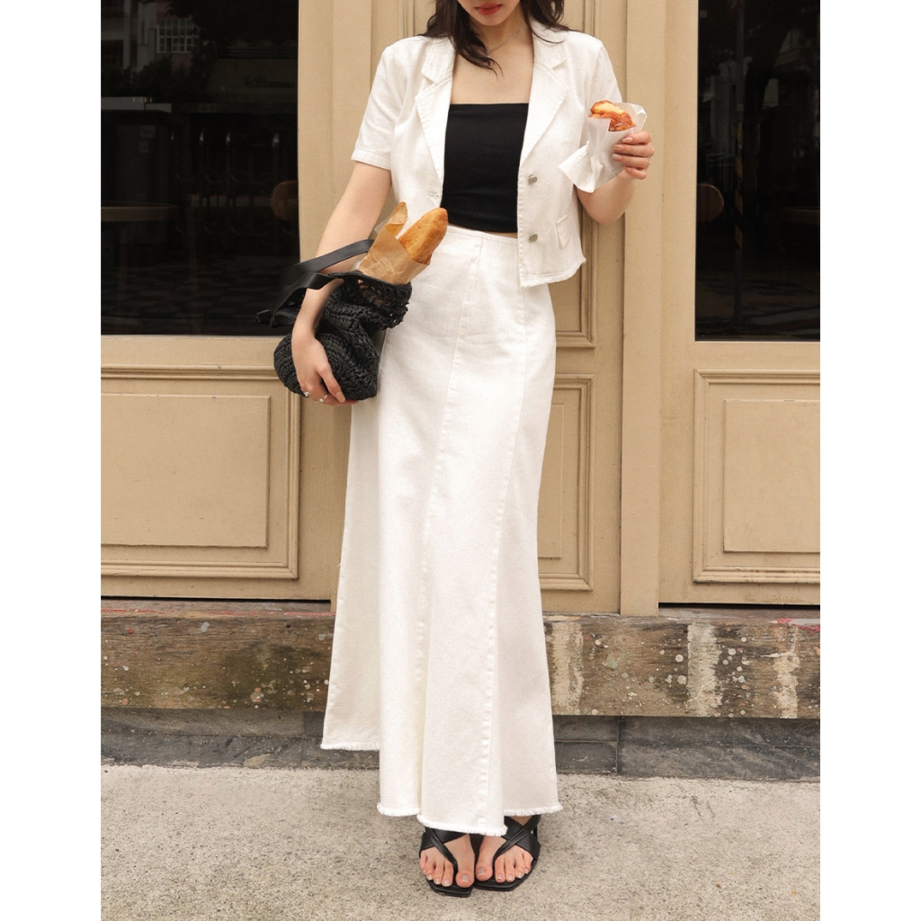 CHIC A SPACE 多片拼接不收邊牛仔魚尾長裙(白/藍) 女裝 現貨白,S|白,M|白,L|藍,S|藍,M|藍,LAIR SPACE