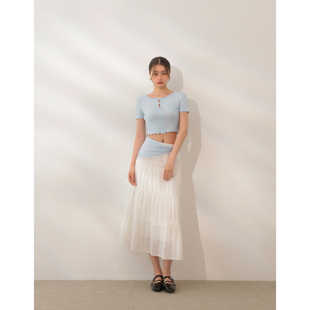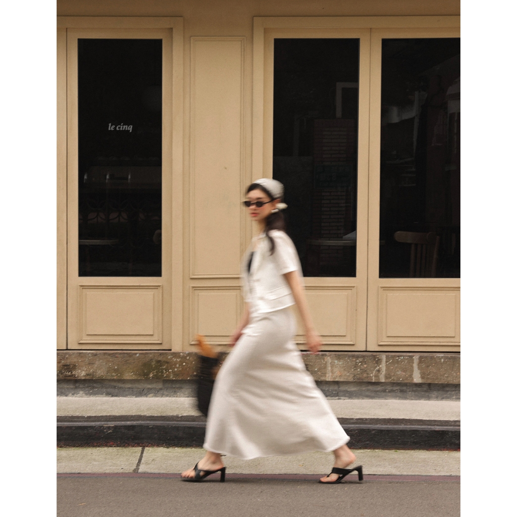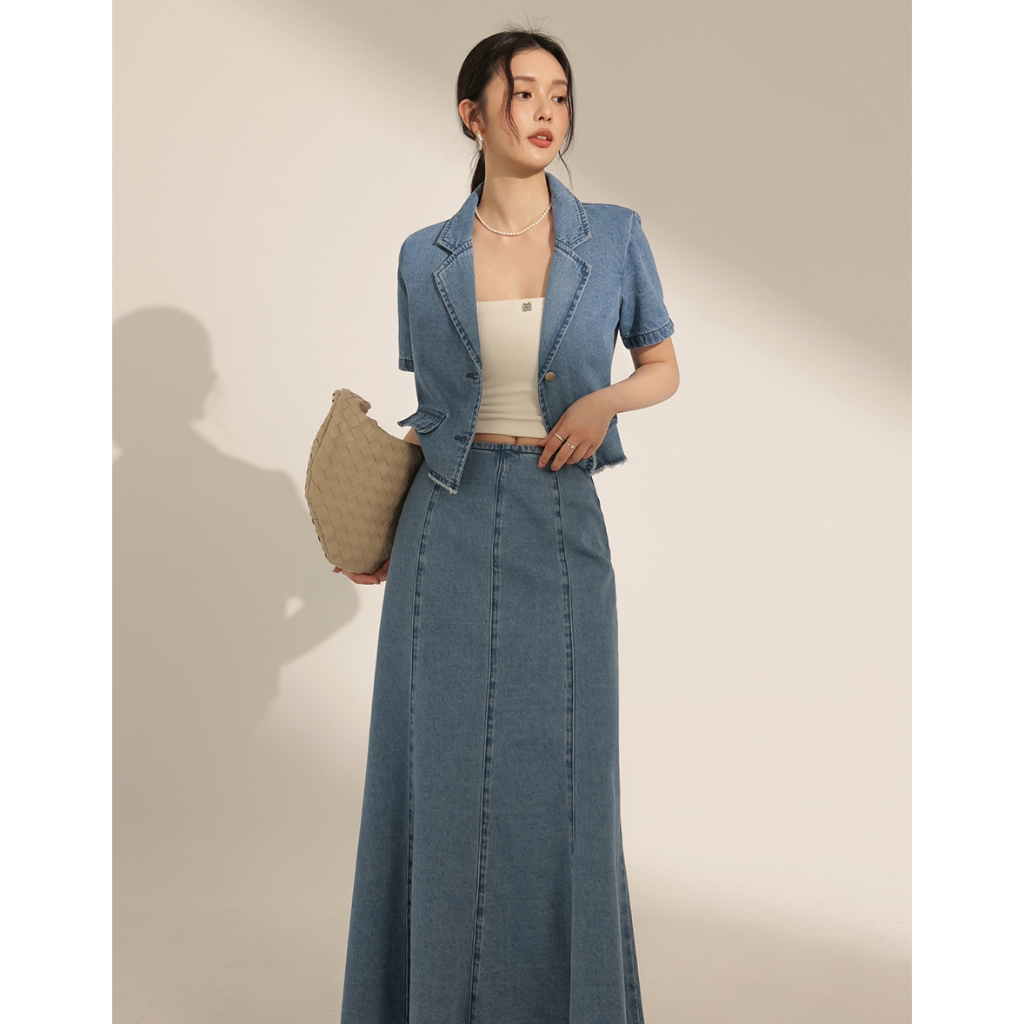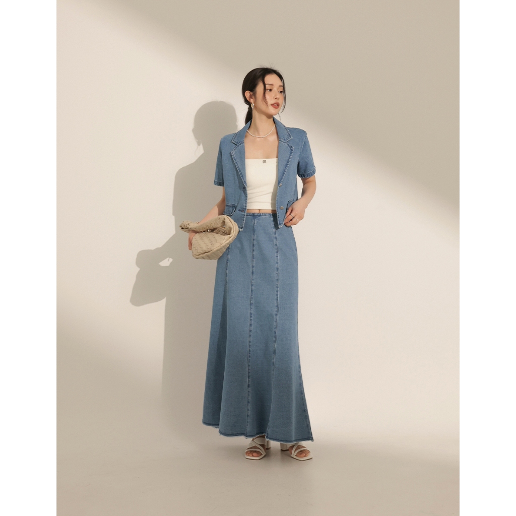 CHIC A SPACE 多片拼接不收邊牛仔魚尾長裙(白/藍) 女裝 現貨白,S|白,M|白,L|藍,S|藍,M|藍,LAIR SPACE
