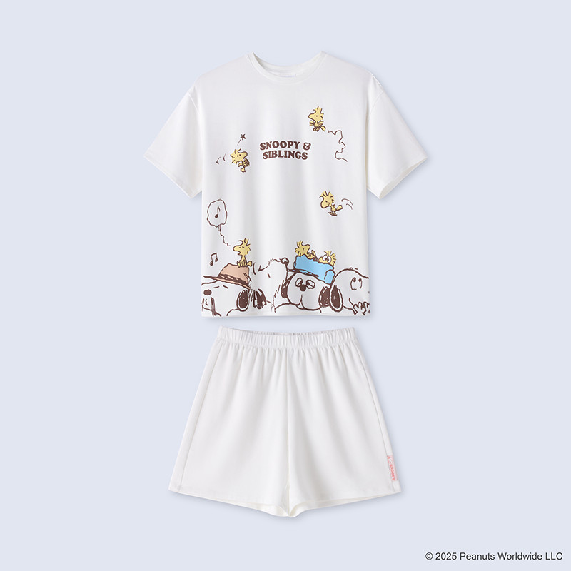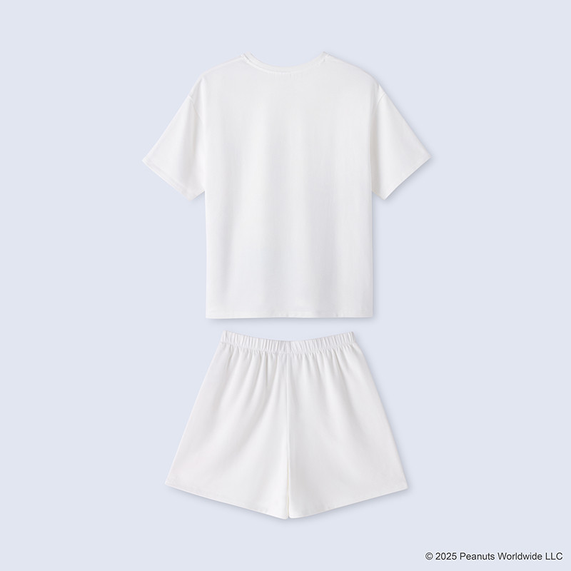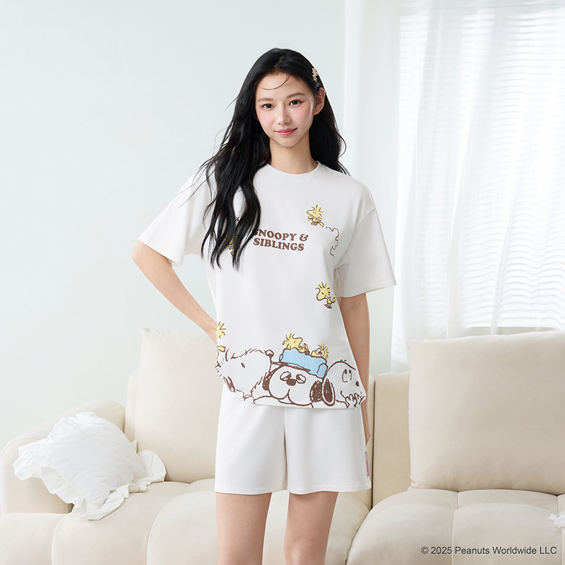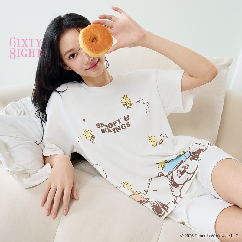 6IXTY8IGHT Snoopy系列, 牛奶絲睡衣套裝女 短袖 居家服 HW098338F5-米白色,L|8F5-米白色,M|8F5-米白色,S|8F5-米白色,XLPajamas6IXTY8IGHT 官方旗艦店