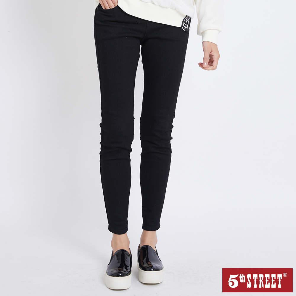 【5th STREET】 女裝 長褲 牛仔長褲 牛仔 丹寧 修身 黑色 (942232)S|XL|3LPants5thStreet 官方旗艦店