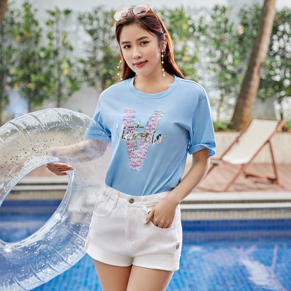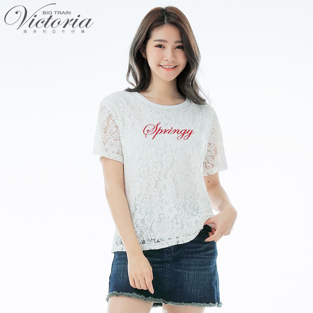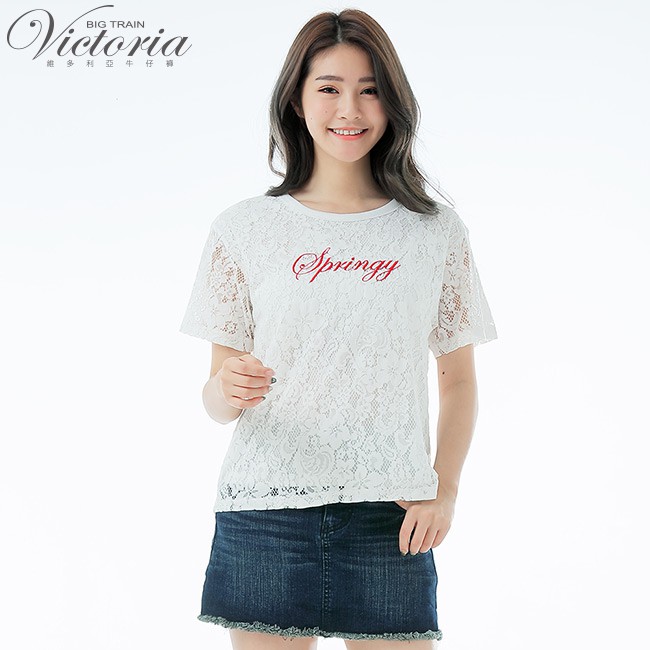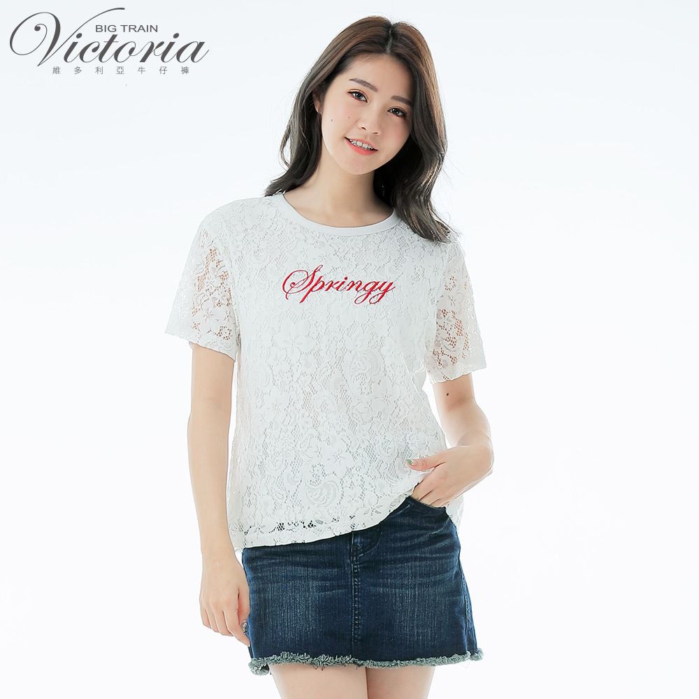 VICTORIA 文字繡全蕾絲短袖T-白S|MT-shirtsBIG TRAIN 官方旗艦店