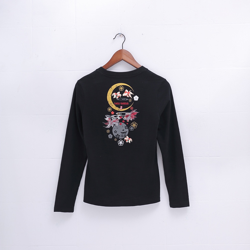 BIG TRAIN月芽招福魚竹節棉女T-B25175-80&88漂白,S|漂白,M|漂白,L|黑,S|黑,M|黑,LT-shirtsBIG TRAIN 官方旗艦店